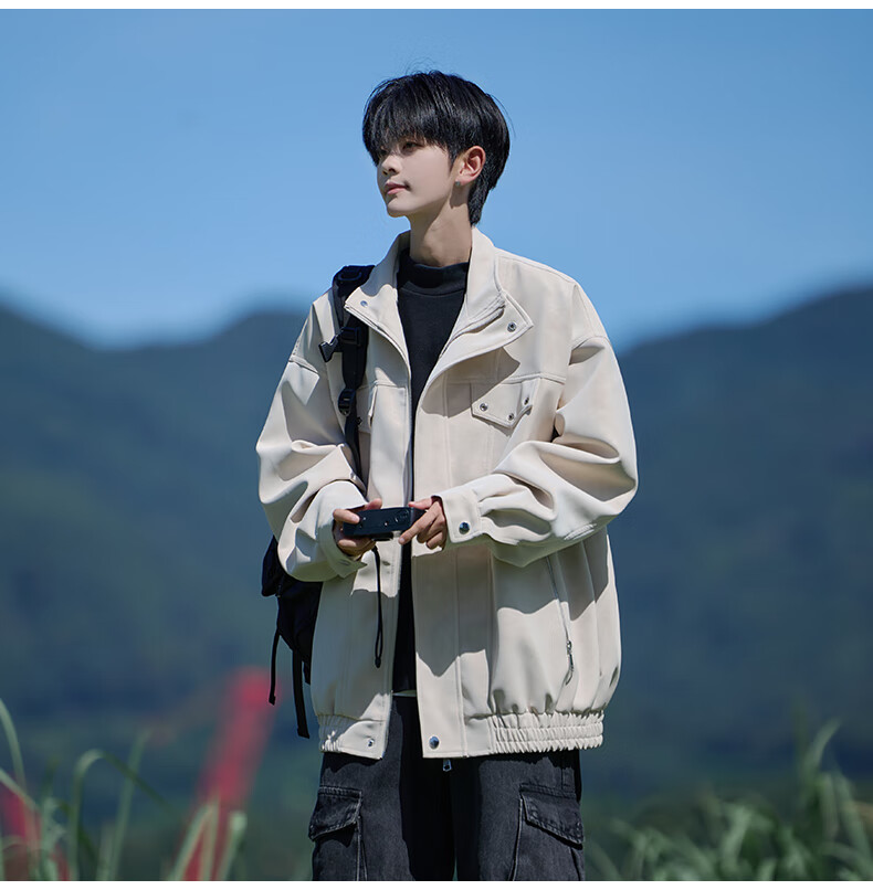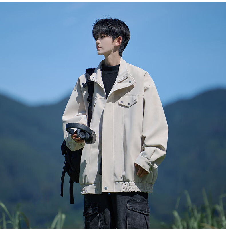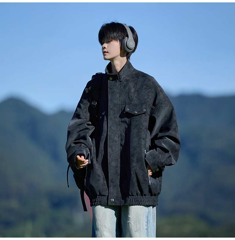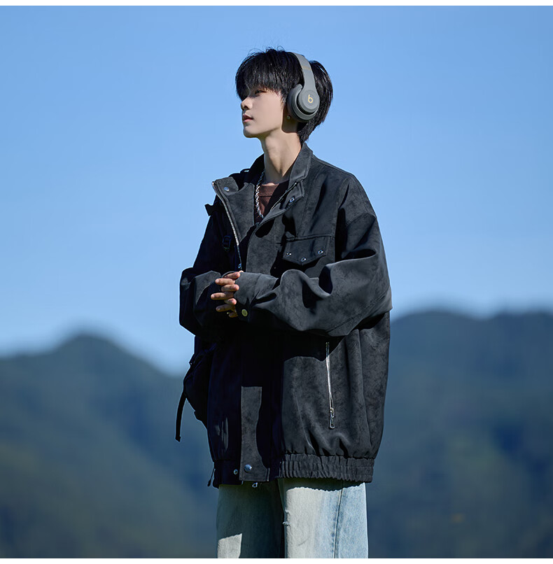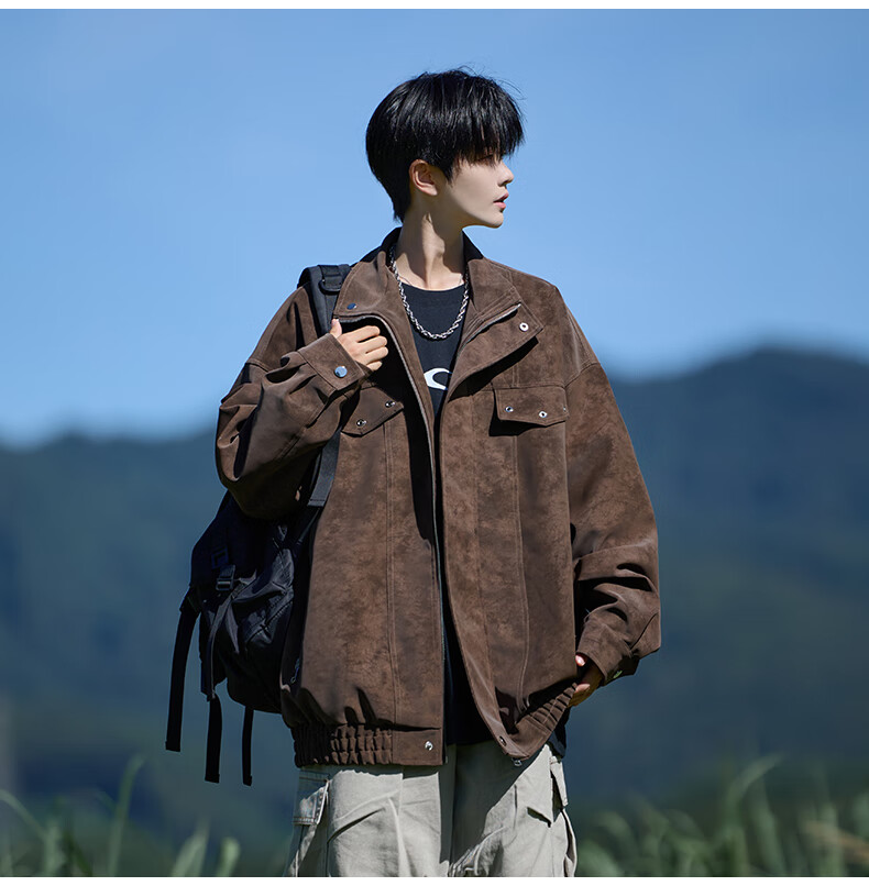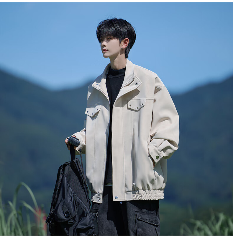 Shelley Jones American retro pu leather jacket men's autumn new loose trendy high-end handsome jacket clothing black cotton XL recommended 125-135Jin Jin equals 0.5 kg