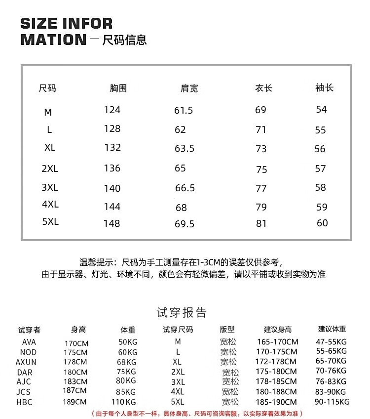 China (cm) 165 / 88-90 170 / 96-98 175 / 108-110 180 / 118-122 185 / 126-130