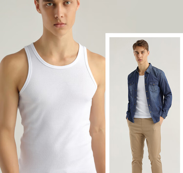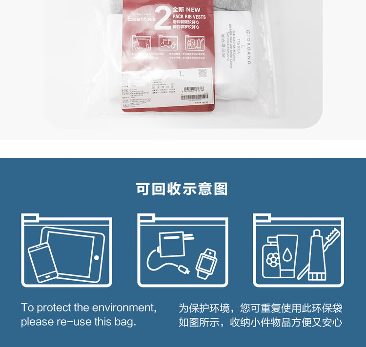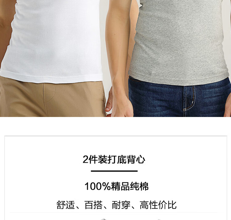 Giordano two-piece underwear men's basic cotton solid color U-neck slim vest for men 18242012