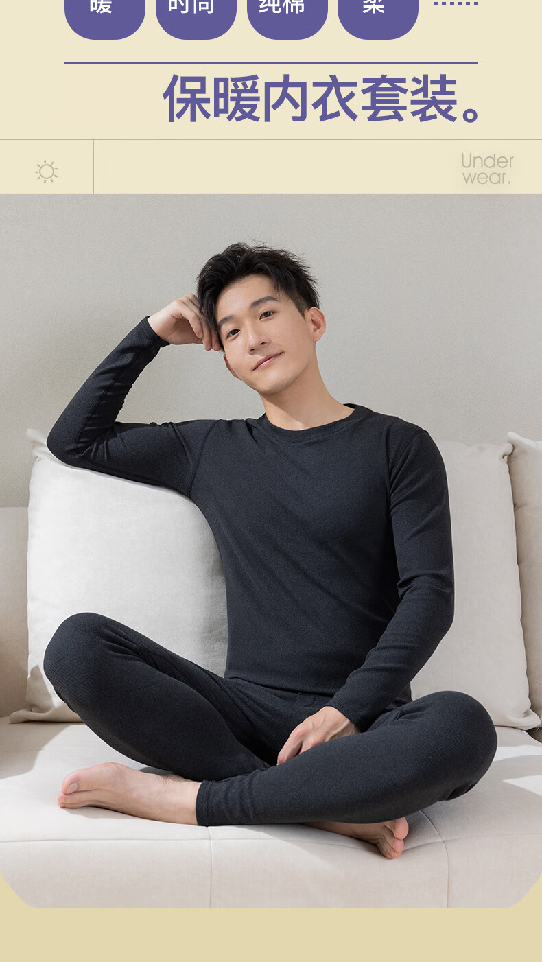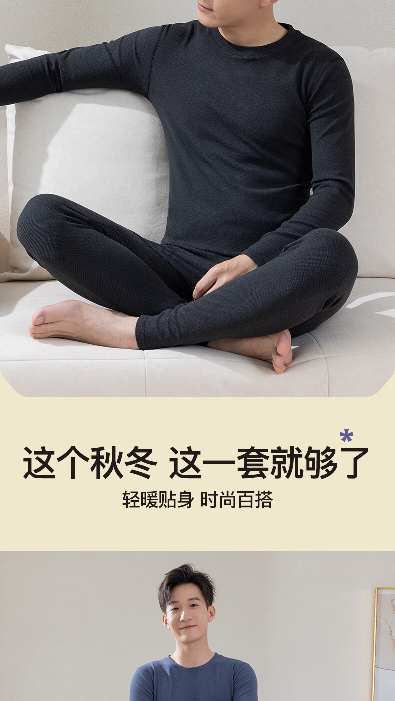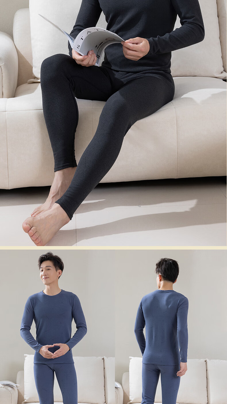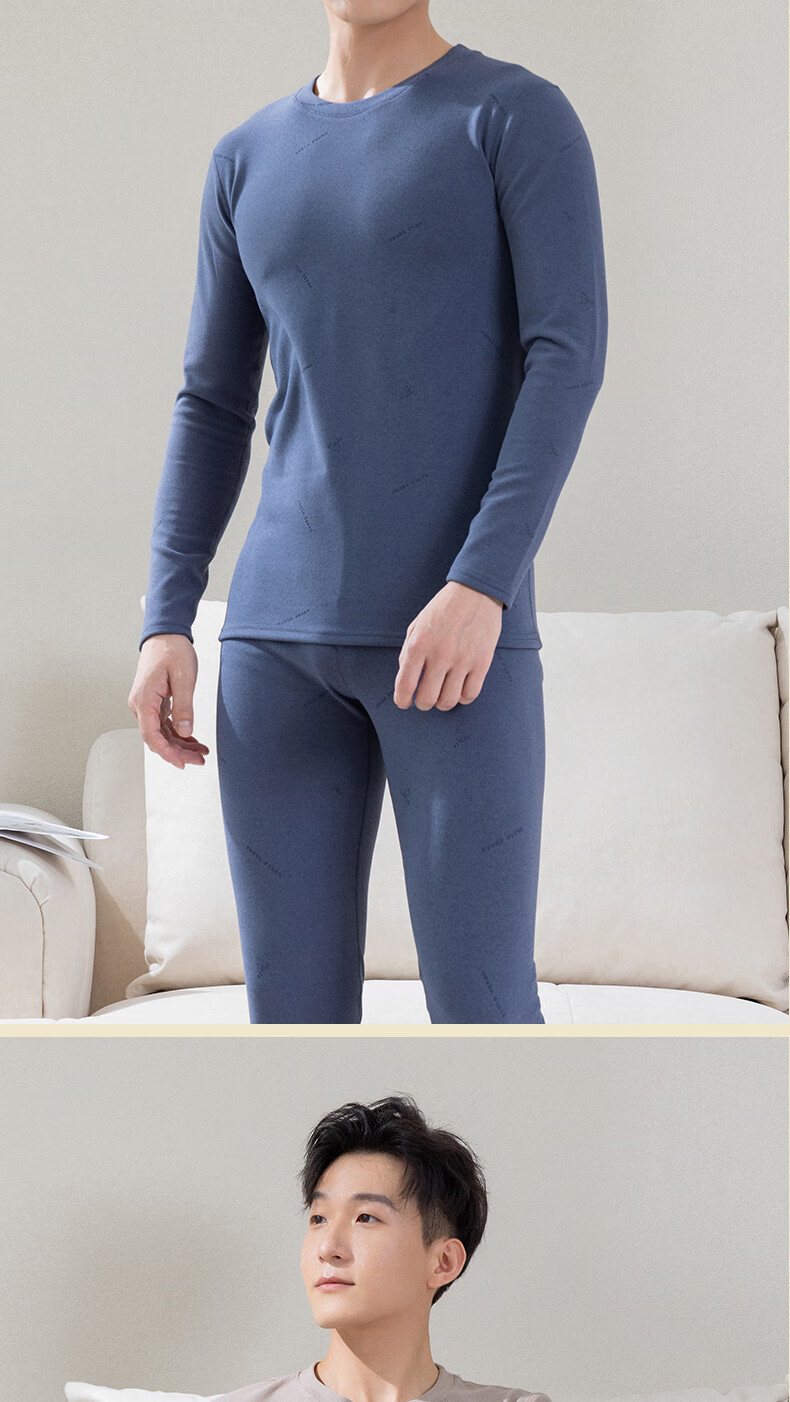 Langsha Cotton Sweater Men's Autumn Clothes Autumn Pants Set Autumn and Winter New Slim Youth Thin Line Clothes and Line Pants Thermal Underwear for Men