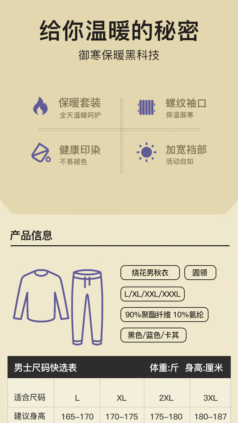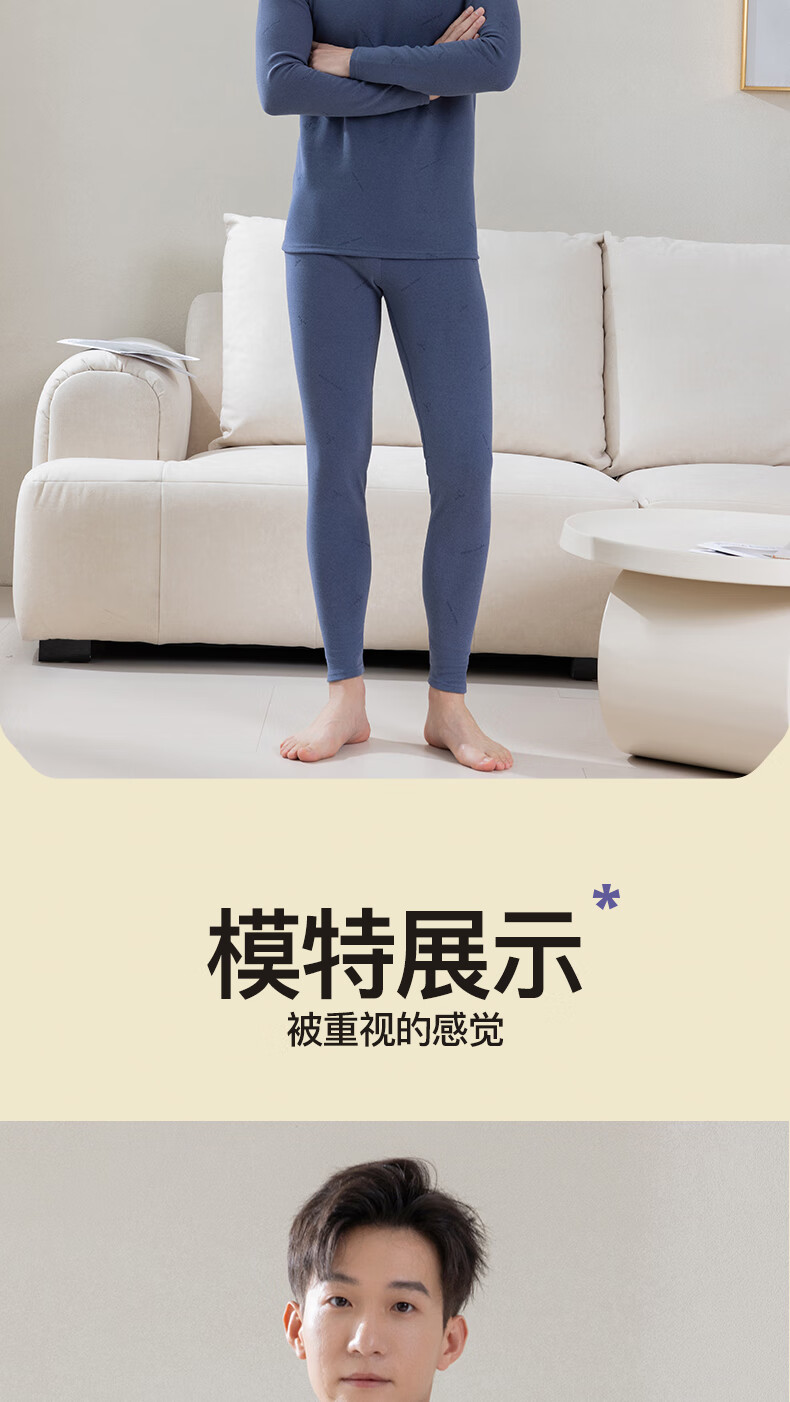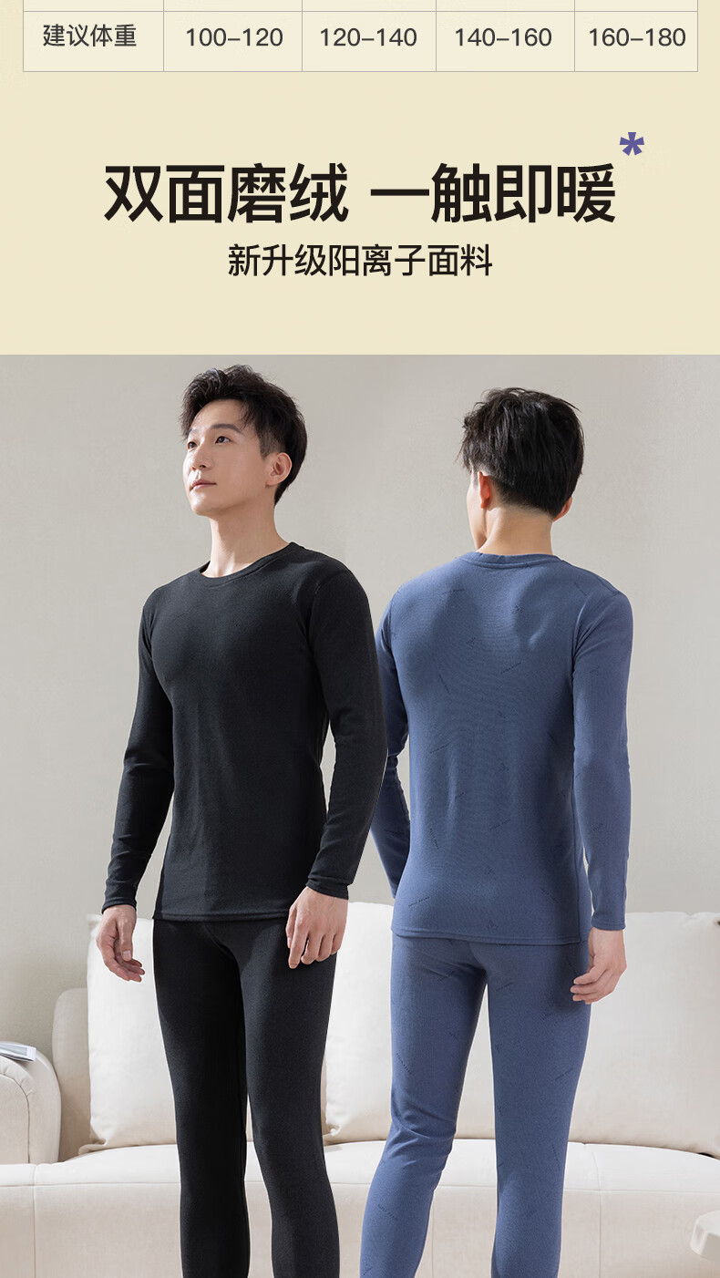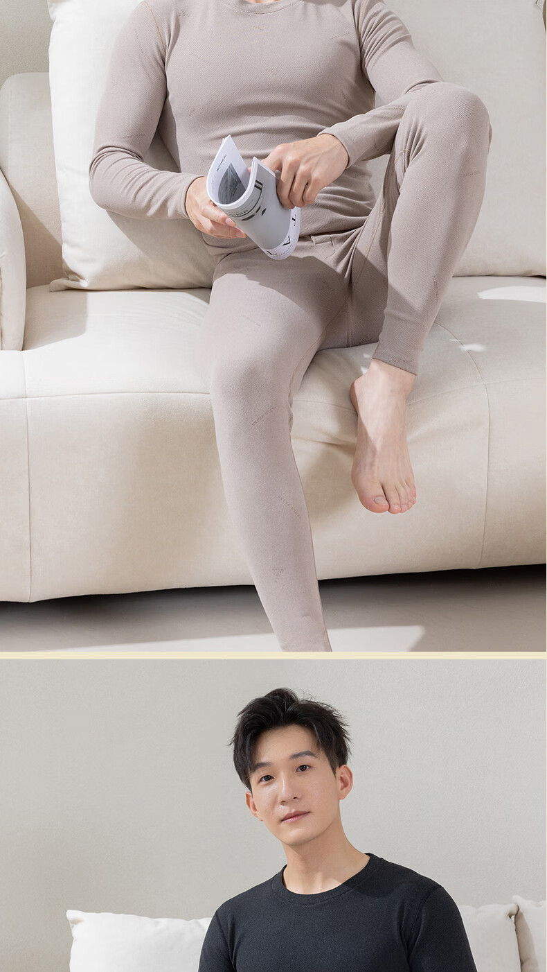 Langsha Cotton Sweater Men's Autumn Clothes Autumn Pants Set Autumn and Winter New Slim Youth Thin Line Clothes and Line Pants Thermal Underwear for Men