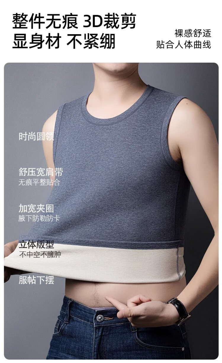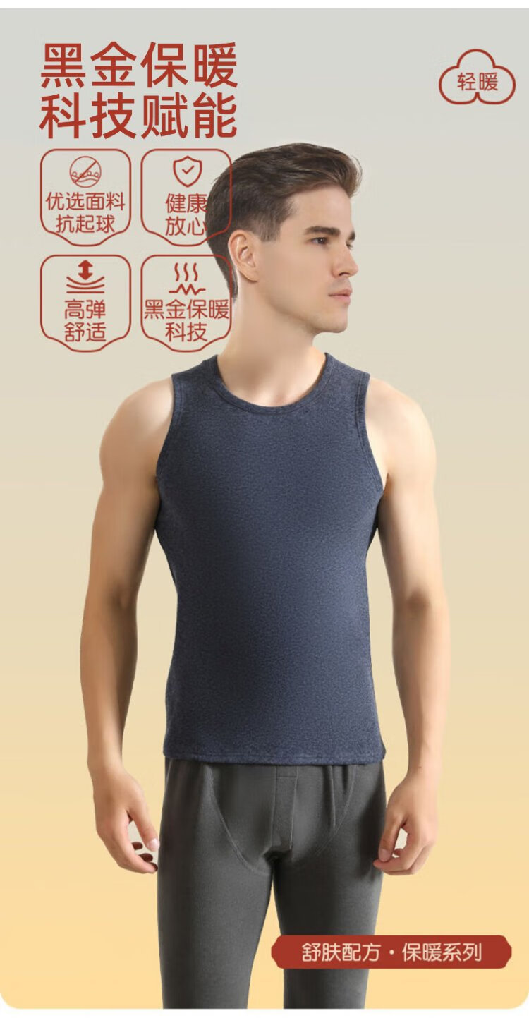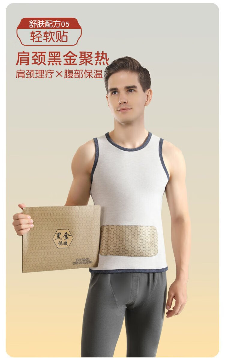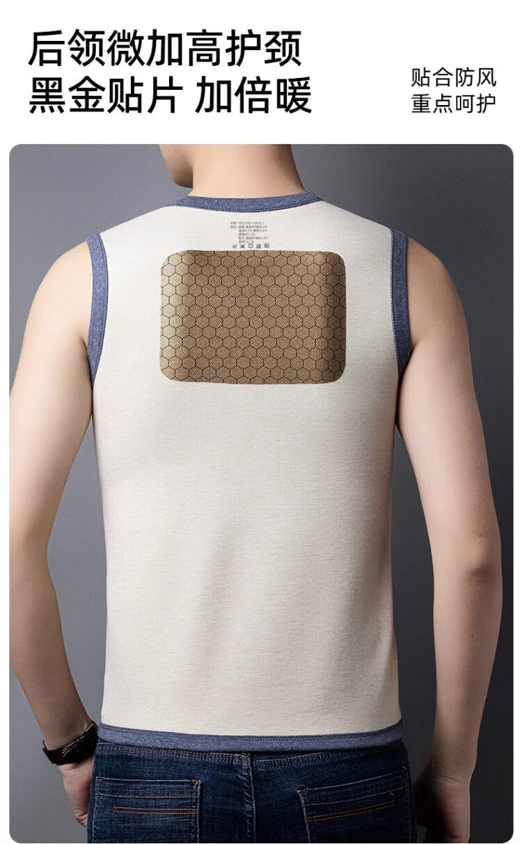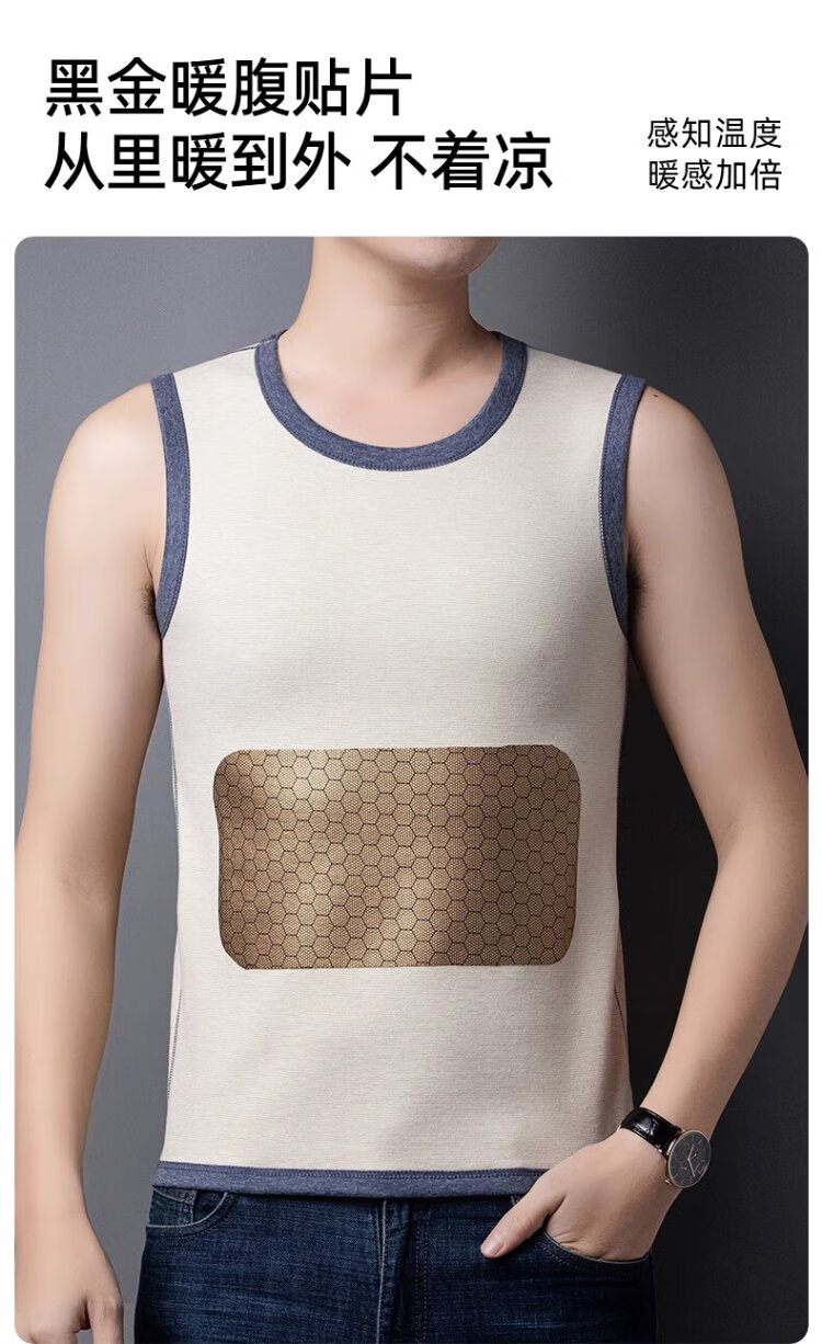 Langsha Thermal Vest Men's Down Silk Vest Men's Black Gold Graphene Patch Belly Protective Slim Bottoming Jacket