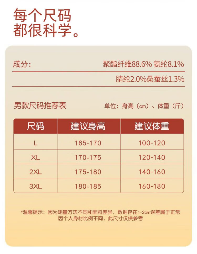 China (cm) 165 / 88-90 170 / 96-98 175 / 108-110 180 / 118-122 185 / 126-130