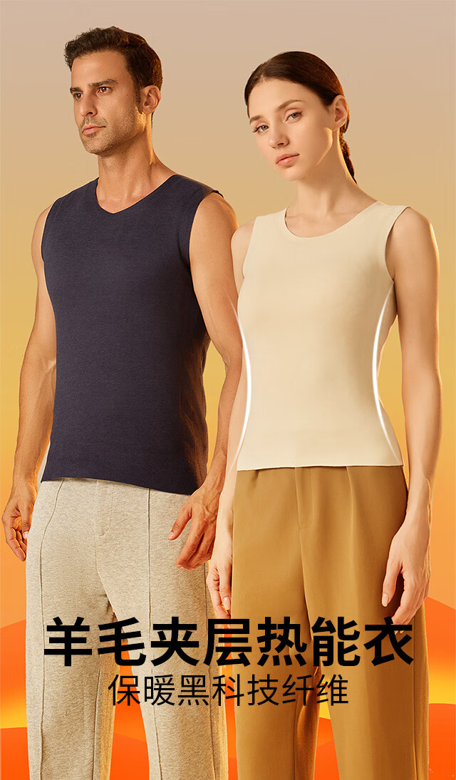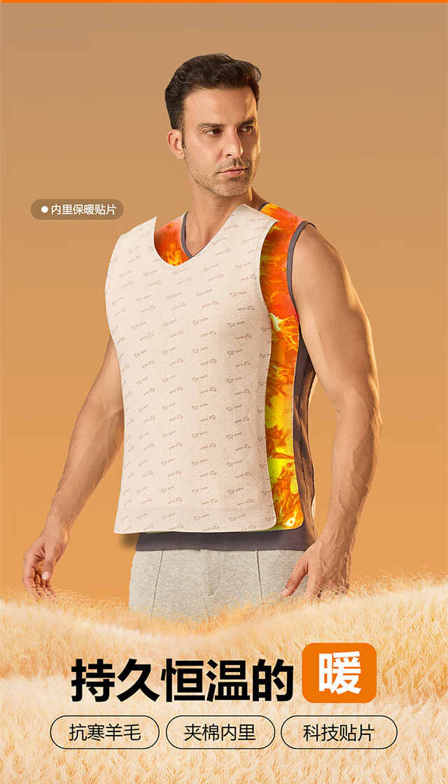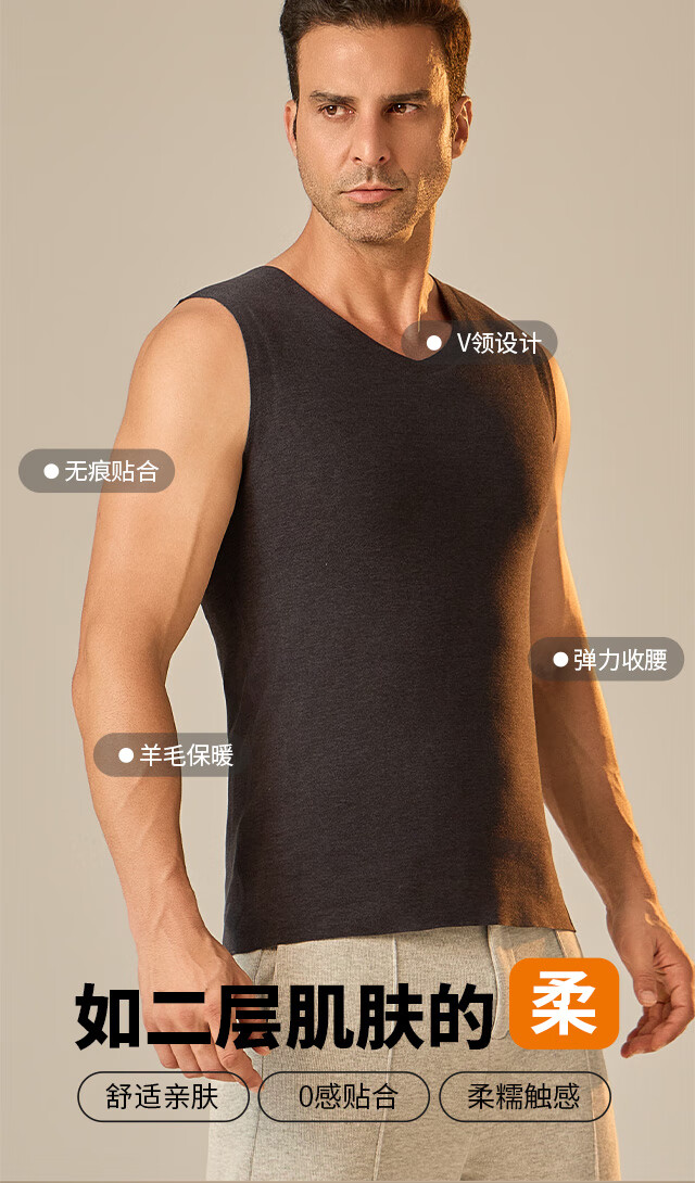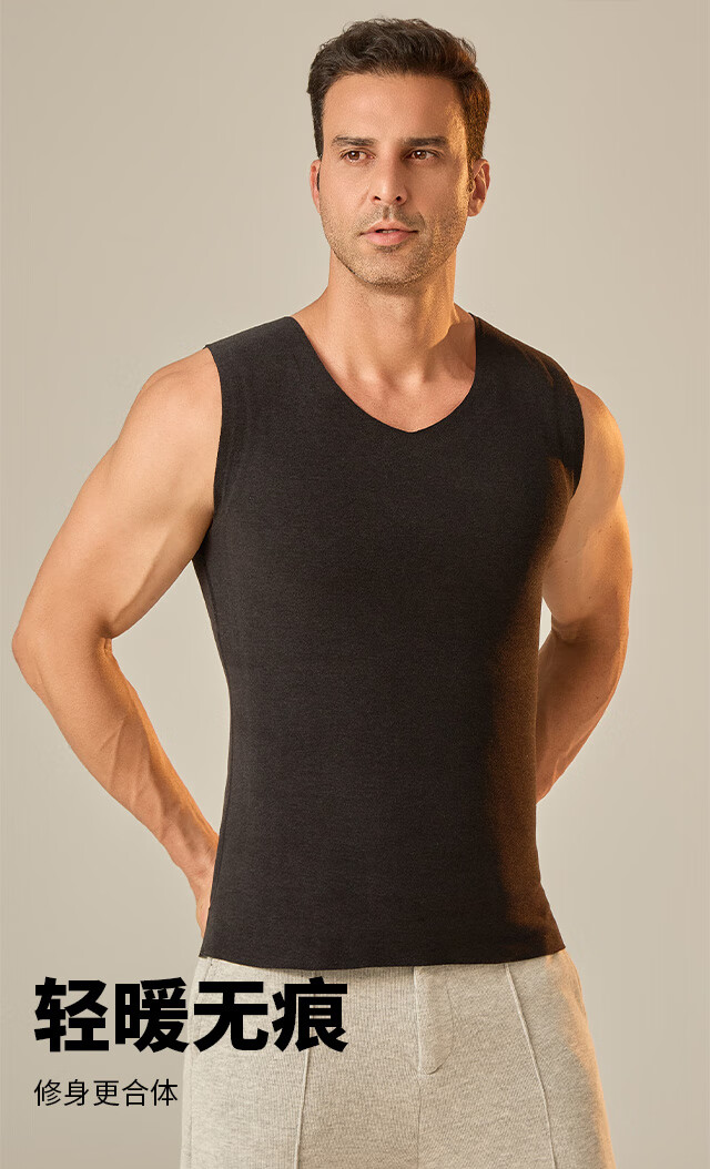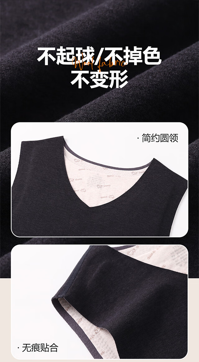 Xue Qianman wool thermal vest for men in autumn and winter, seamless antibacterial base layer, thickened and warm, slim sleeveless waistcoat for men