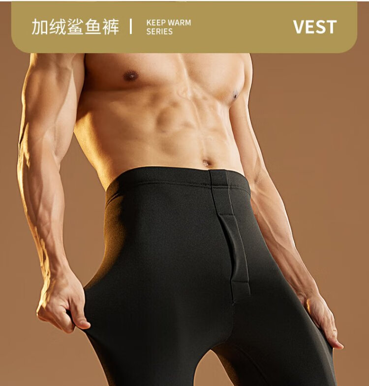Modal men's shark pants men's winter velvet thickened warm pants tight antibacterial windproof motorcycle riding bottoming Barbie pants