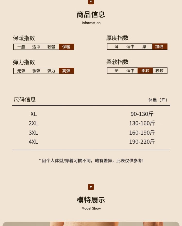 China (cm) 165 / 88-90 170 / 96-98 175 / 108-110 180 / 118-122 185 / 126-130