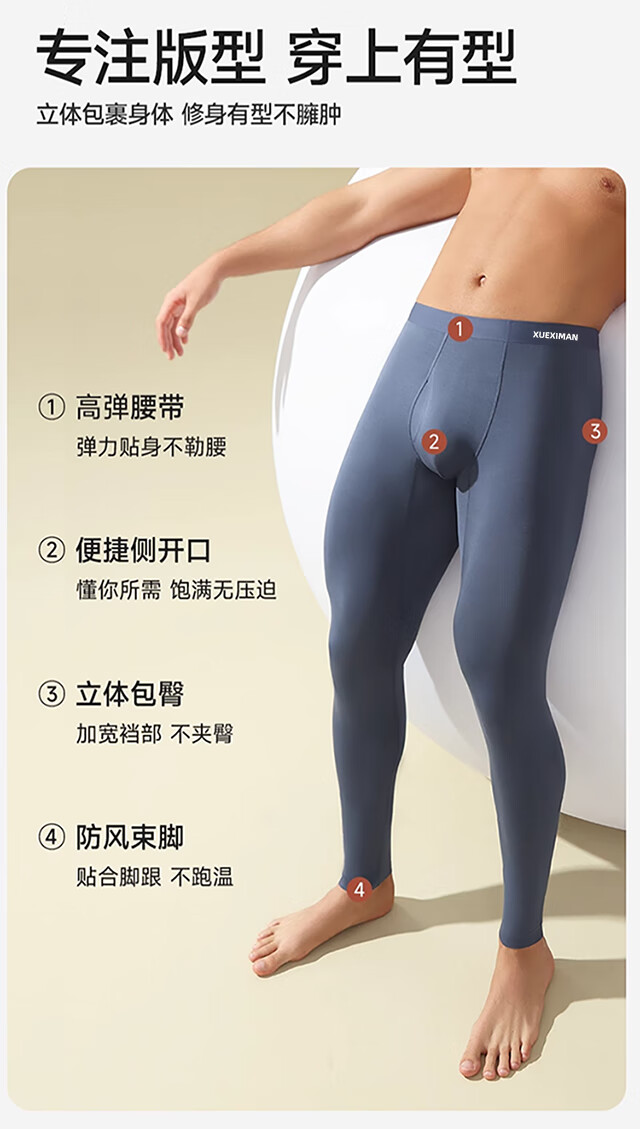 Xue Qianman Autumn Pants Men's Light Thin Seamless Slim Bottoms Highly Elastic Underwear Autumn and Winter Men's Warm Pants