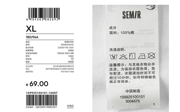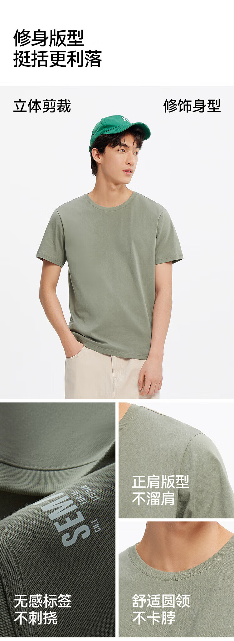 Semir short-sleeved T-shirt men's pure cotton slim fit 25 summer solid color inner men's T-shirt versatile 109925100101