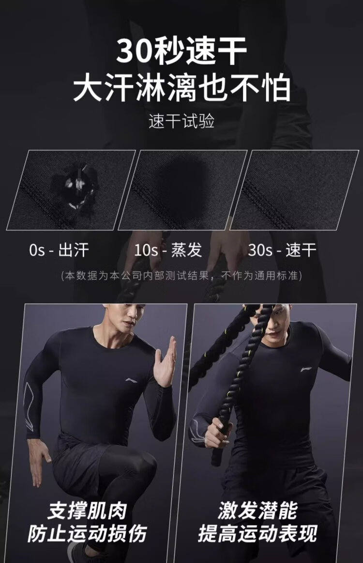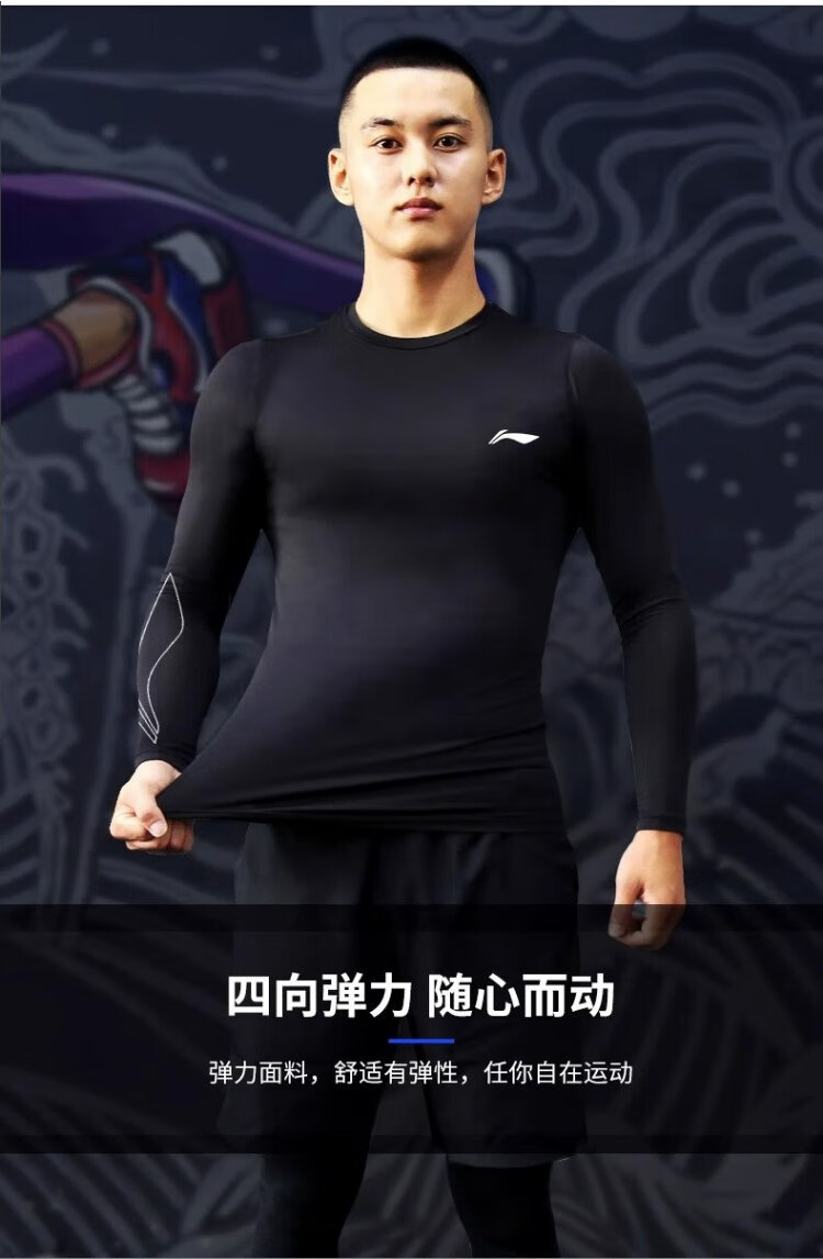 Li Ning quick-drying clothing men's autumn and winter tights running basketball fitness sportswear high elastic bottoming long-sleeved compression clothing training clothing