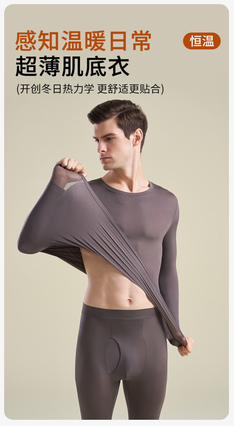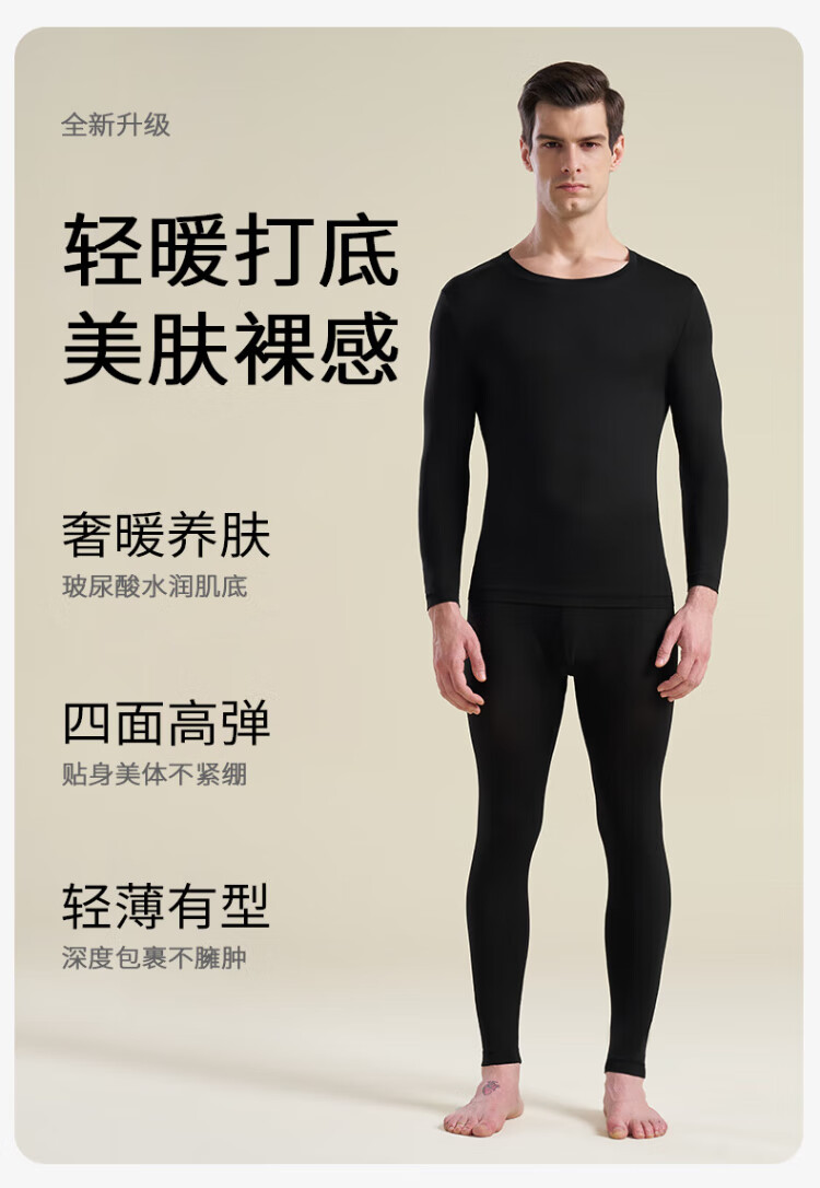 Catman Thermal Underwear Men's Set Hyaluronic Acid Skin Beauty Clothes Ultra-Thin Tight Constant Temperature Bottoming Autumn Clothes and Autumn Pants