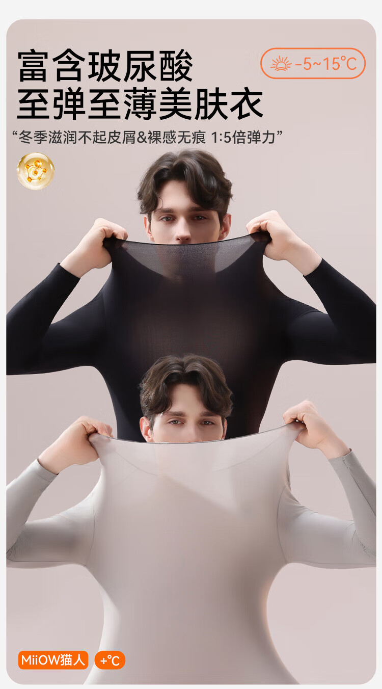 Cat Skin Skin Beauty Clothes Men's Autumn Clothes and Autumn Pants Men's Autumn and Winter Ultra-Lightweight Seamless Invisible Comfortable Slim Thermal Underwear Set