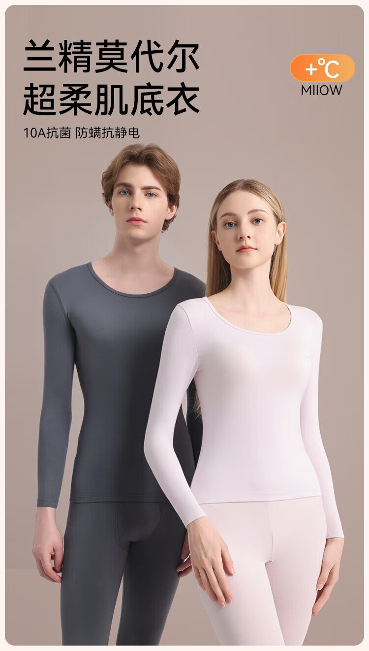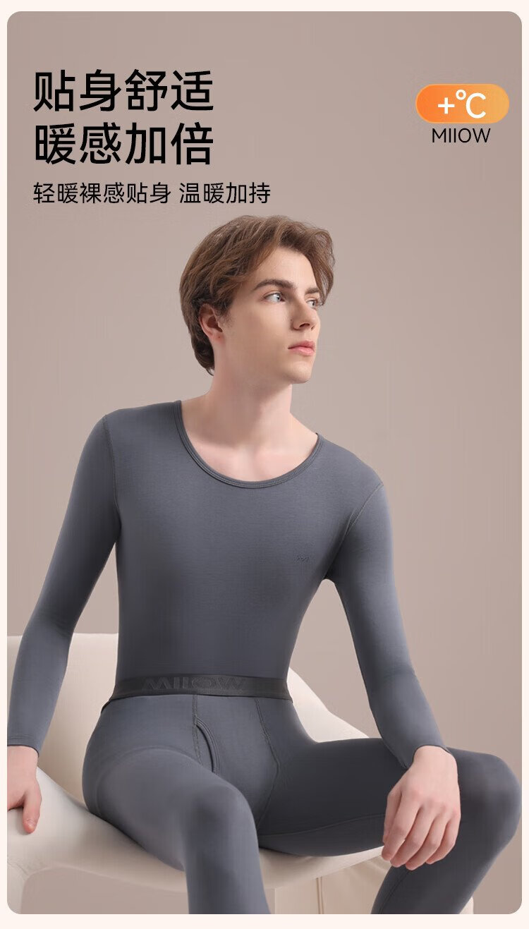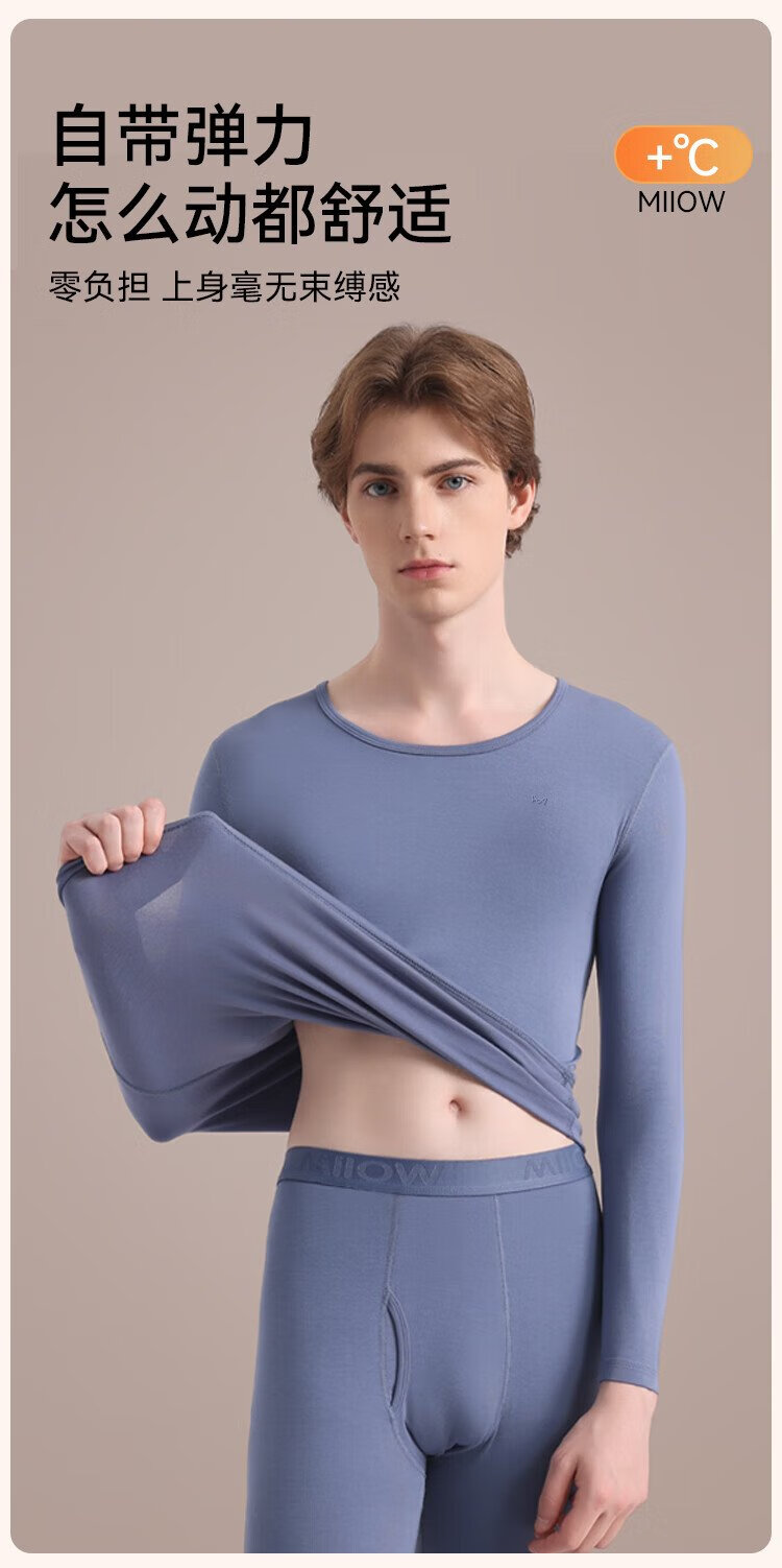 Catman 10A Antibacterial Modal Thermal Underwear Men's Couples Slim-fitting Basement Autumn Clothes Autumn Pants Set Gray Blue XL