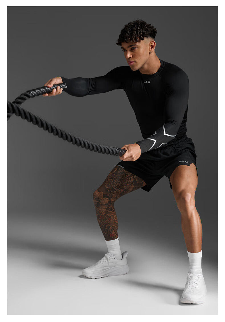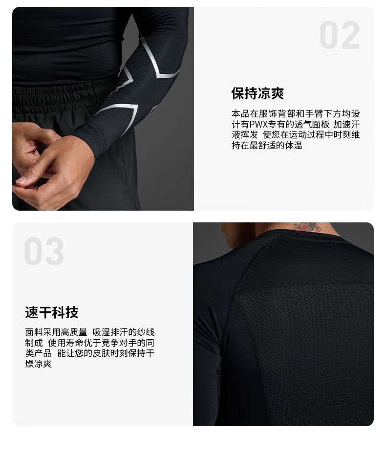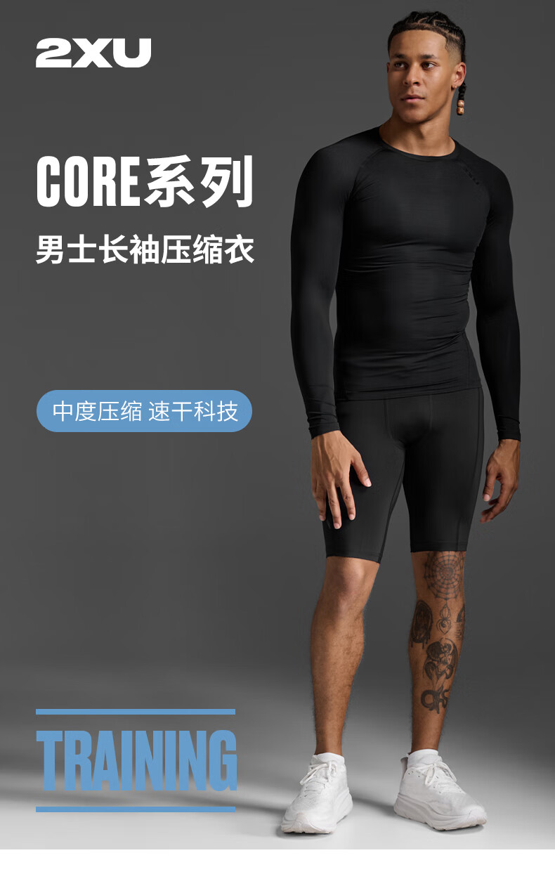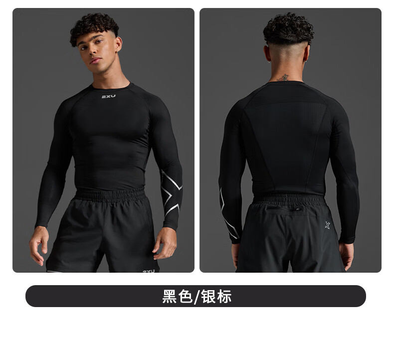 2XU Core series gradient compression clothing, professional sports fitness clothing, quick-drying clothing, breathable men's long-sleeved tights, black/silver M