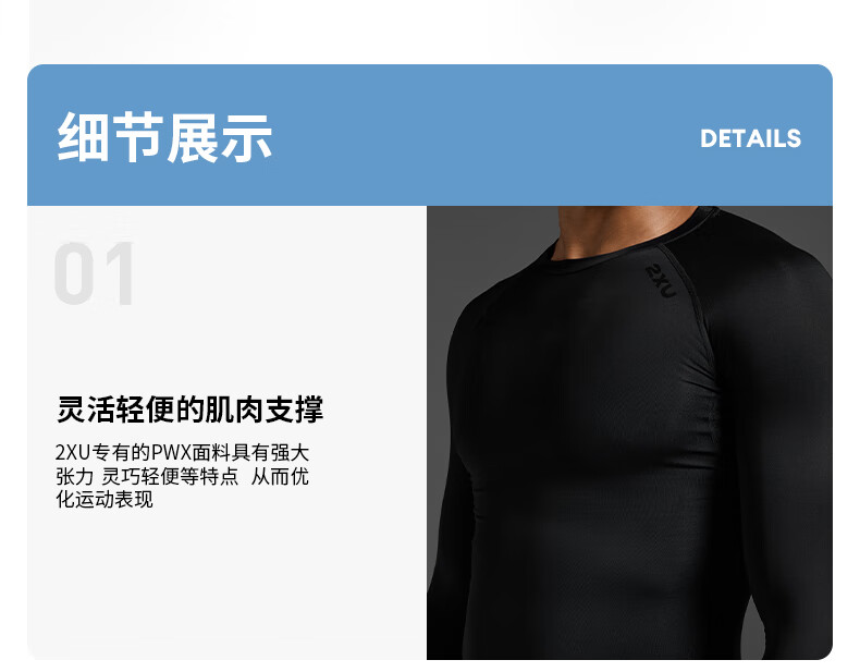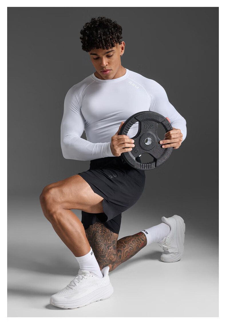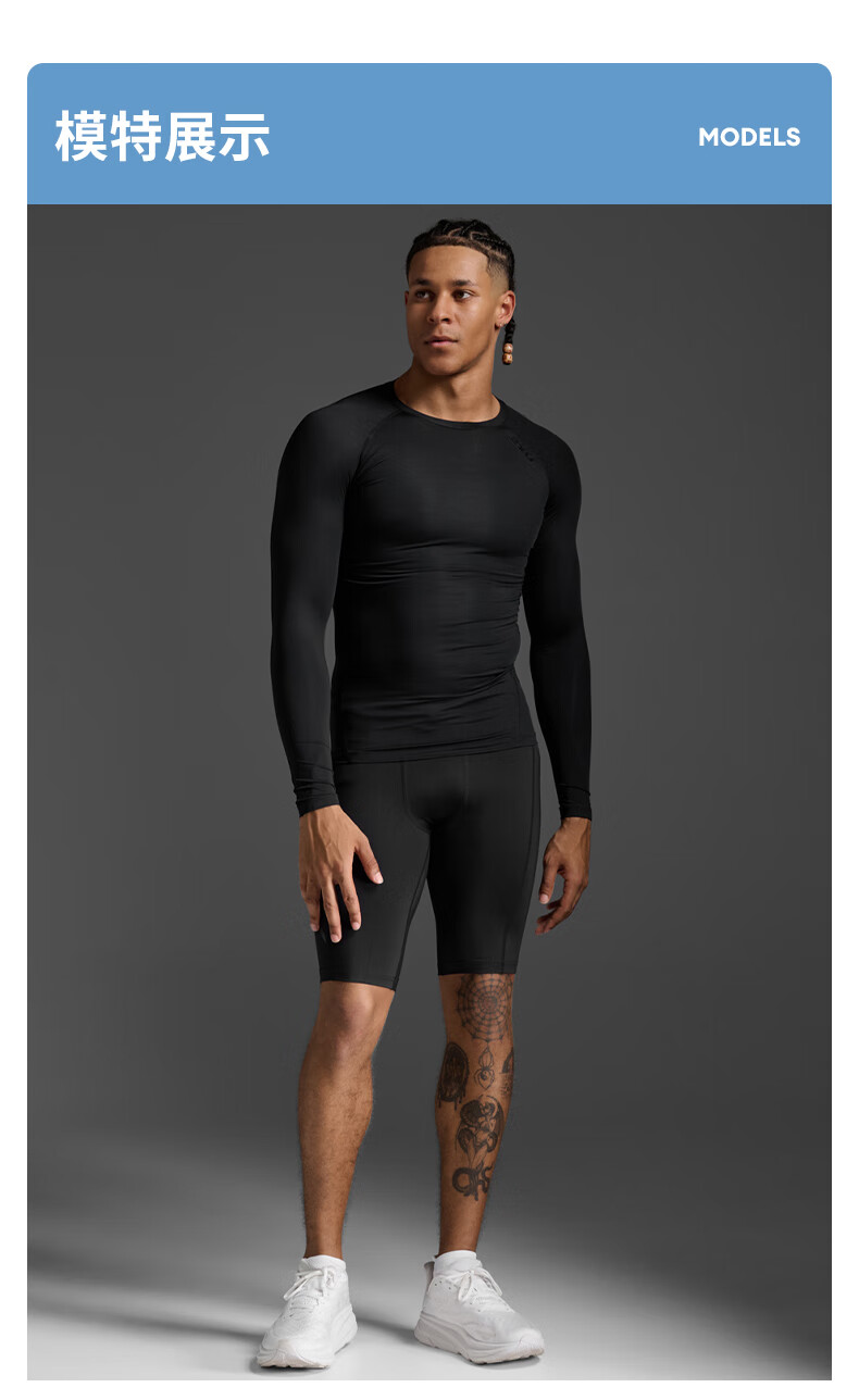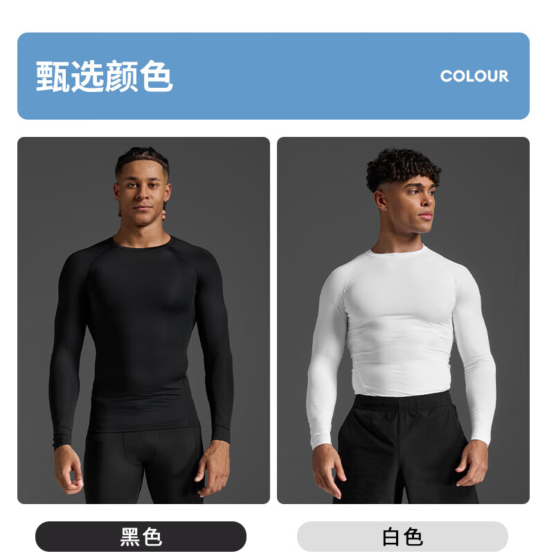 2XU Core series gradient compression clothing, professional sports fitness clothing, quick-drying clothing, breathable men's long-sleeved tights, black/silver M