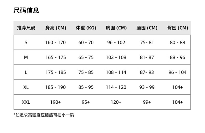 China (cm) 160-165/84-86 165-170 / 88-90 167-172 / 92-96 168-173 / 98-102 170-176 / 106-110