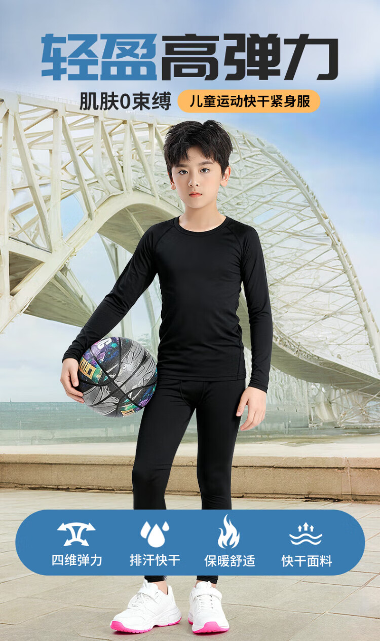 BURUITE children's quick-drying clothing sports suit basketball football training fitness clothing tights men's running student badminton clothing