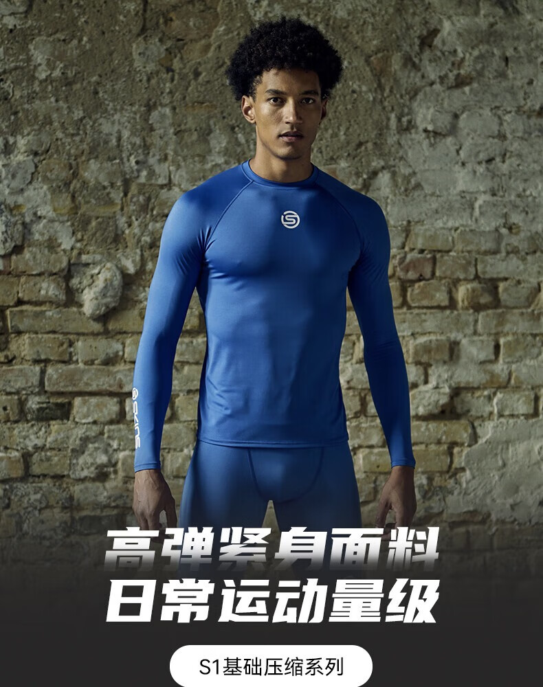 SKINS S1 Men's Autumn and Winter Quick-drying Running Basketball Triathlon Sports Tight Fitness Wear Professional Compression Clothing Long Sleeve Star Black M