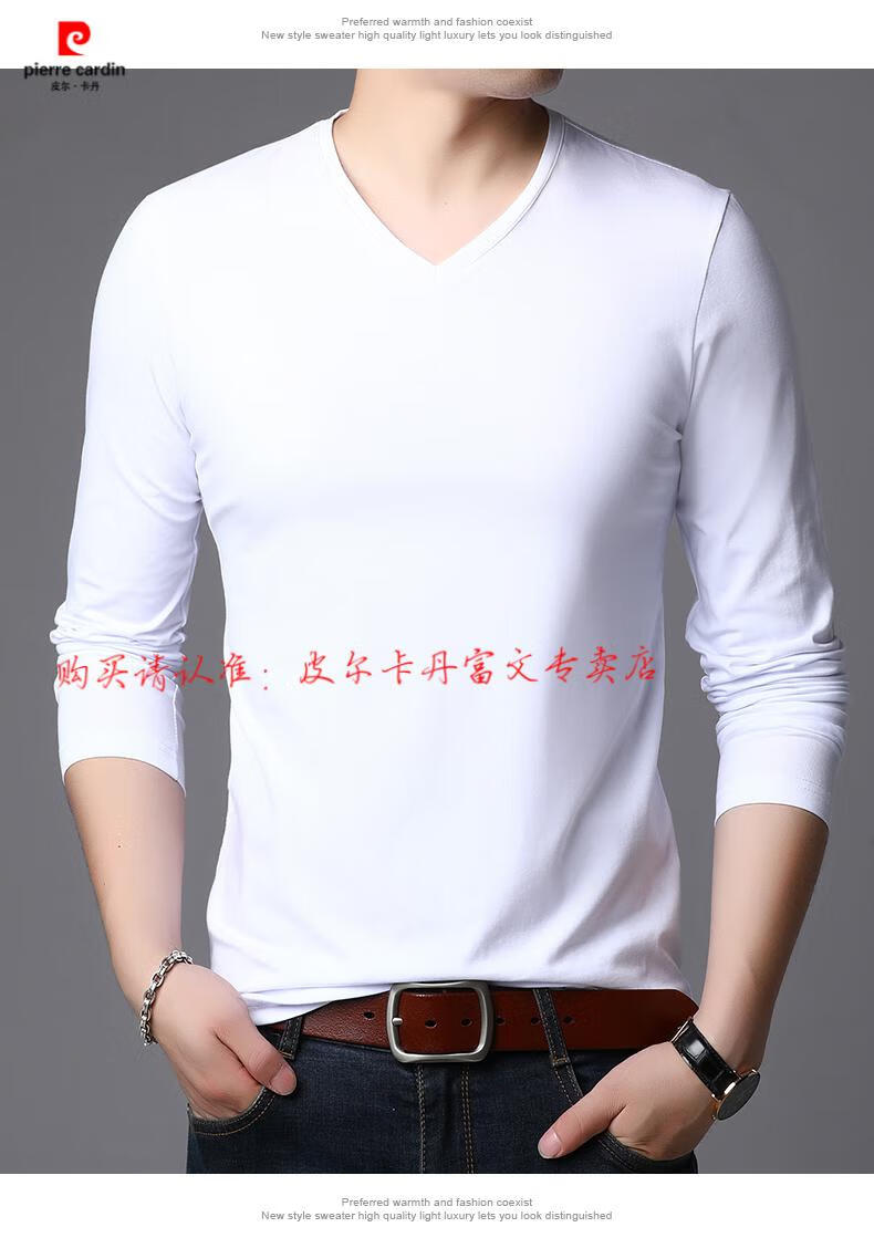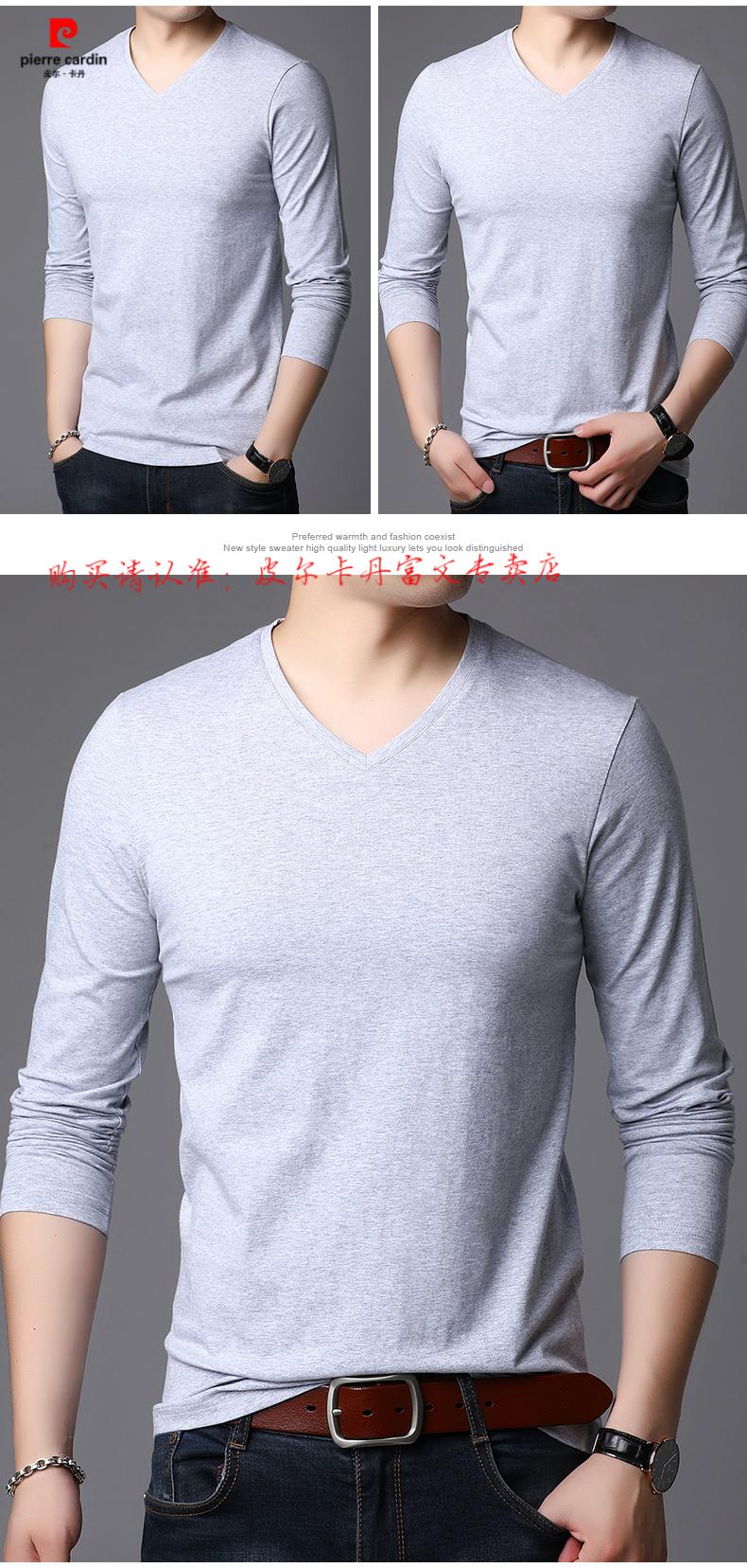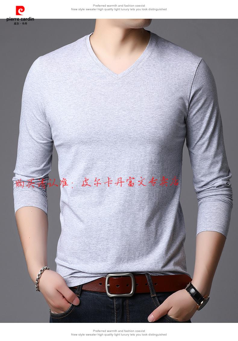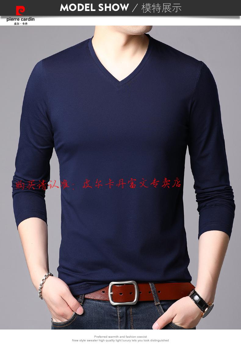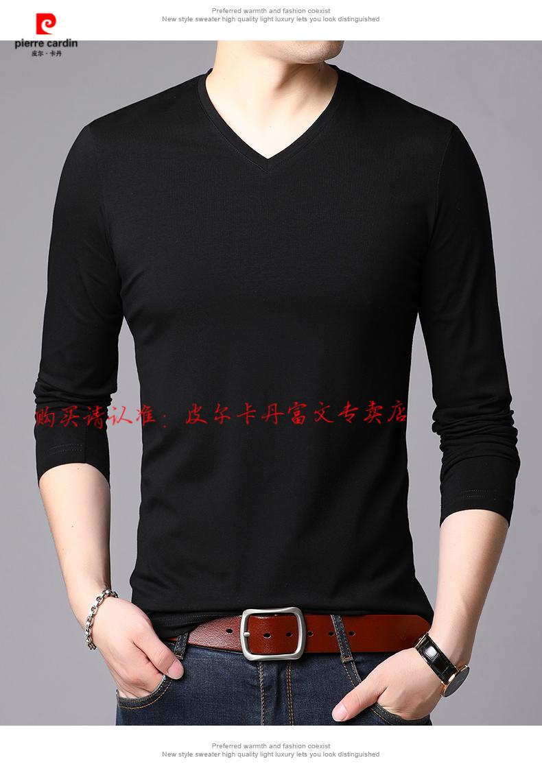 Pierre Cardin 2025 new men's pure cotton long-sleeved T-shirt men's autumn and spring V-neck autumn clothes middle-aged slim casual men's tops black + white two-piece set M 165