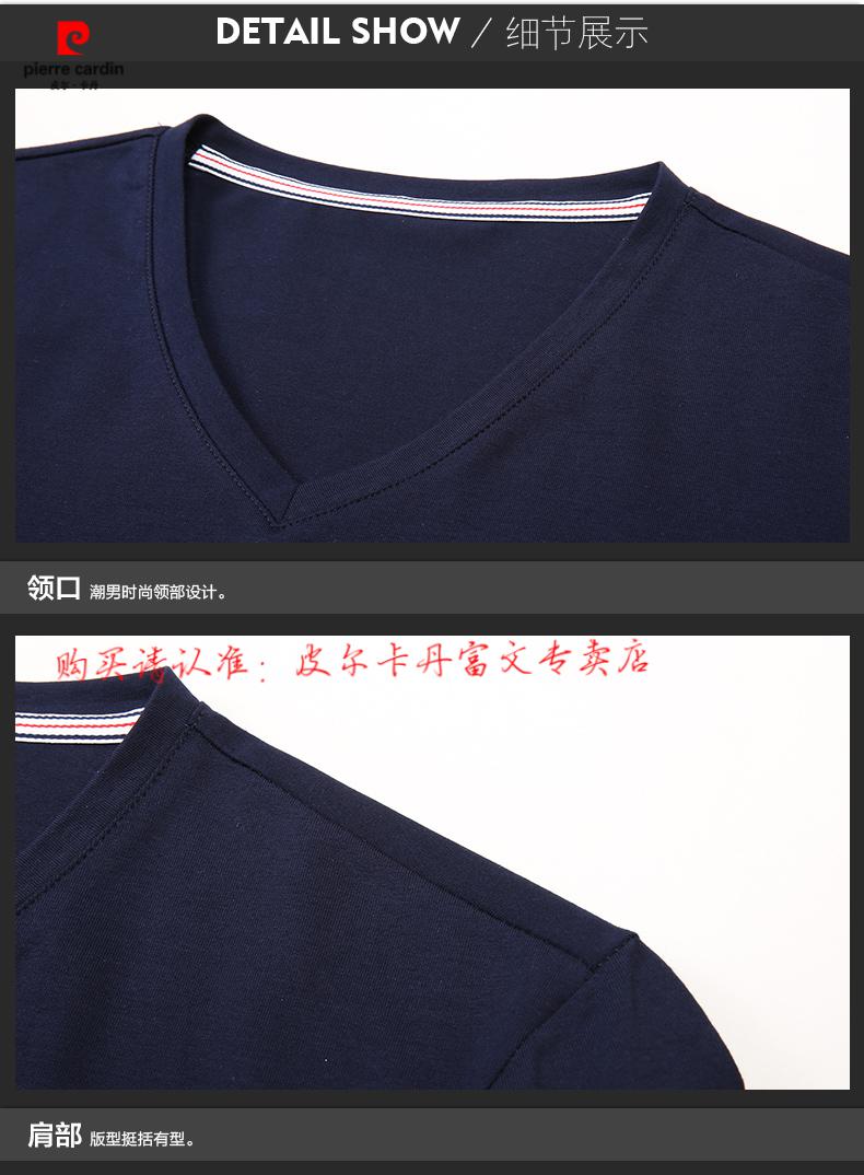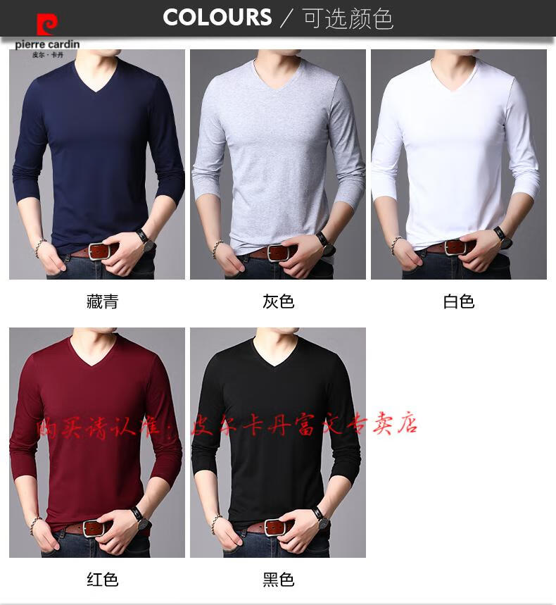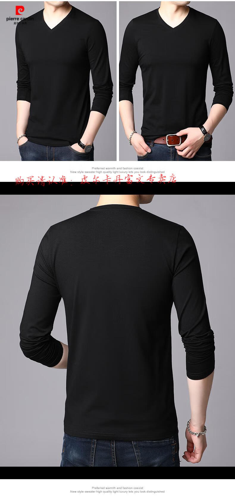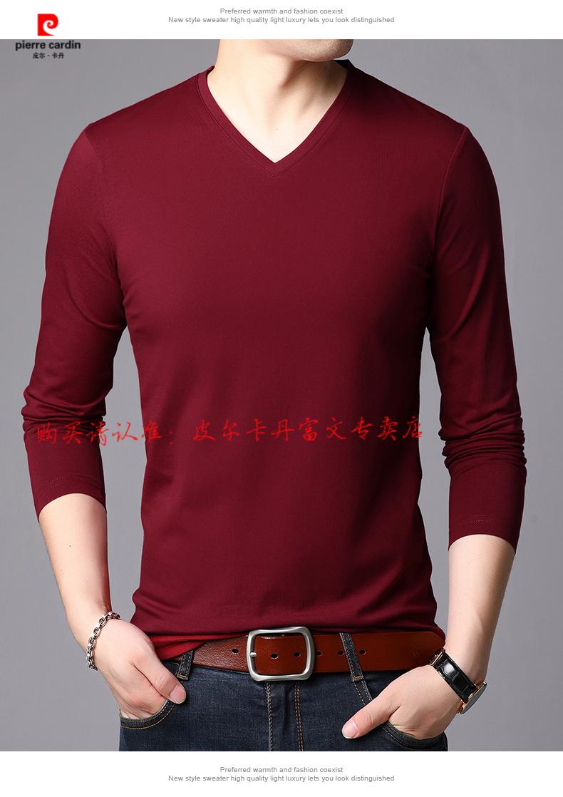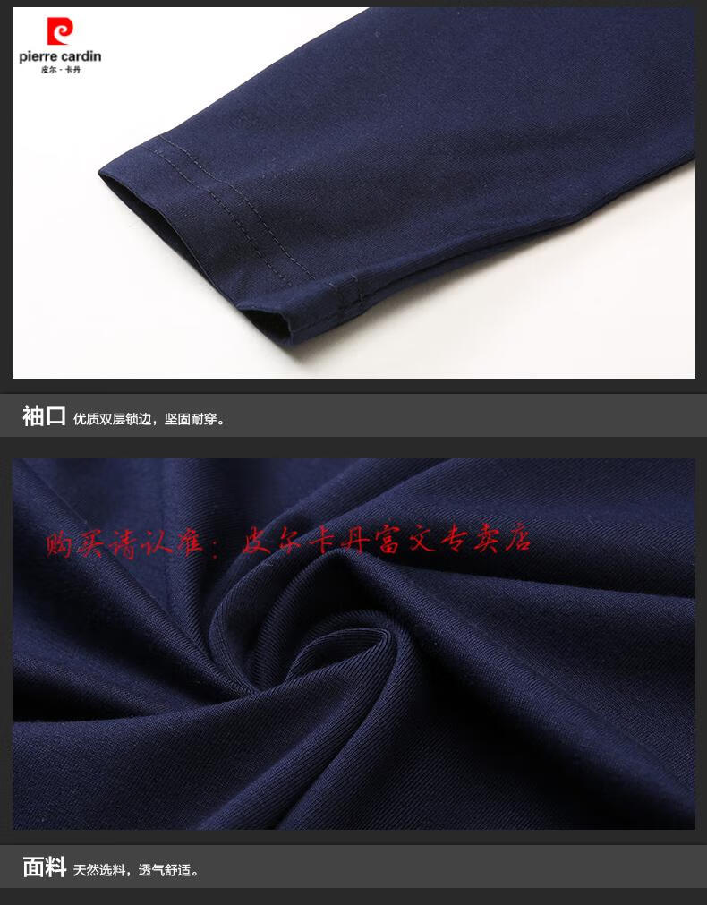 Pierre Cardin 2025 new men's pure cotton long-sleeved T-shirt men's autumn and spring V-neck autumn clothes middle-aged slim casual men's tops black + white two-piece set M 165