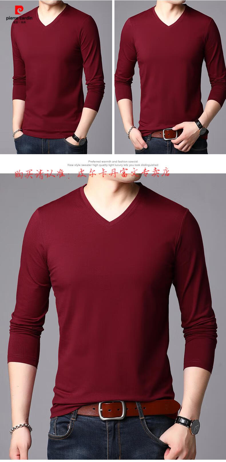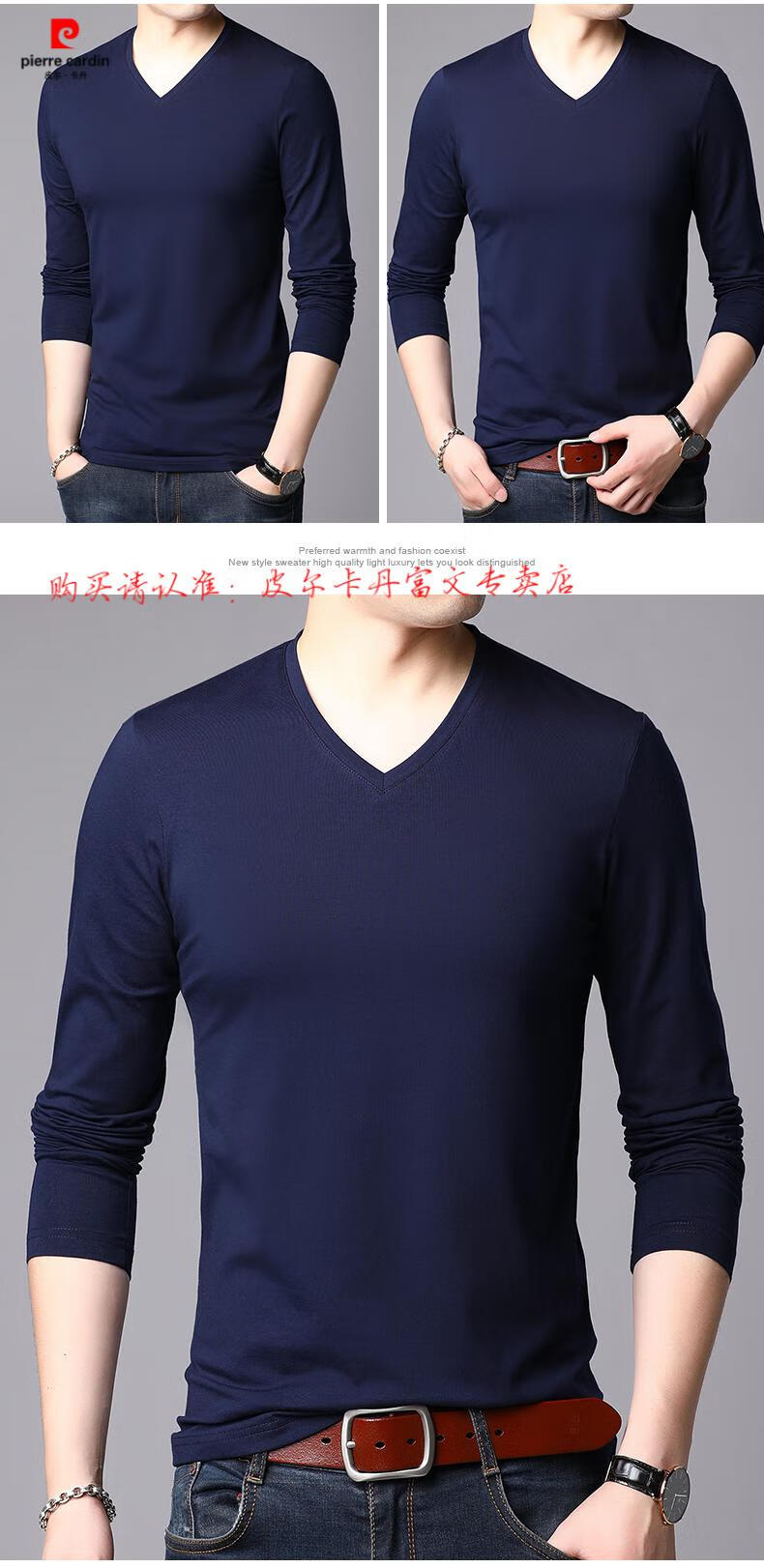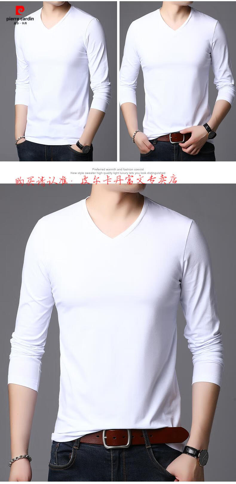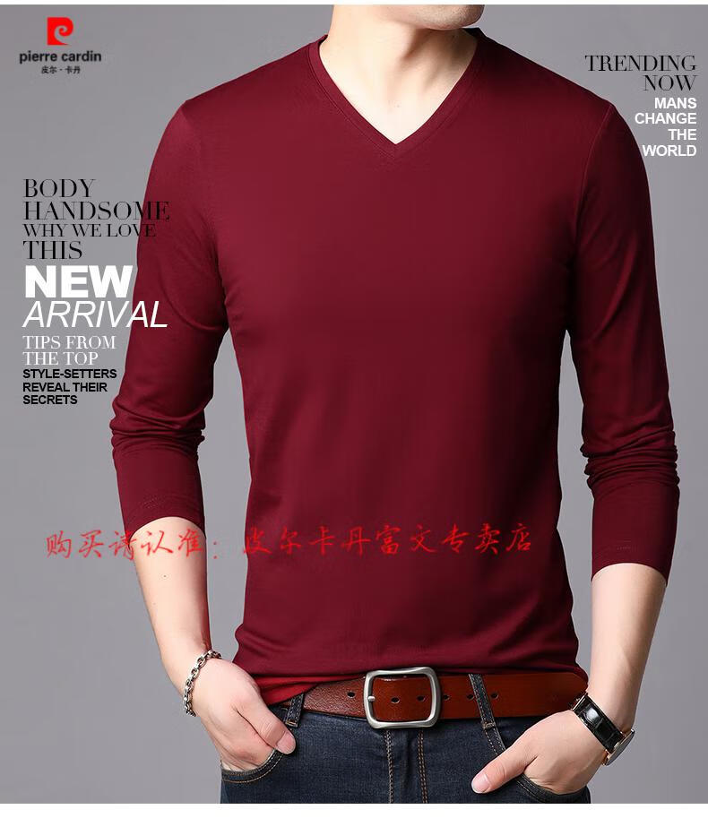Pierre Cardin 2025 new men's pure cotton long-sleeved T-shirt men's autumn and spring V-neck autumn clothes middle-aged slim casual men's tops black + white two-piece set M 165