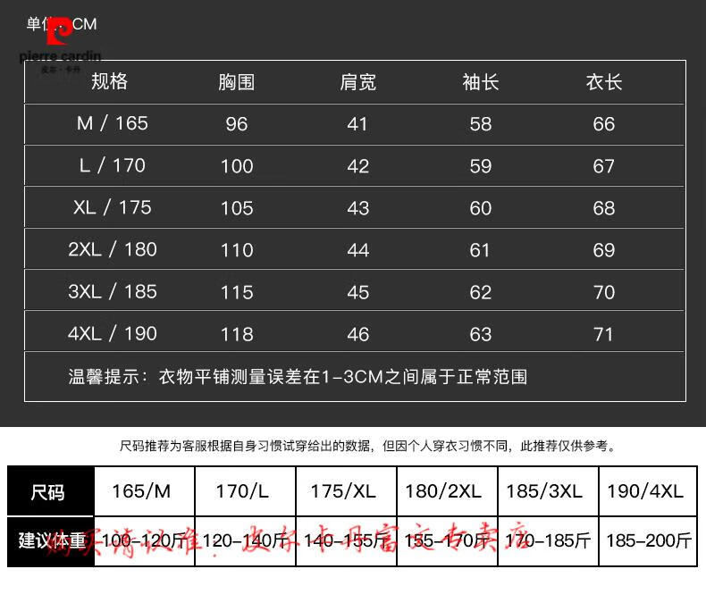 China (cm) 165 / 88-90 170 / 96-98 175 / 108-110 180 / 118-122 185 / 126-130