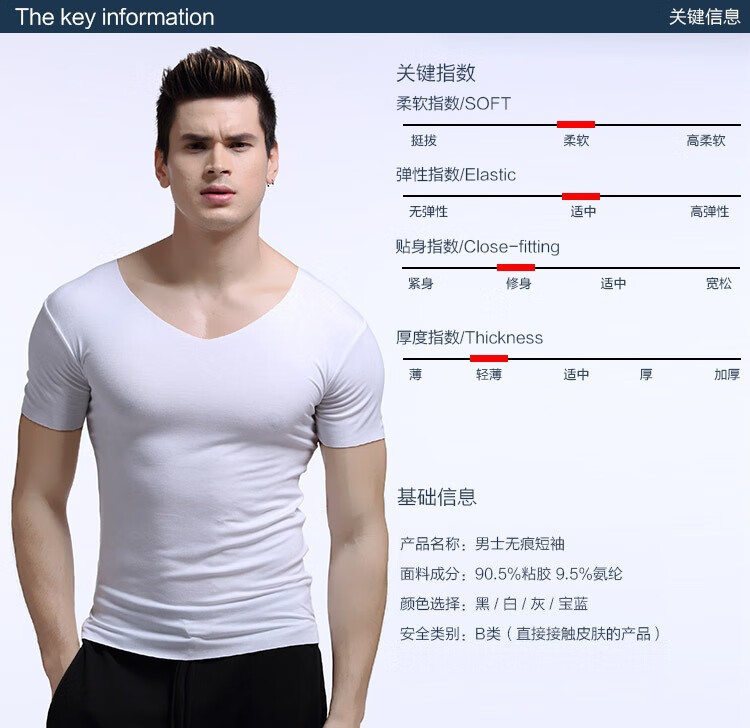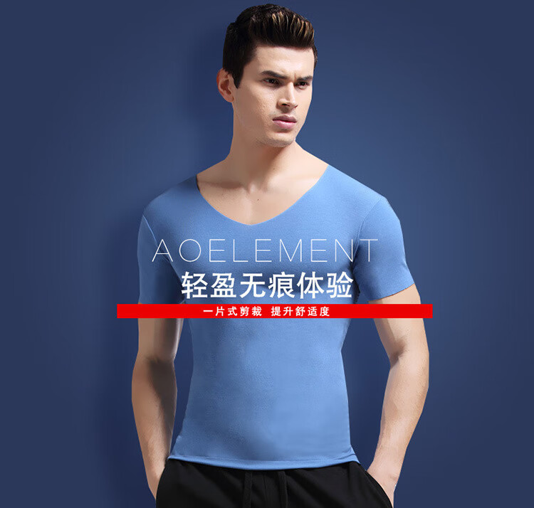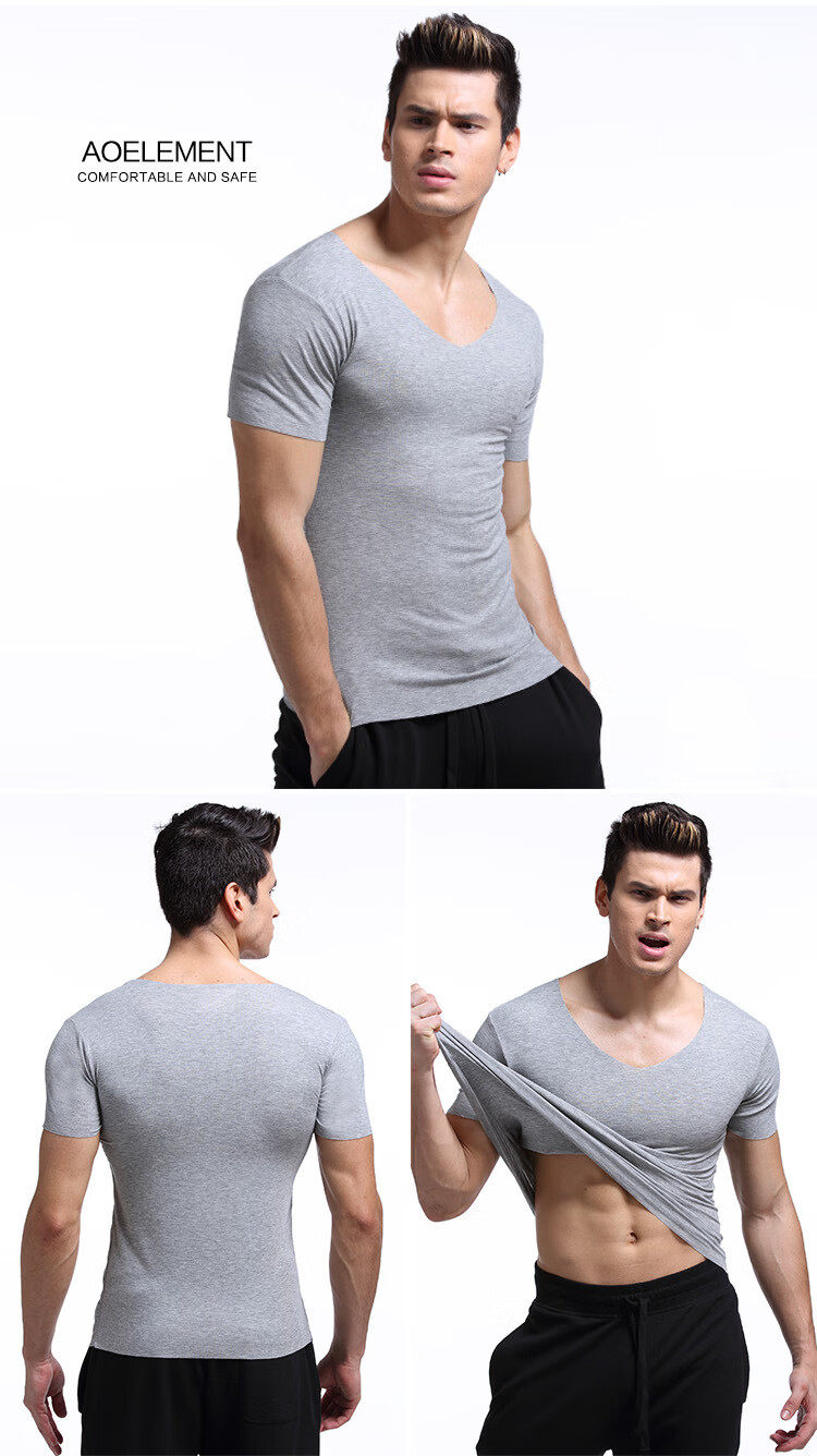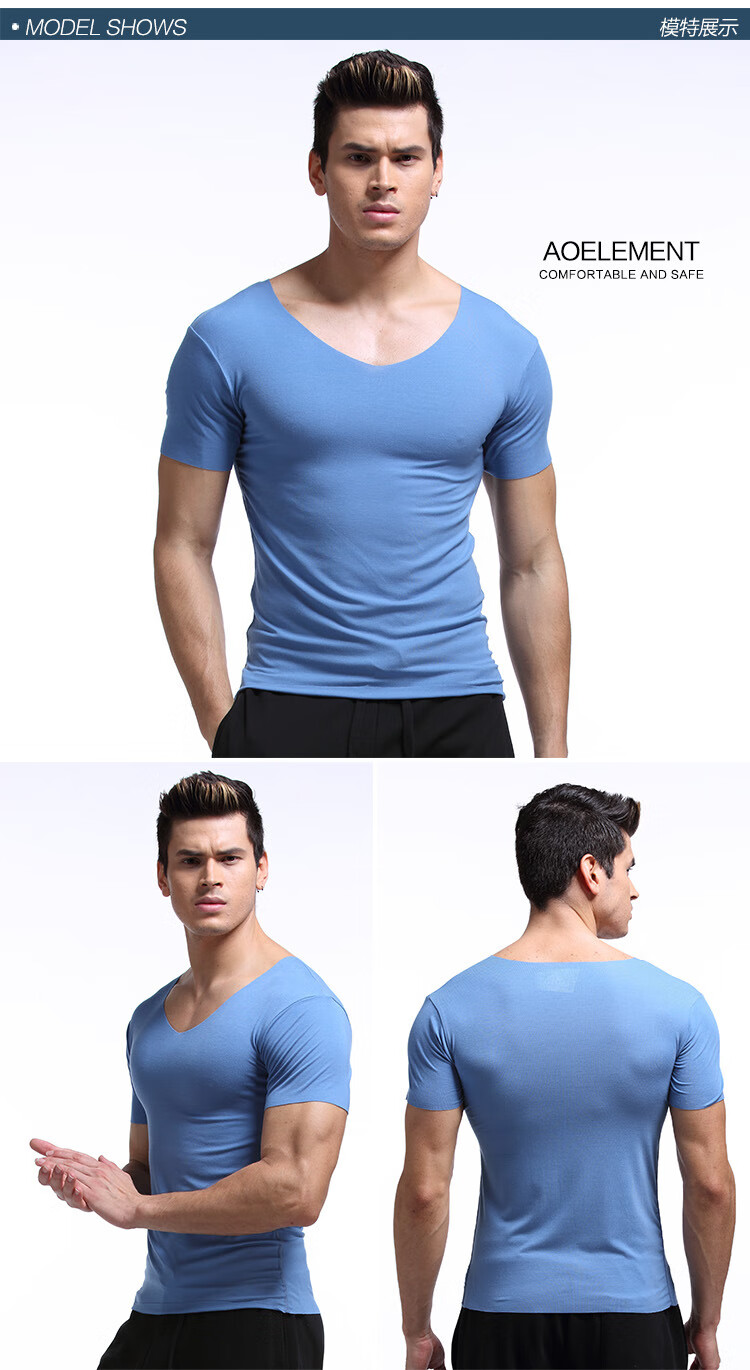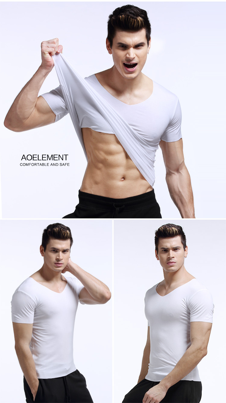 MiiOW men's vest men's seamless thin men's short-sleeved T-shirt v-neck solid color tight bottoming shirt slim underwear modal white XL