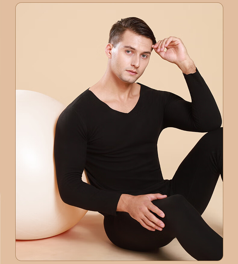 Arctic Velvet Seamless Heating Thermal Underwear Men's Plus Velvet Thickened Suit German Winter Velvet Youth Autumn Clothes Autumn Pants Men's Thin Dark Gray + Black 2 Sets 4XL 175-200Jin Jin equals 0.5 kg - slim and slim