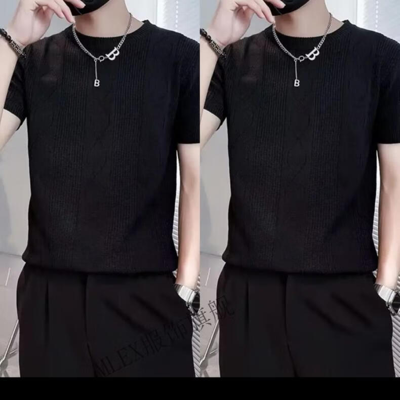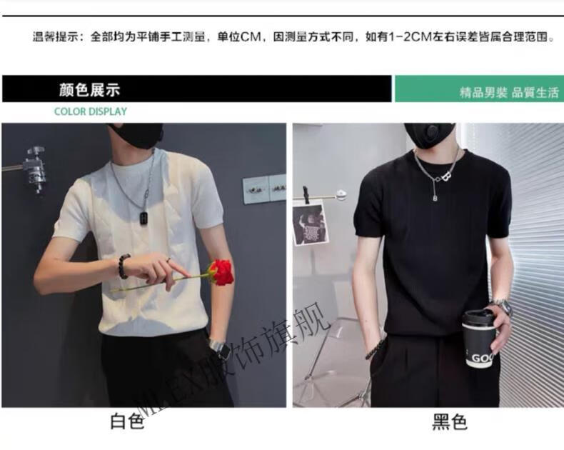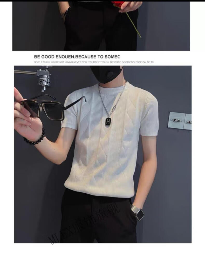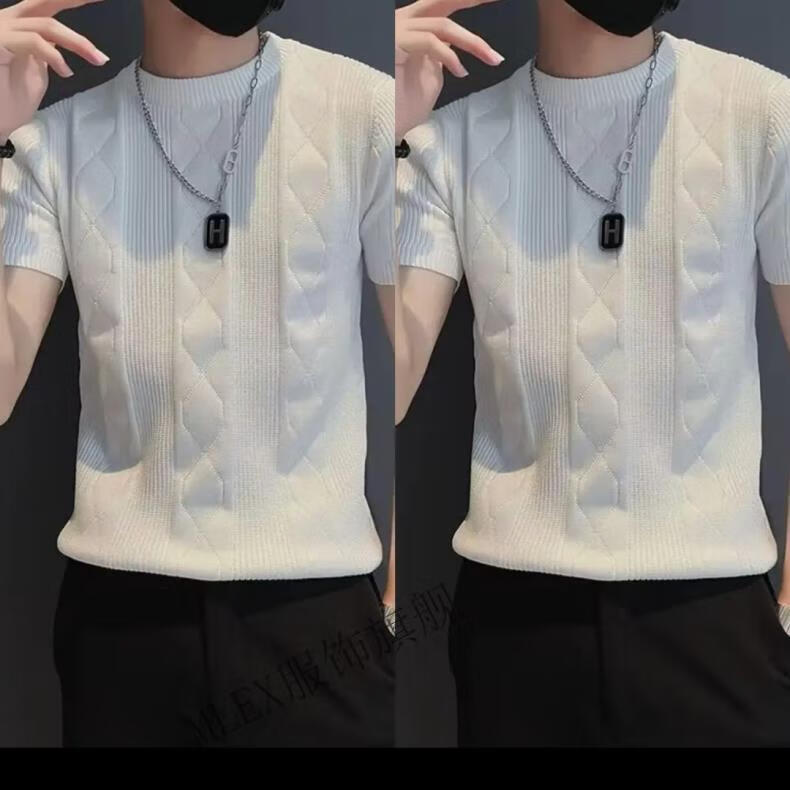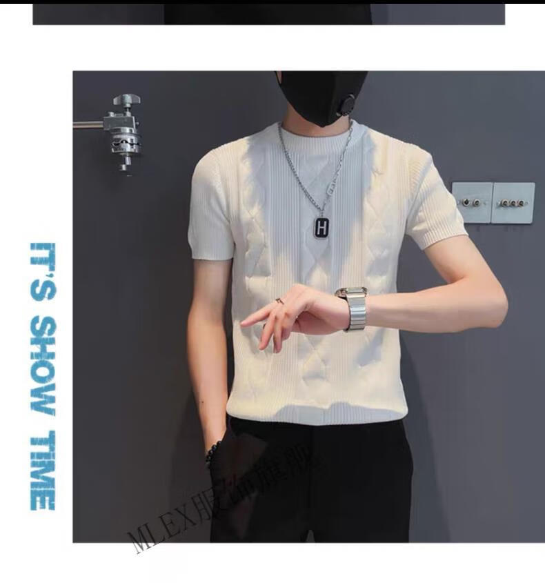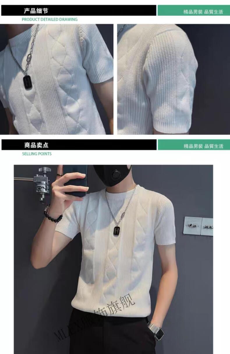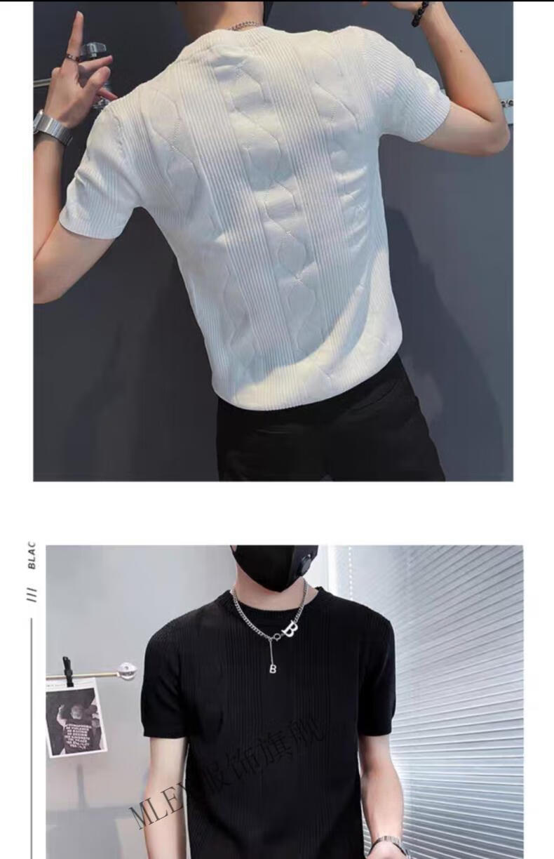 MLEX cool clothing individual store short-sleeved sweater men's slim knitted half-sleeved bottoming shirt round neck. T-shirt white (round neck) M (90-105Jin Jin equals 0.5 kg)