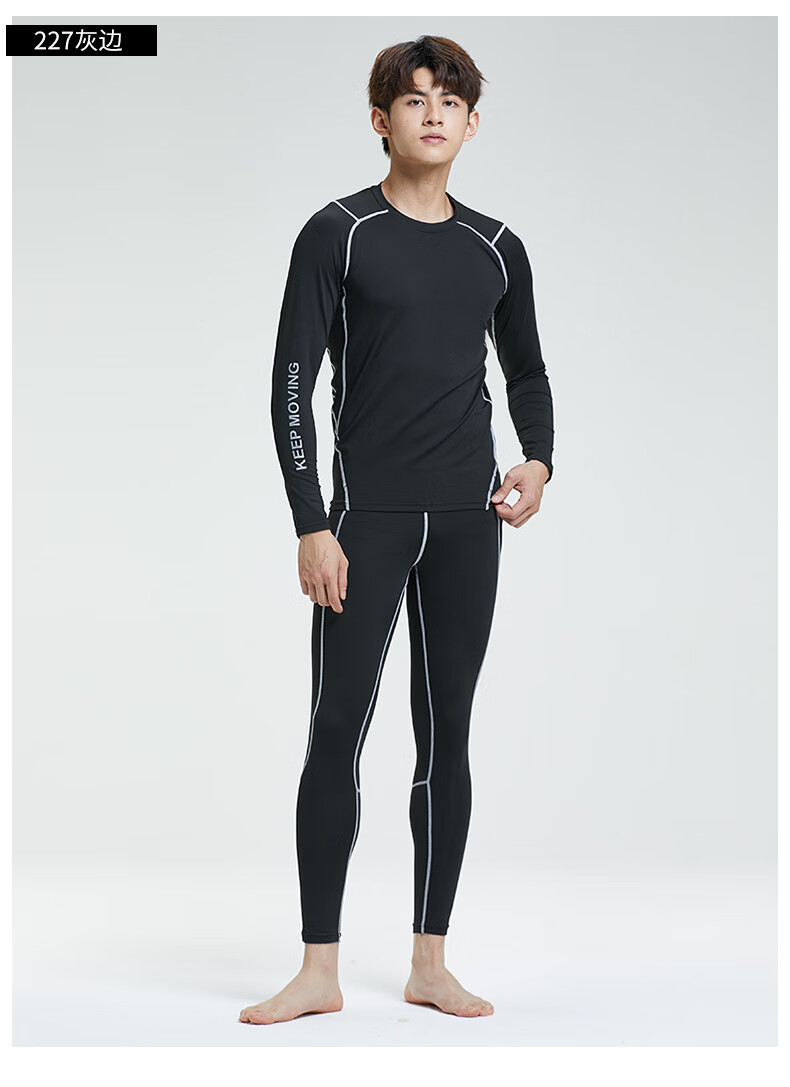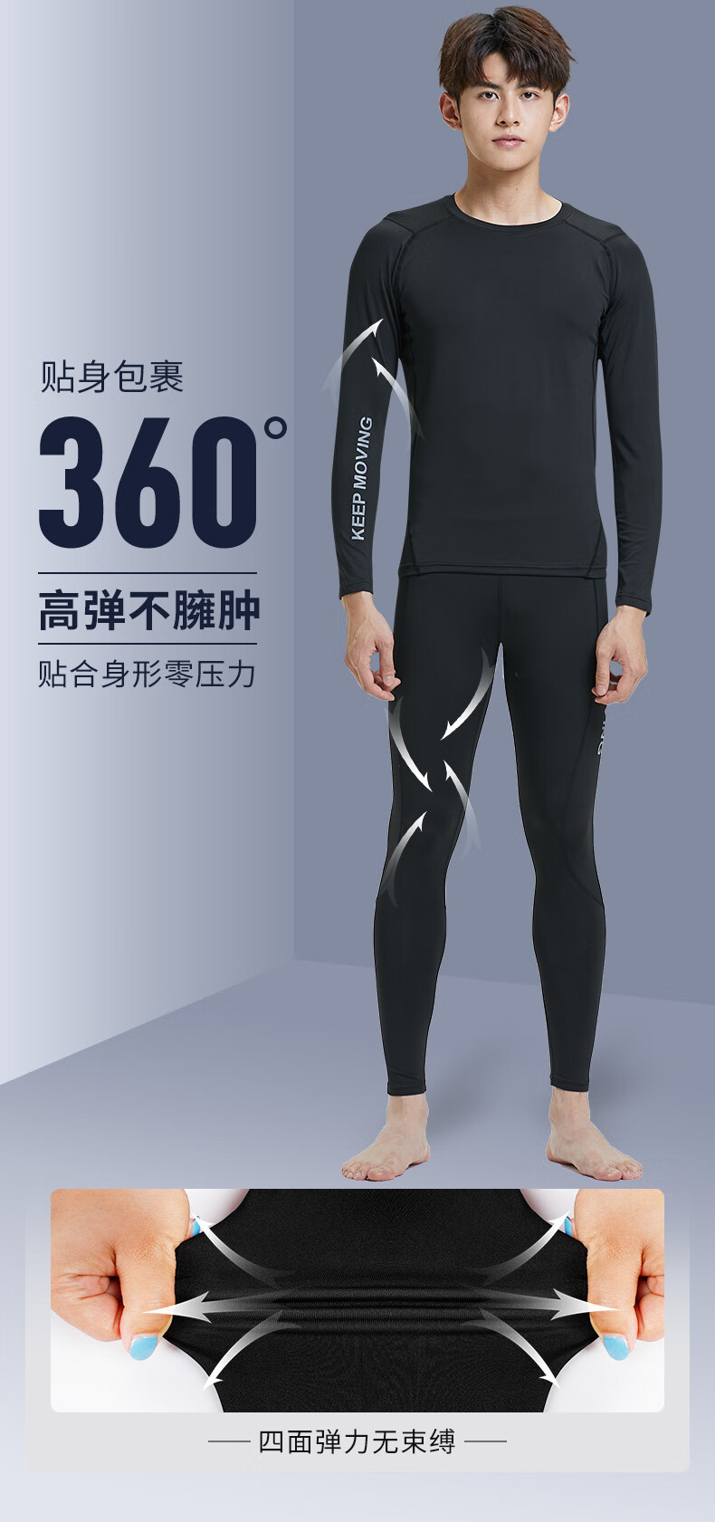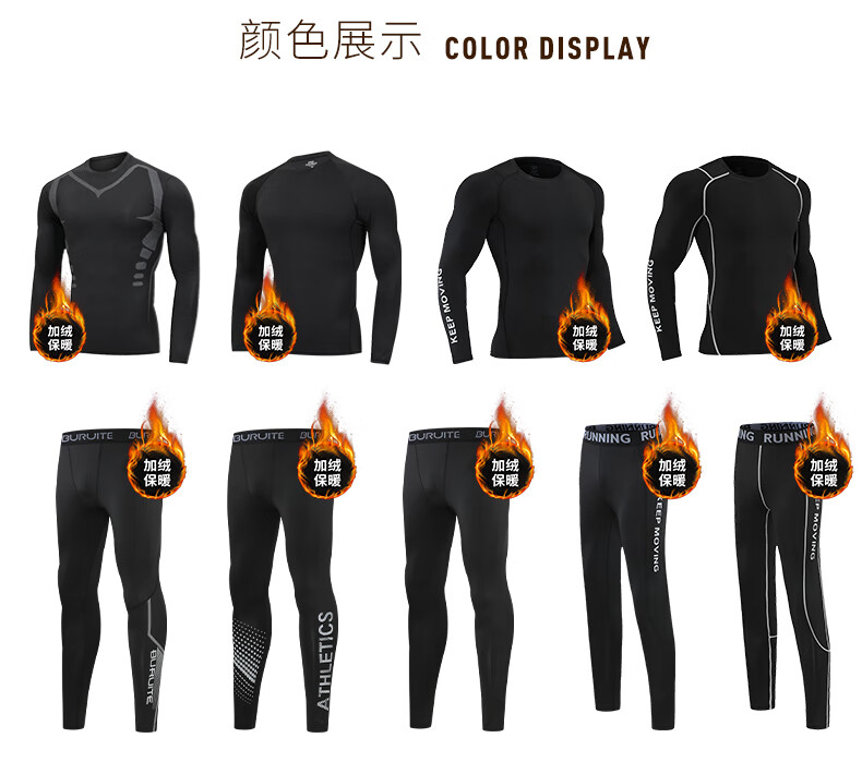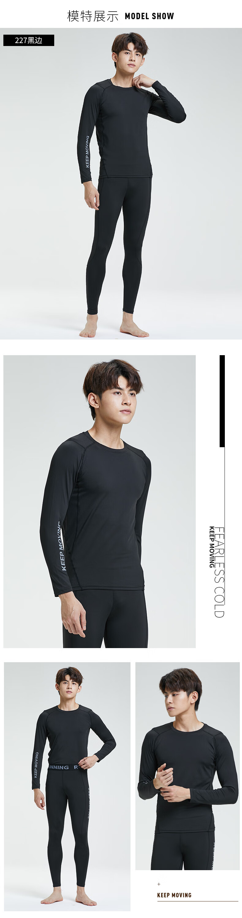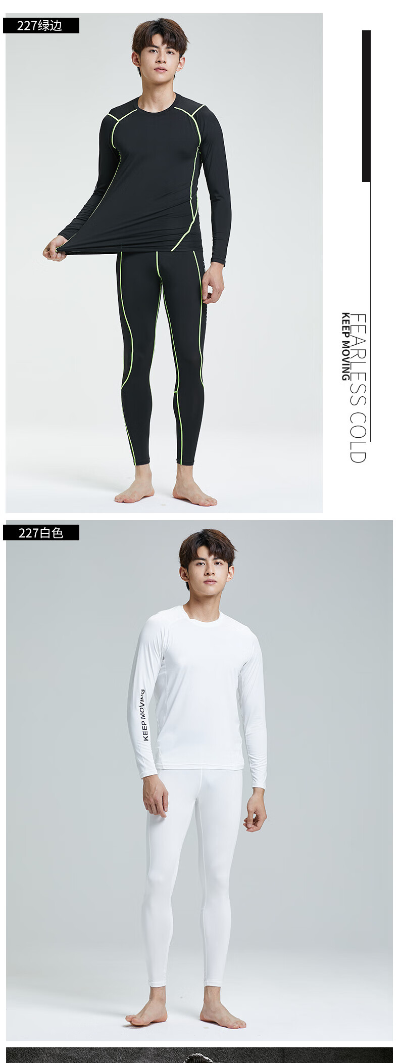 BURUITE thermal underwear for men, plus velvet to keep warm, autumn and winter tight-fitting bottoming, quick-drying sports suit, bottoming shirt, autumn clothes and long trousers, black and green suit XL, recommended weight 65-75kg