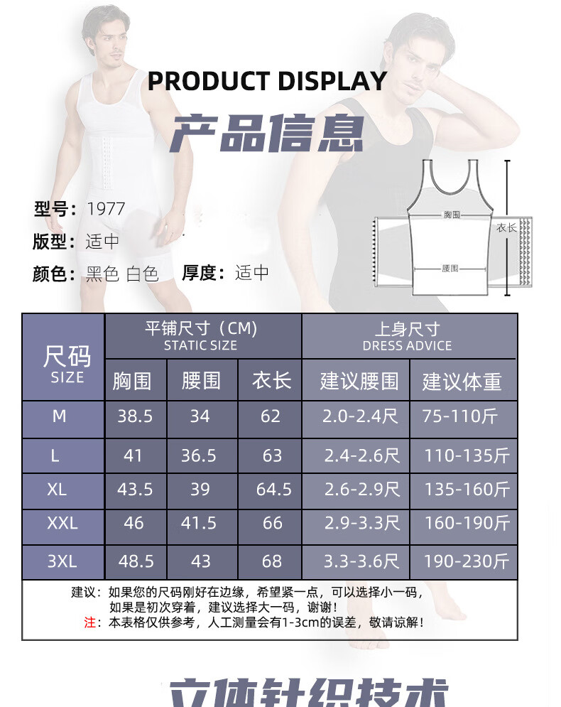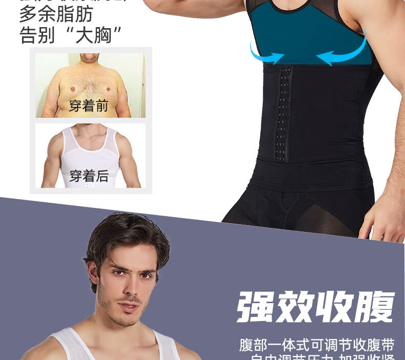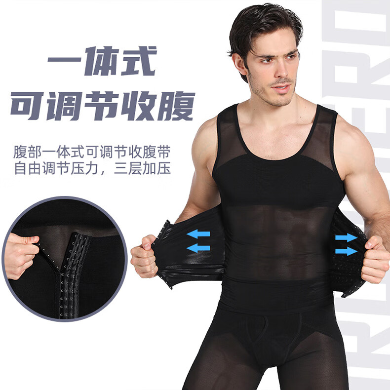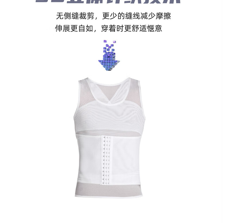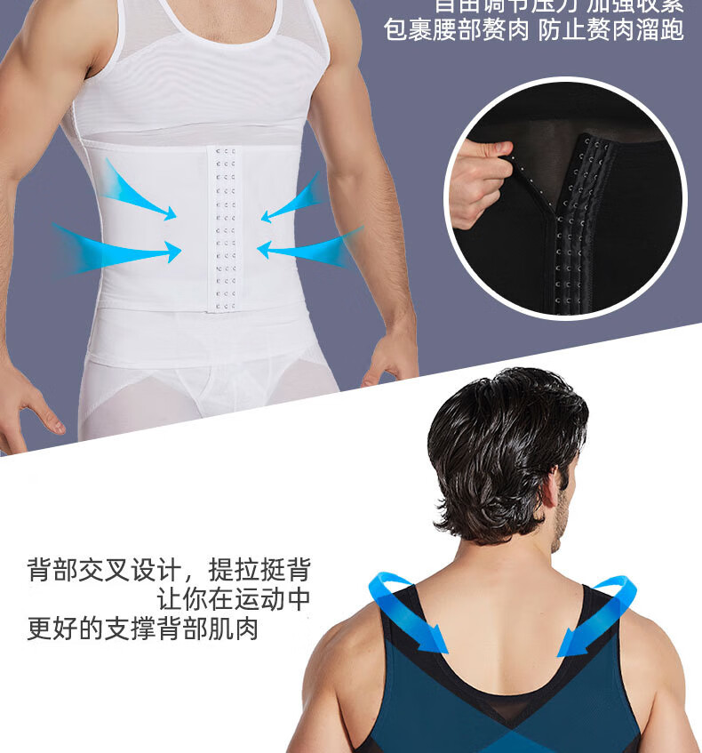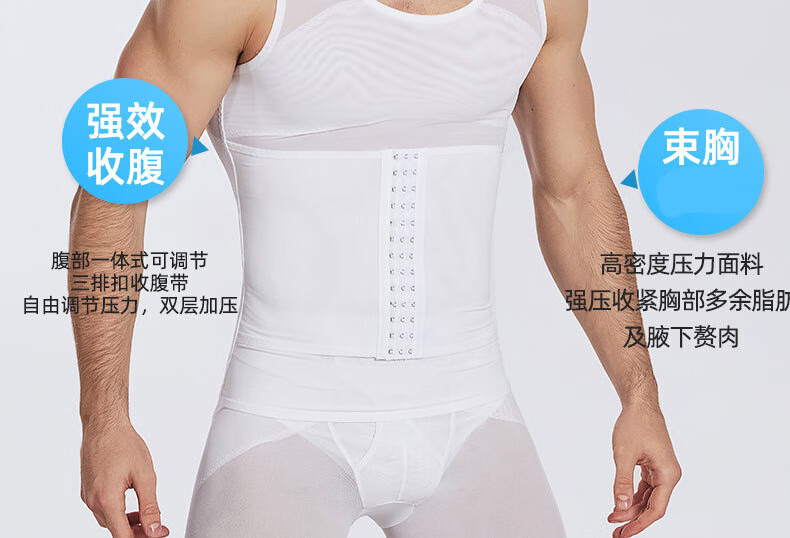 Qingbilin shapewear men's thin tops body shaping vest corset waist tight invisible elastic underwear breathable tummy control white XL 135-160