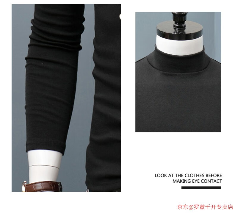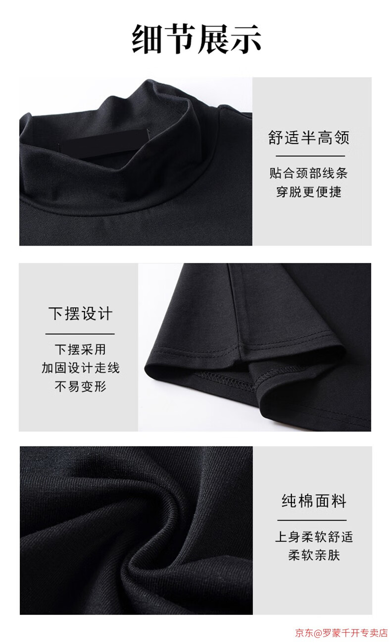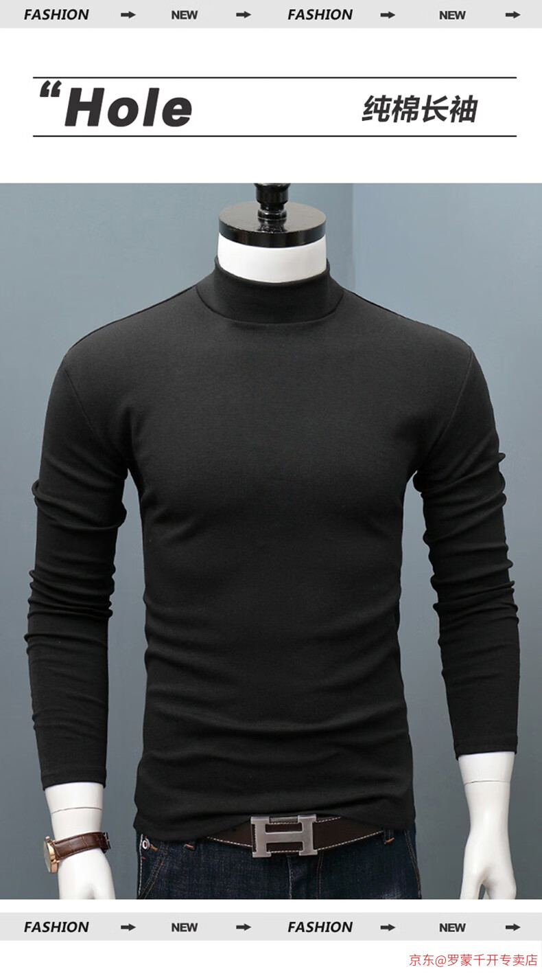 ROMON Cotton Spring Autumn and Winter Half Turtle Collar Bottoming Shirt Men's Slim Fit Lined Long Sleeve T-shirt Men's Autumn Clothes Outerwear Black XL Recommended 140Jin Jin equals about 0.5kg