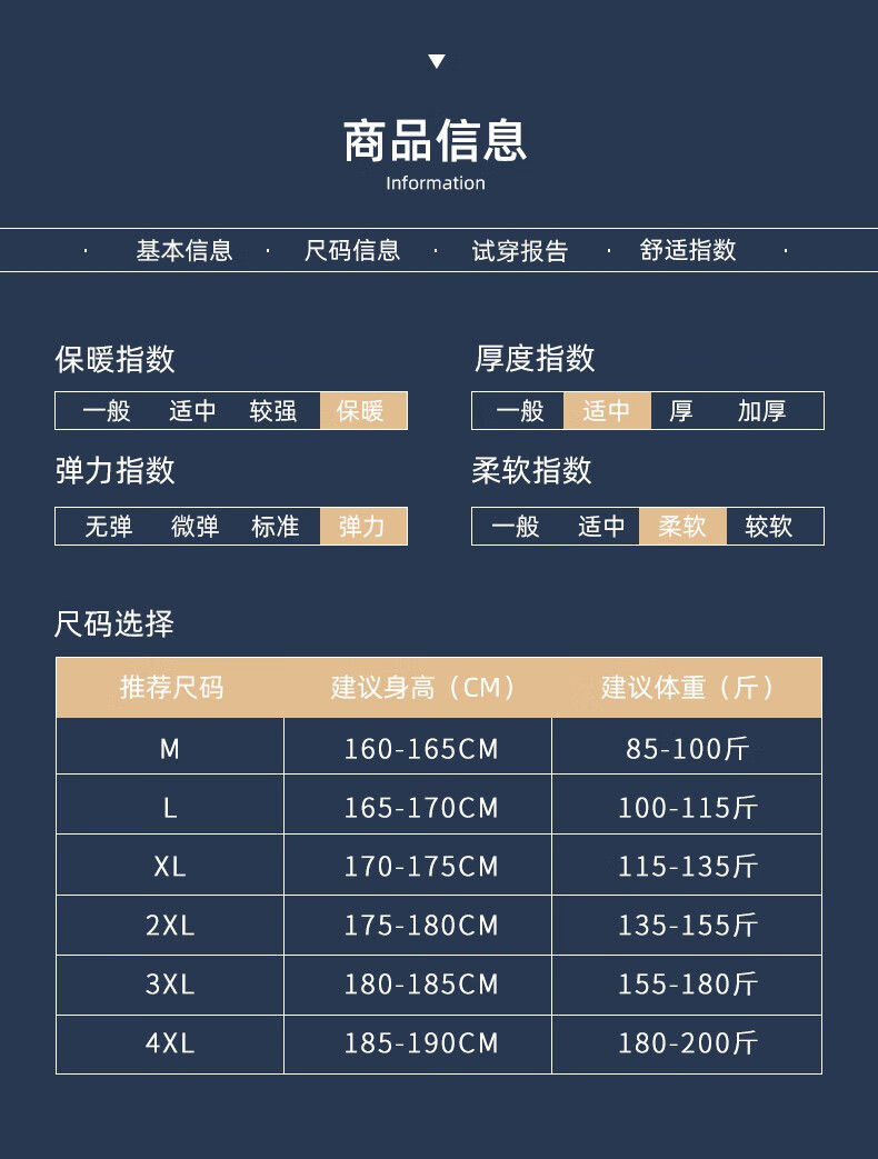 China (cm) 165 / 88-90 170 / 96-98 175 / 108-110 180 / 118-122 185 / 126-130