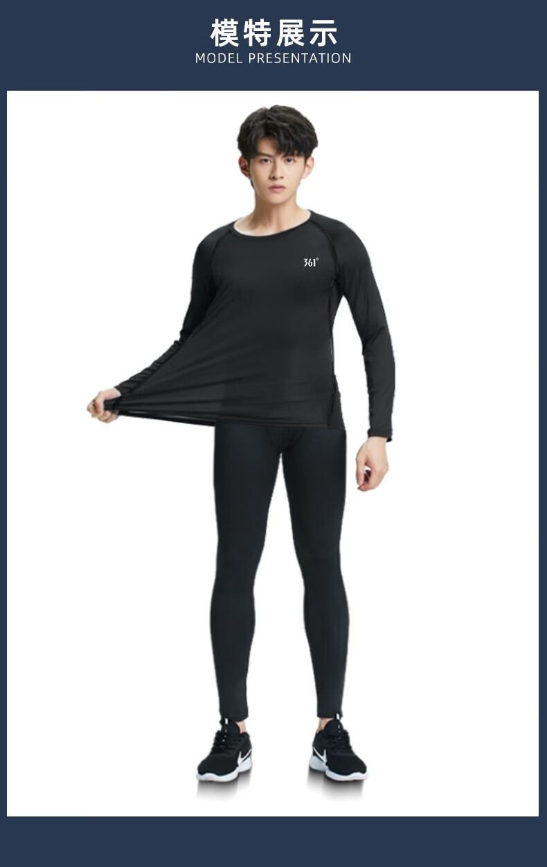 361 Thermal Underwear Men's Tights High-elastic Sports Quick-Drying Clothes Basement Plus Velvet Thickened Winter Clothes Men's Suit Round Neck Thermal Suit XL