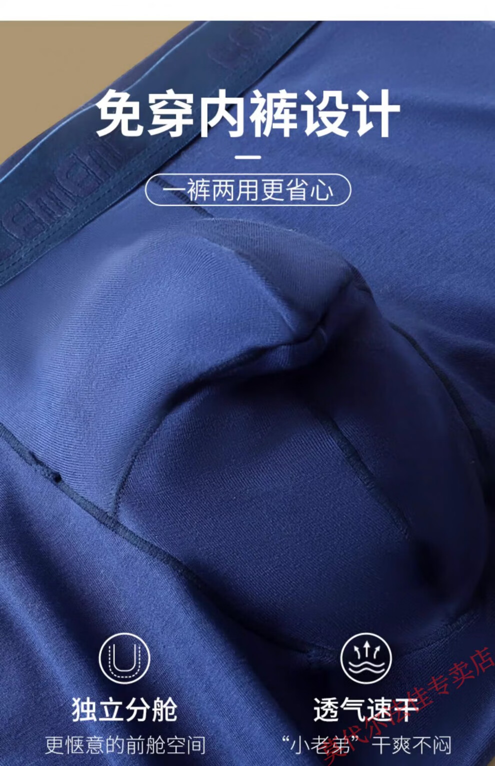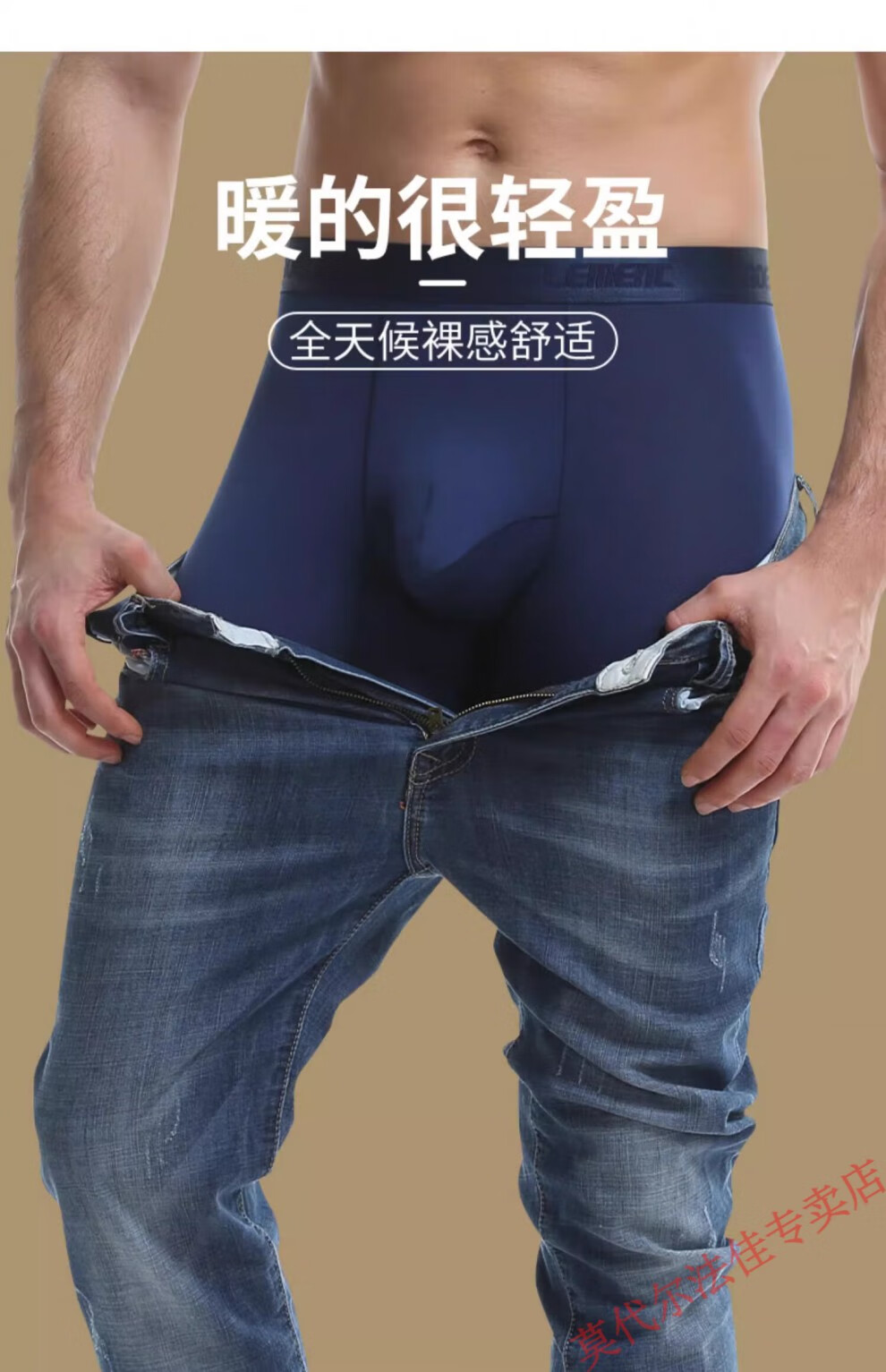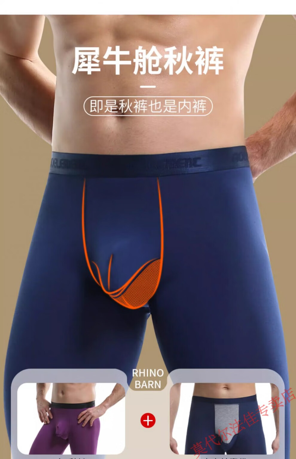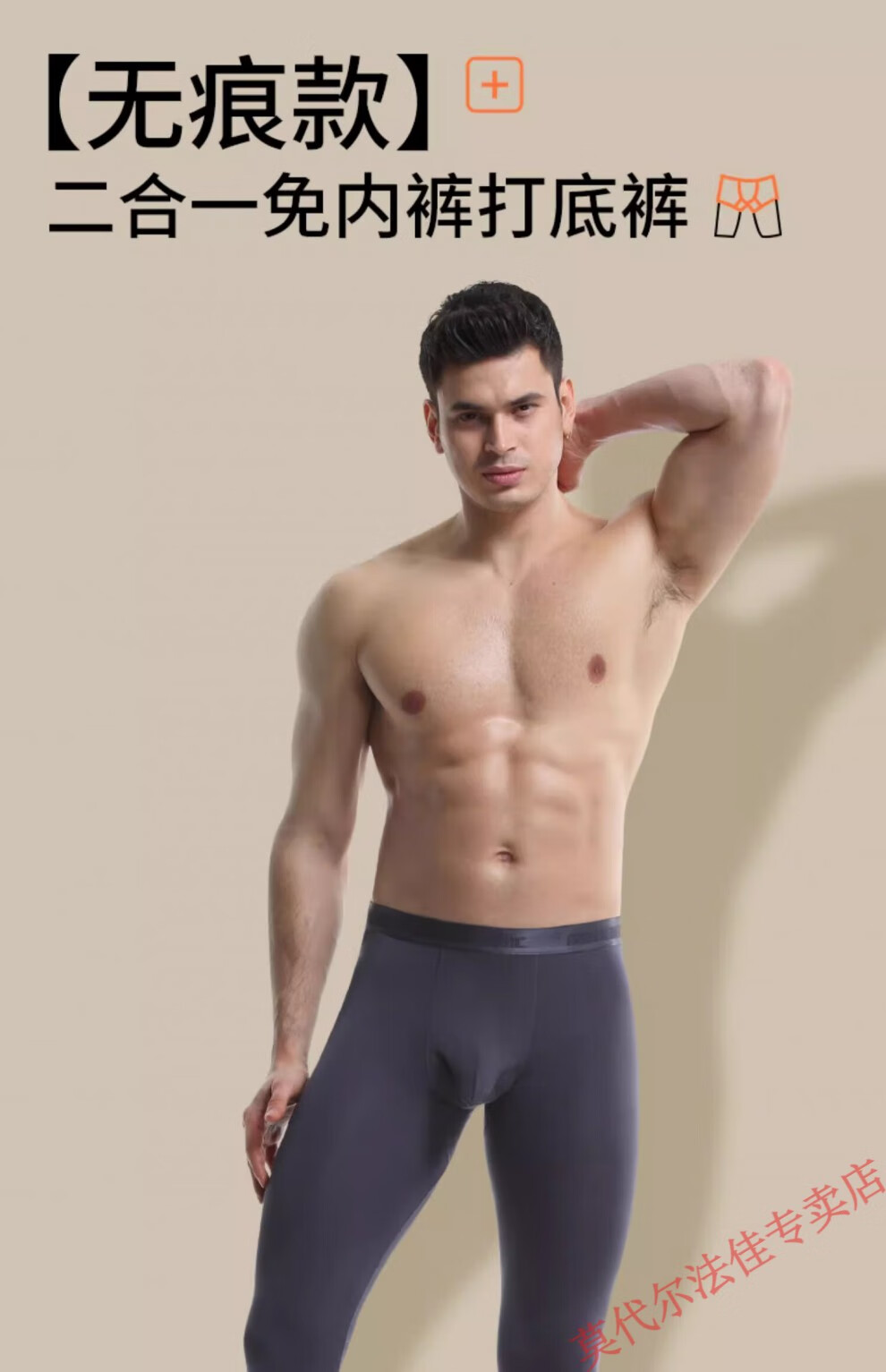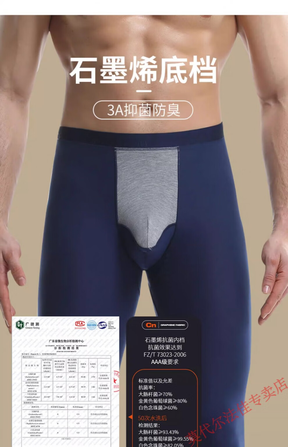 Modal men's underwear-free long johns graphene antibacterial seamless two-in-one slim warm and cold-proof bottoming pants winter underwear-free sanitary pants black XL 130-150Jin Jin equals 0.5 kg