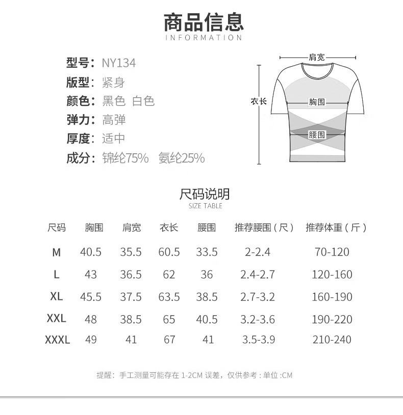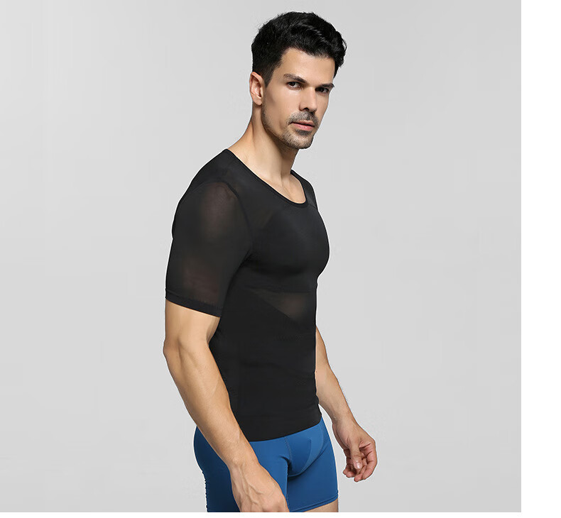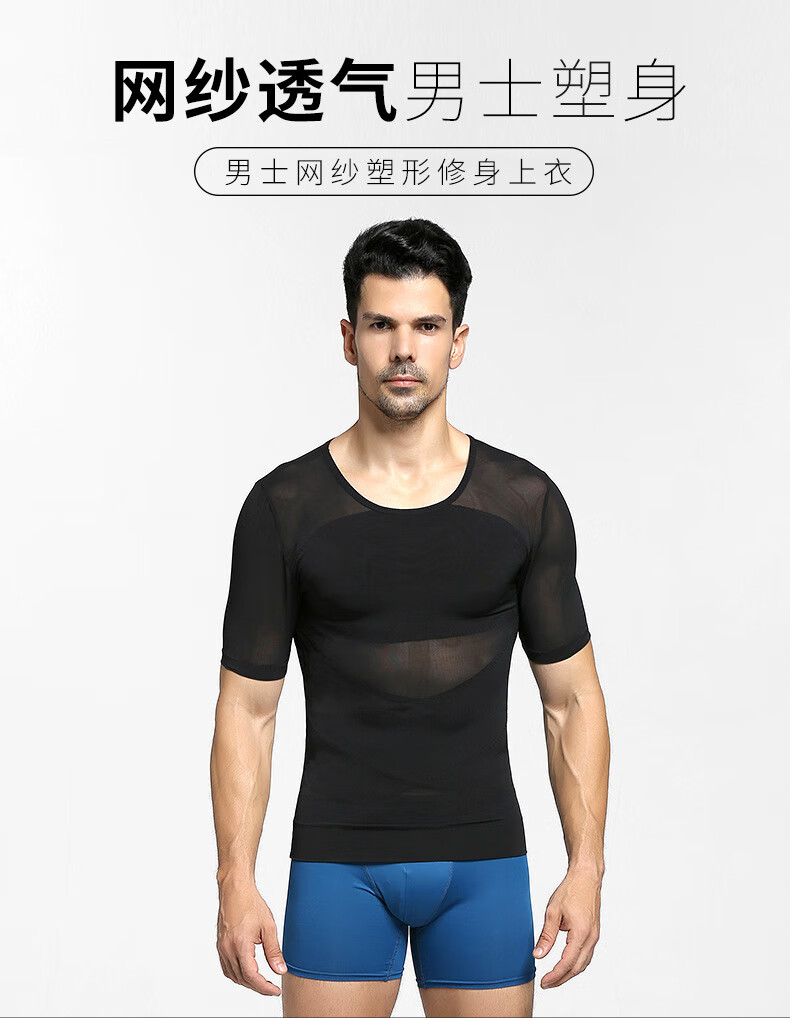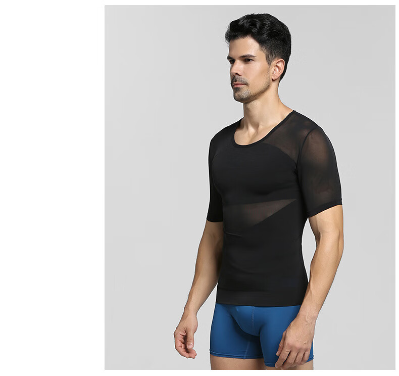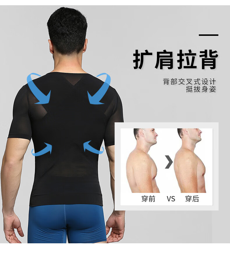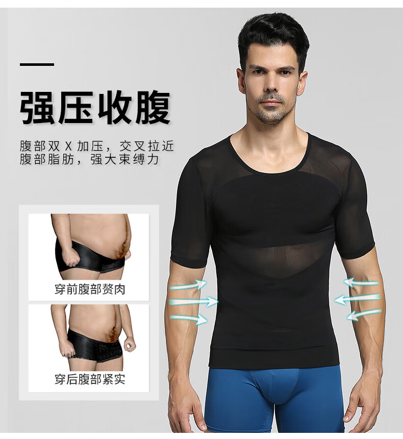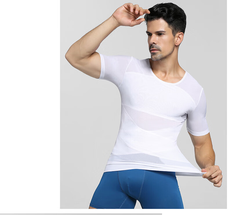 Dofinison Men's Belly Shaping Short Sleeve Fitness Strong Elastic Waist Corset Slim Fit Breathable Slim Top White XL(160-190)