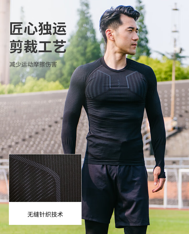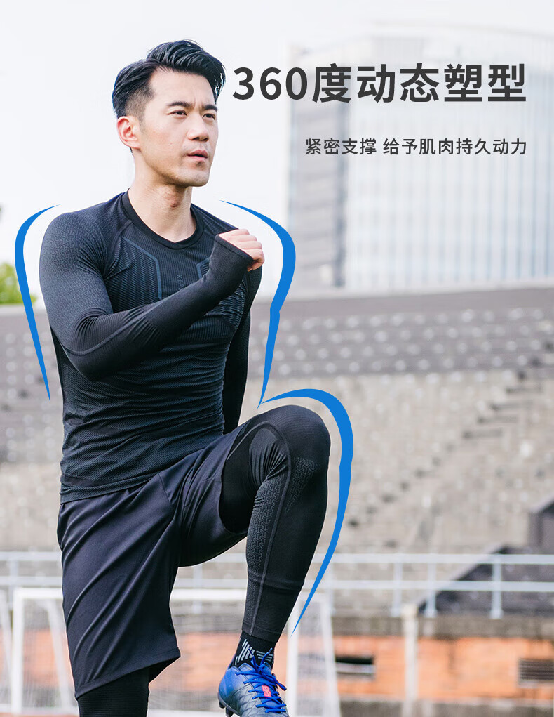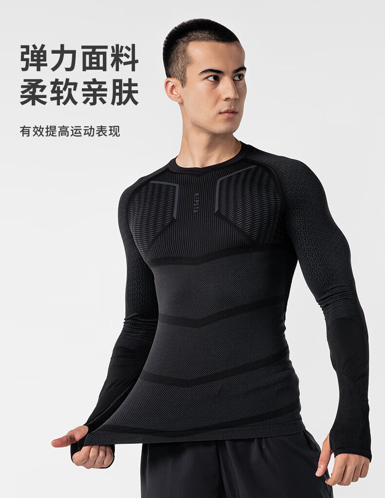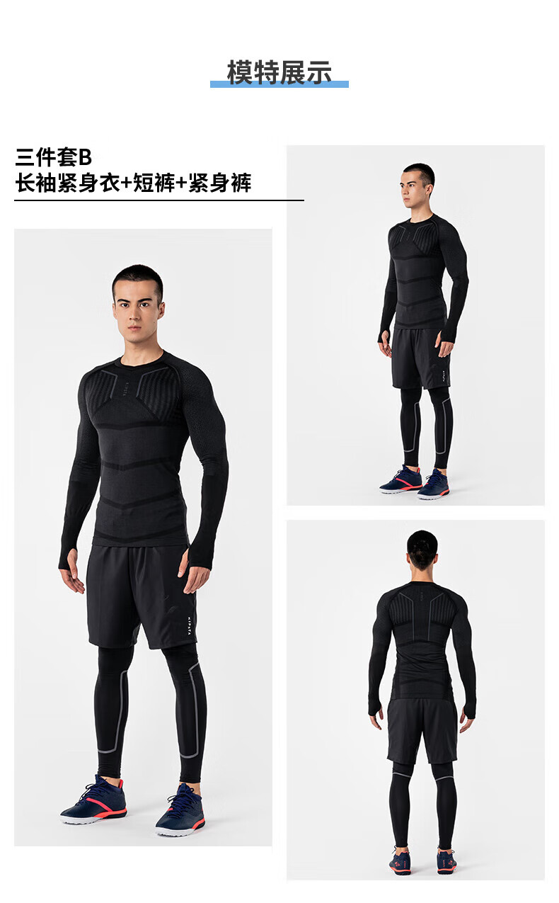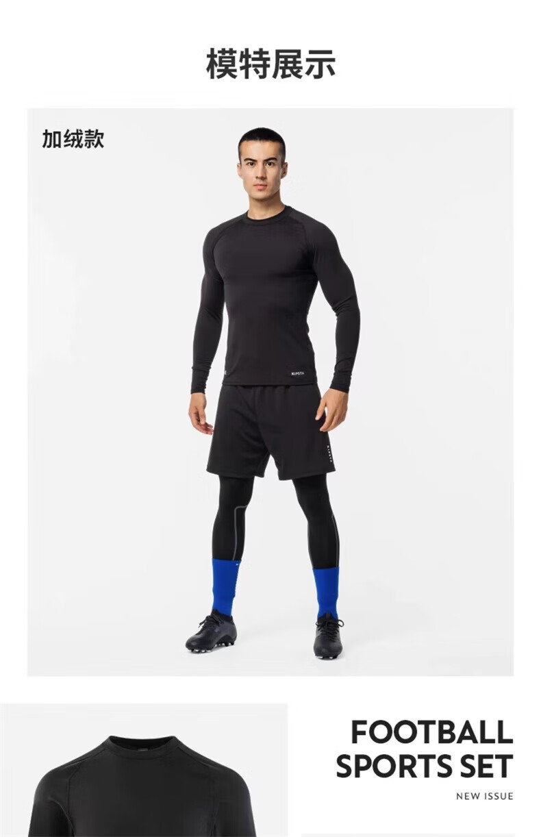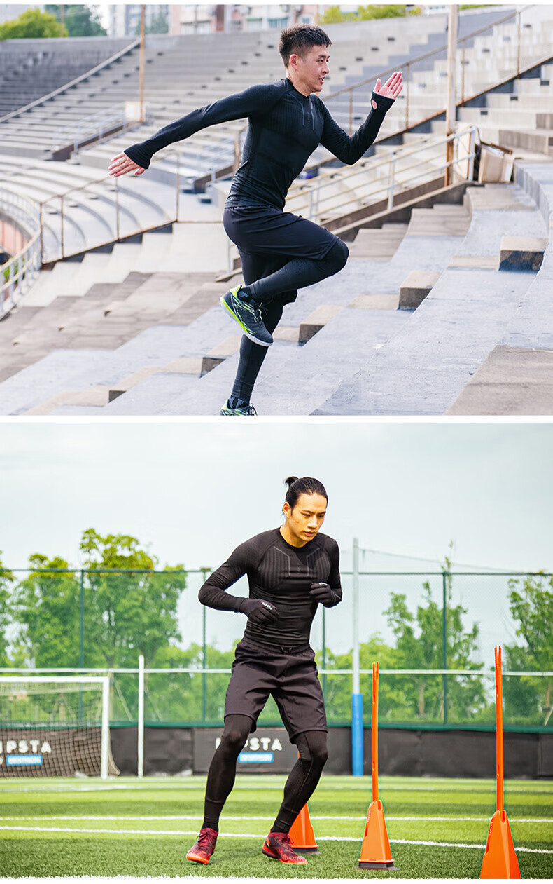 Decathlon (DECATHLON) tights quick-drying clothes football running basketball autumn warm training tights two-piece set A long sleeve (black) + tights XL