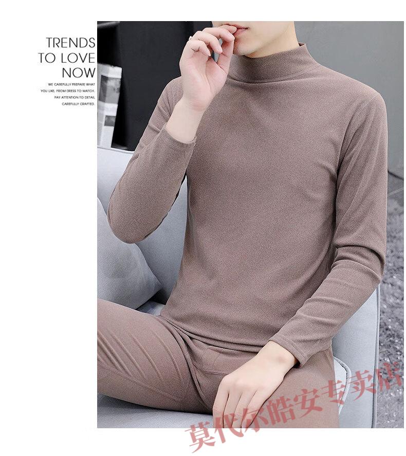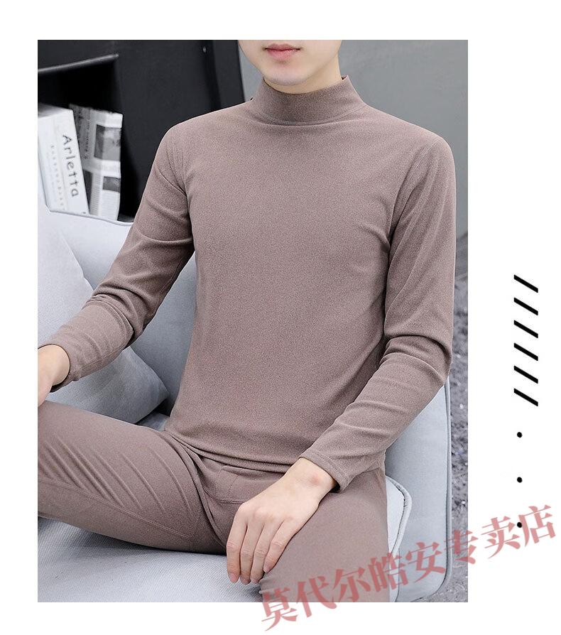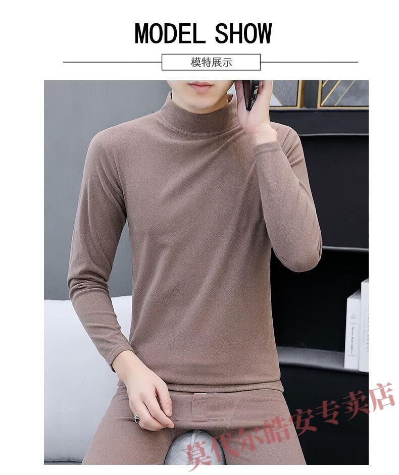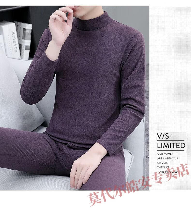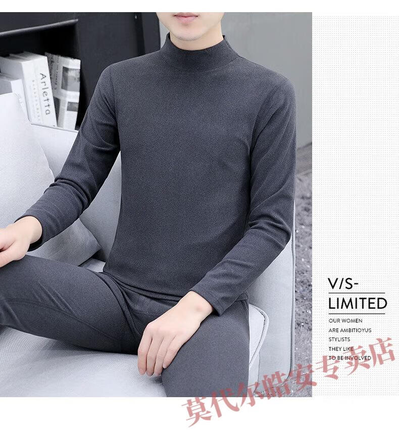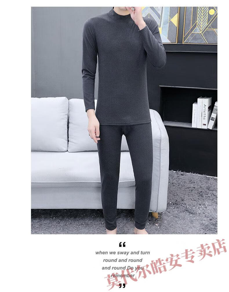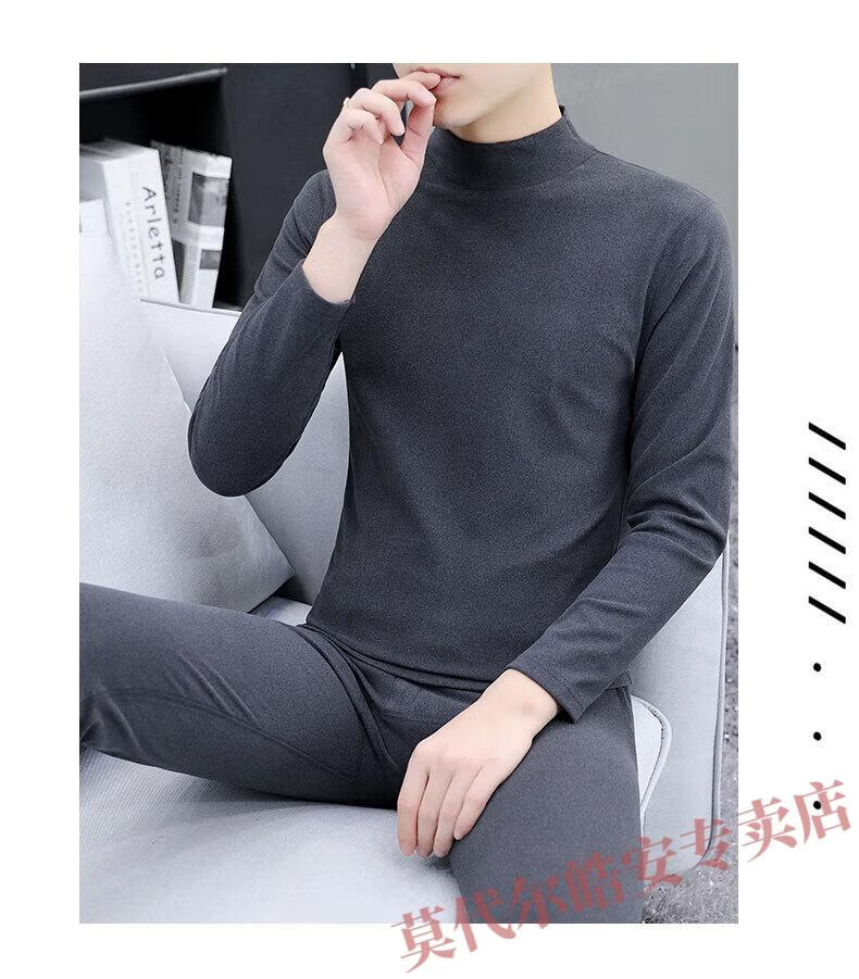 Modal velvet thermal underwear men's half turtleneck autumn and winter thickened slim fit seamless heating bottoming autumn clothes and long pants suit 603 turtleneck dark gray suit 3XL 135-160Jin Jin is equal to 0.5 kg