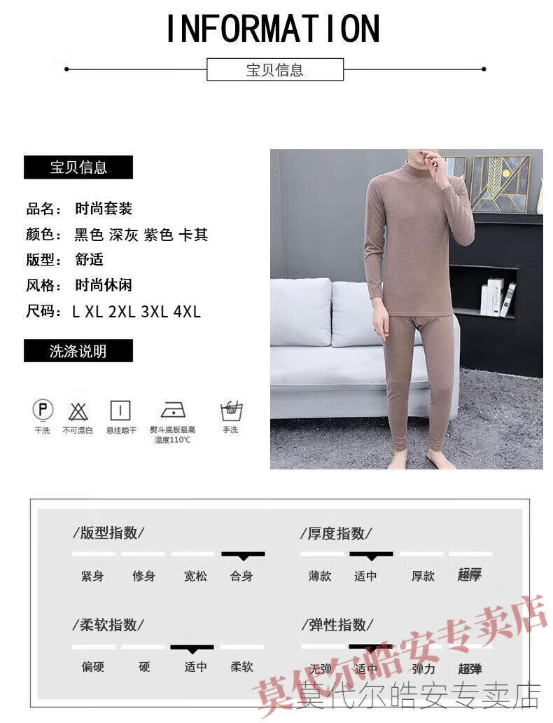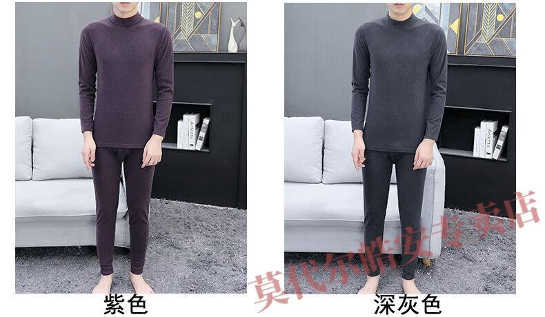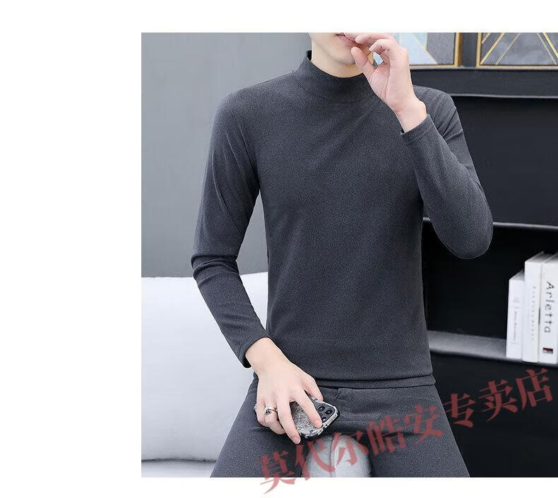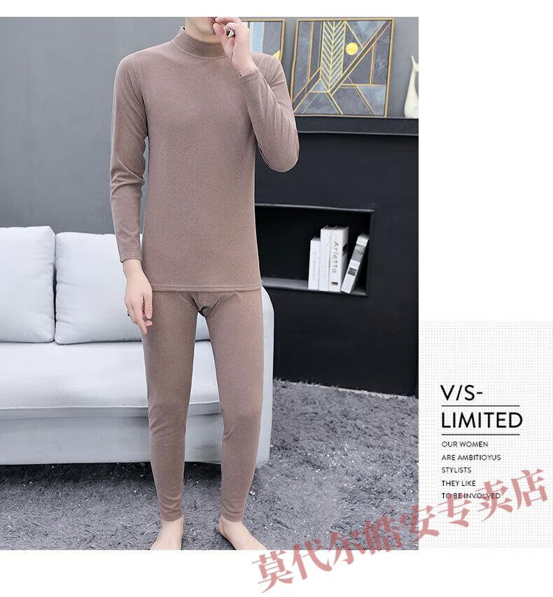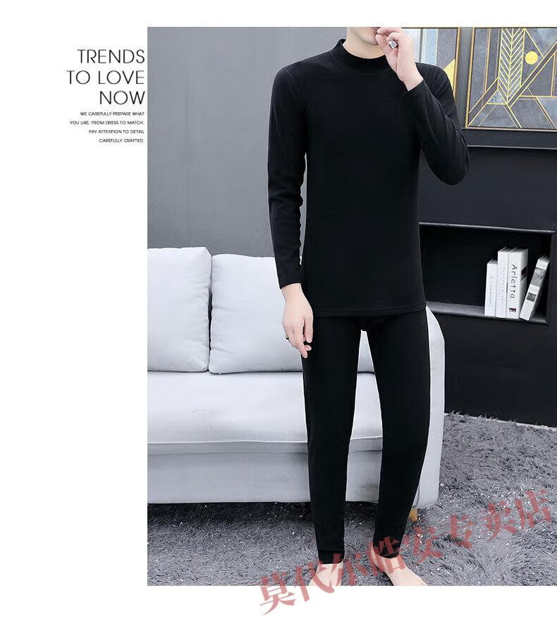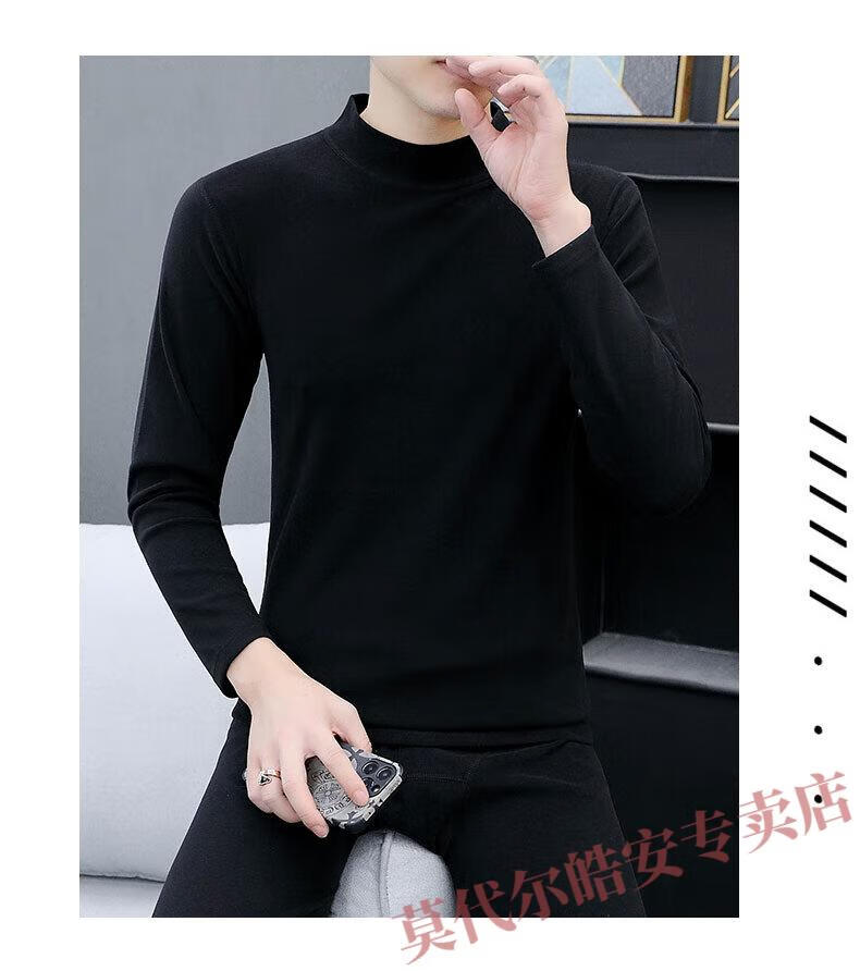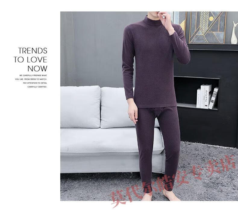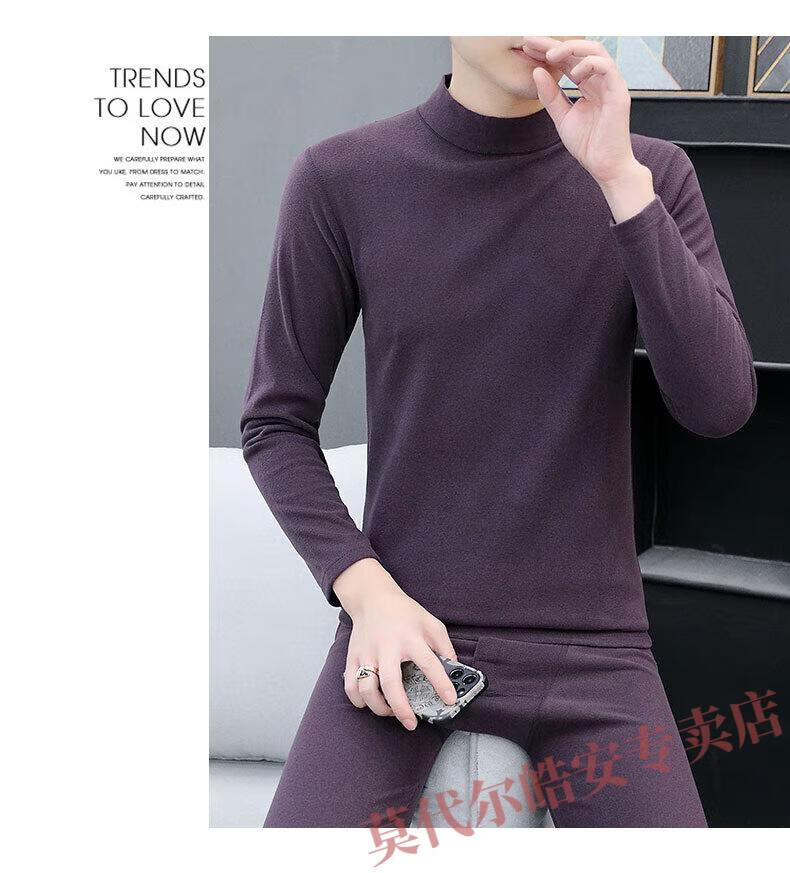 Modal velvet thermal underwear men's half turtleneck autumn and winter thickened slim fit seamless heating bottoming autumn clothes and long pants suit 603 turtleneck dark gray suit 3XL 135-160Jin Jin is equal to 0.5 kg
