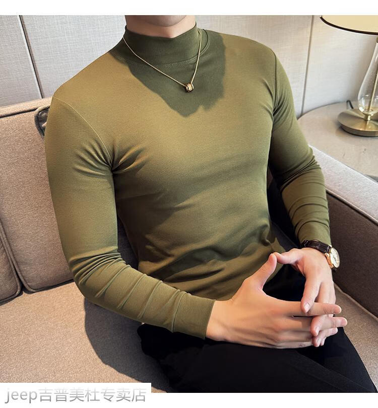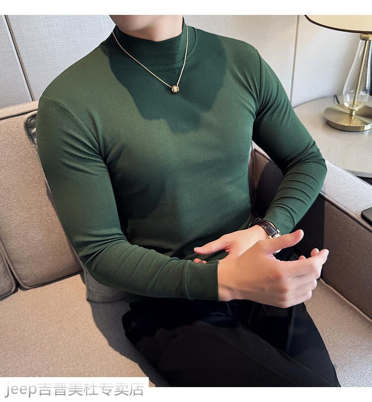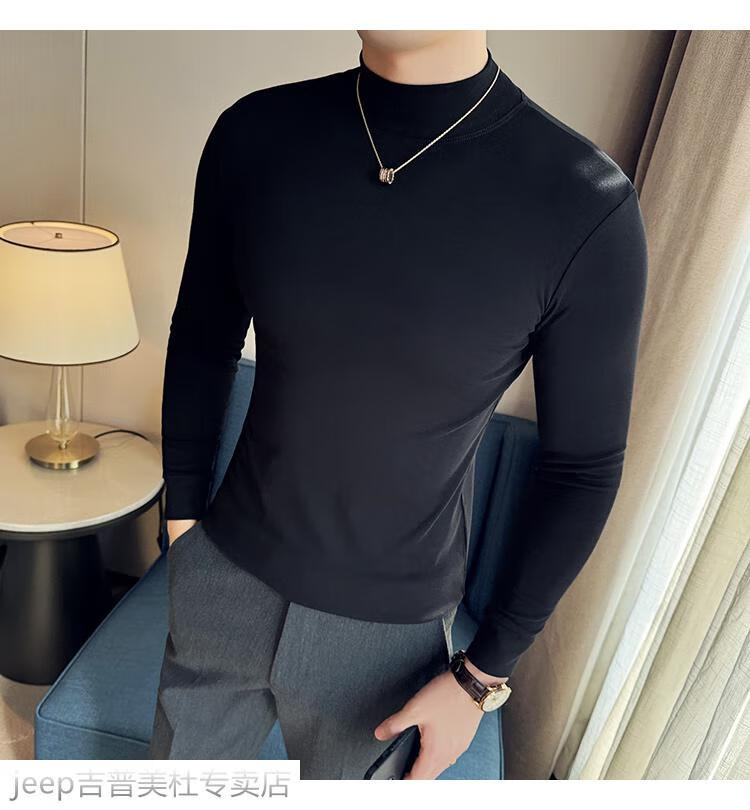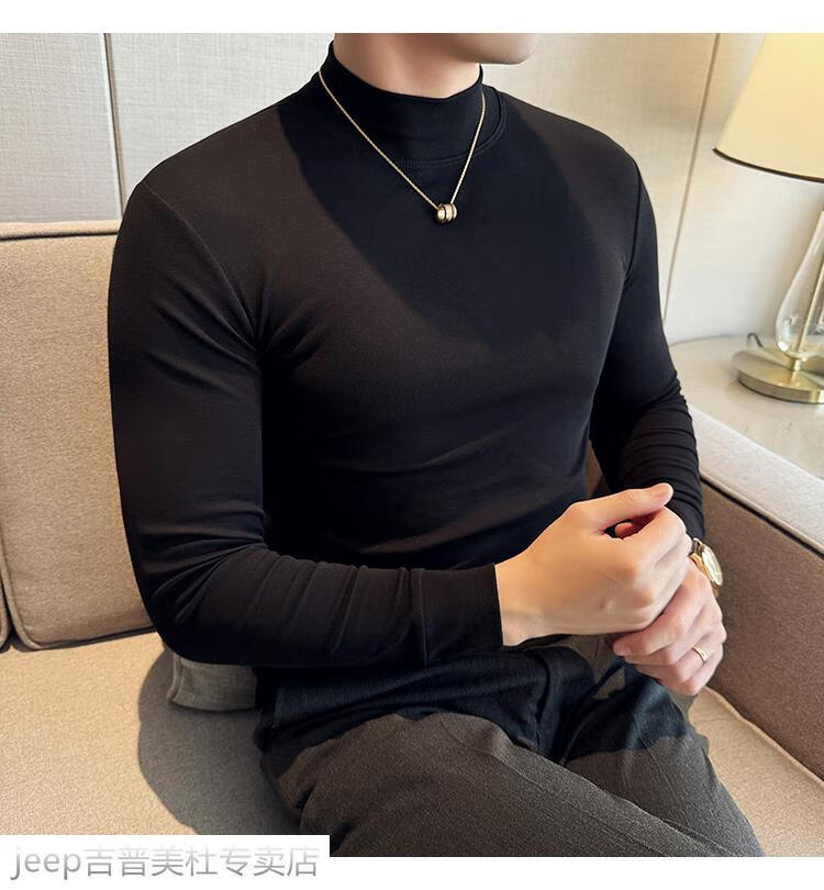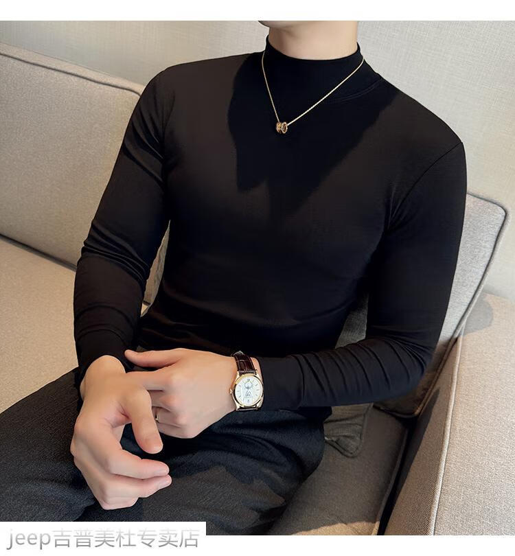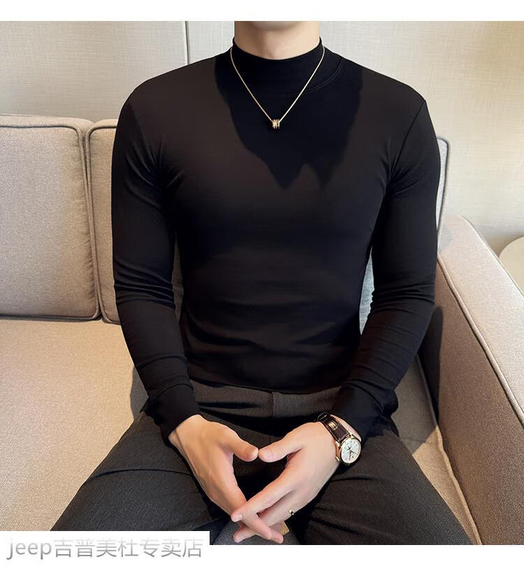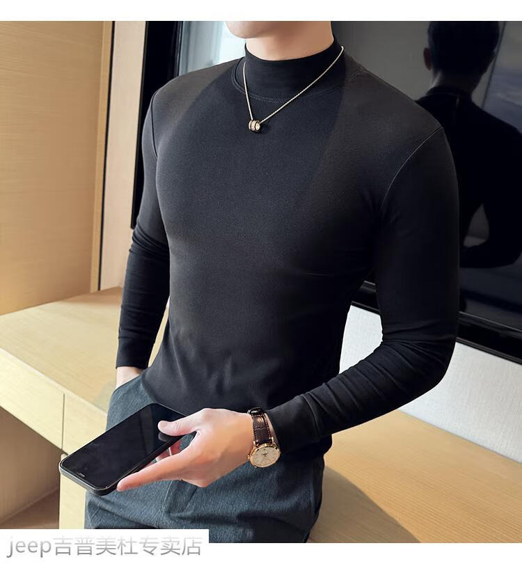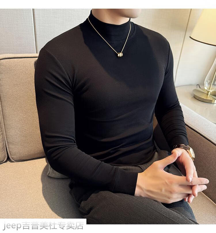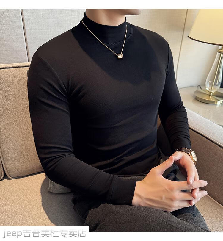 JEEP SPIRIT Jeep half-high collar long-sleeved bottoming shirt men's spring and autumn tight-fitting versatile solid color stretch Korean style slim-fitting mid-collar top black XL (130-145Jin Jin equals 0.5kg)