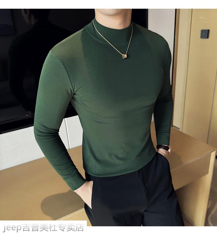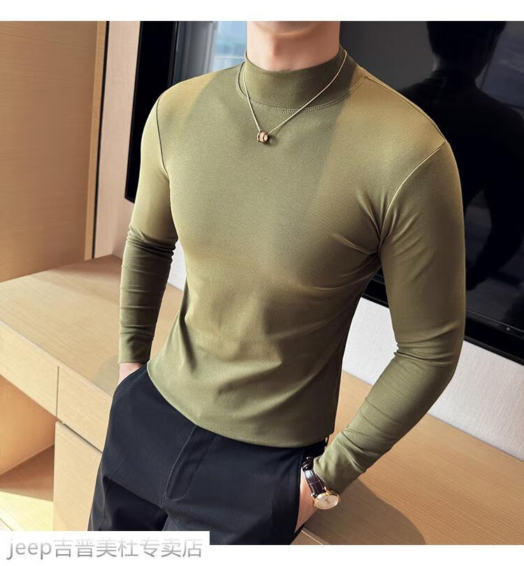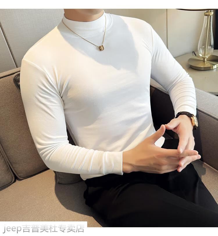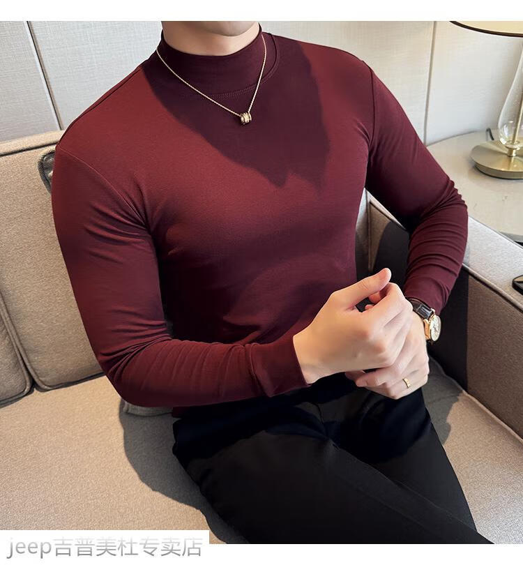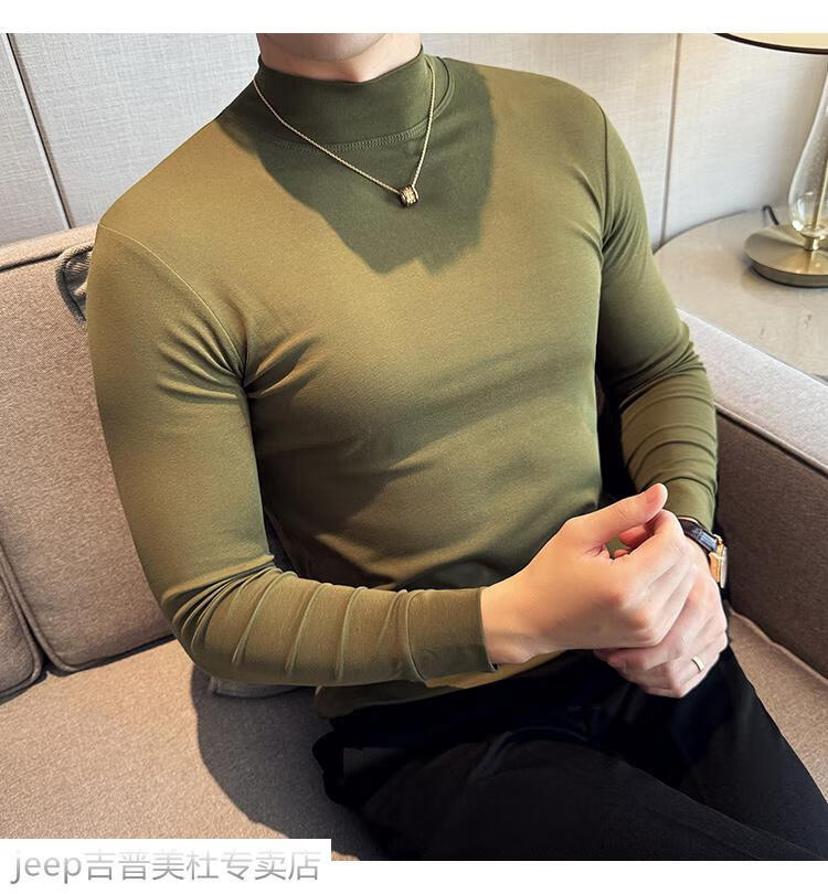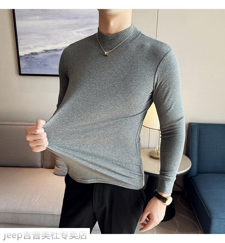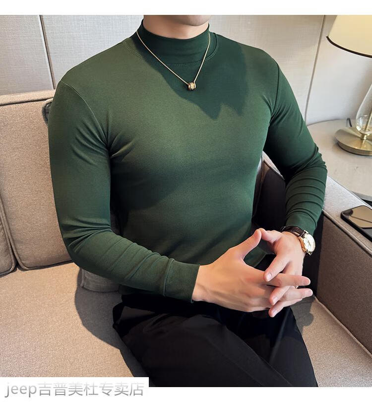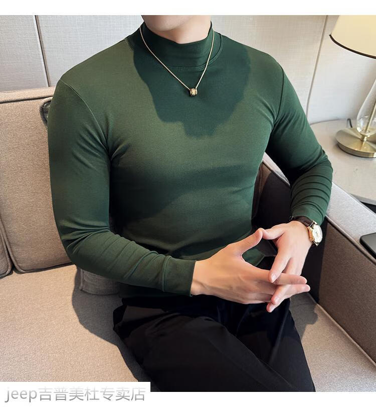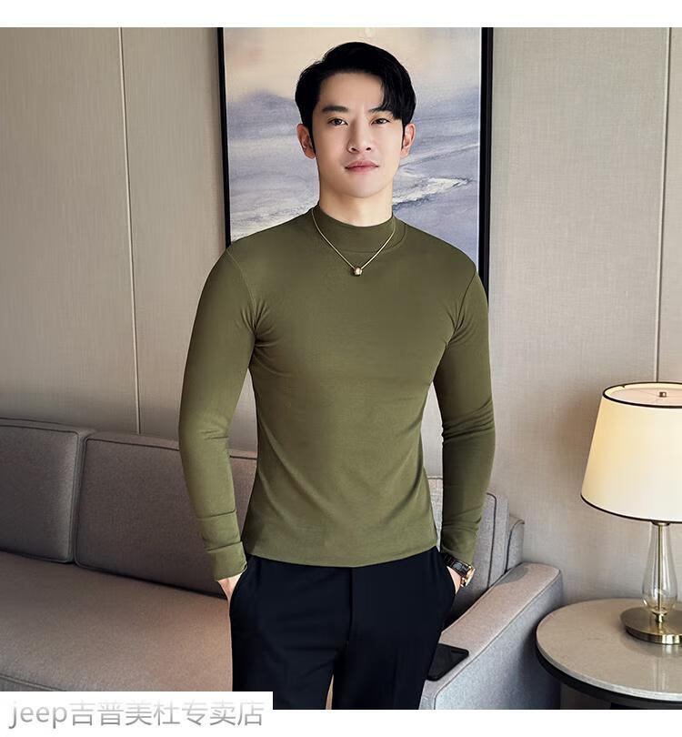 JEEP SPIRIT Jeep half-high collar long-sleeved bottoming shirt men's spring and autumn tight-fitting versatile solid color stretch Korean style slim-fitting mid-collar top black XL (130-145Jin Jin equals 0.5kg)