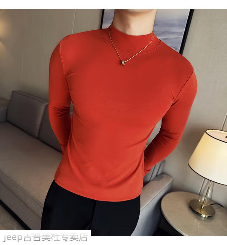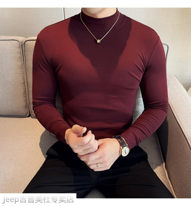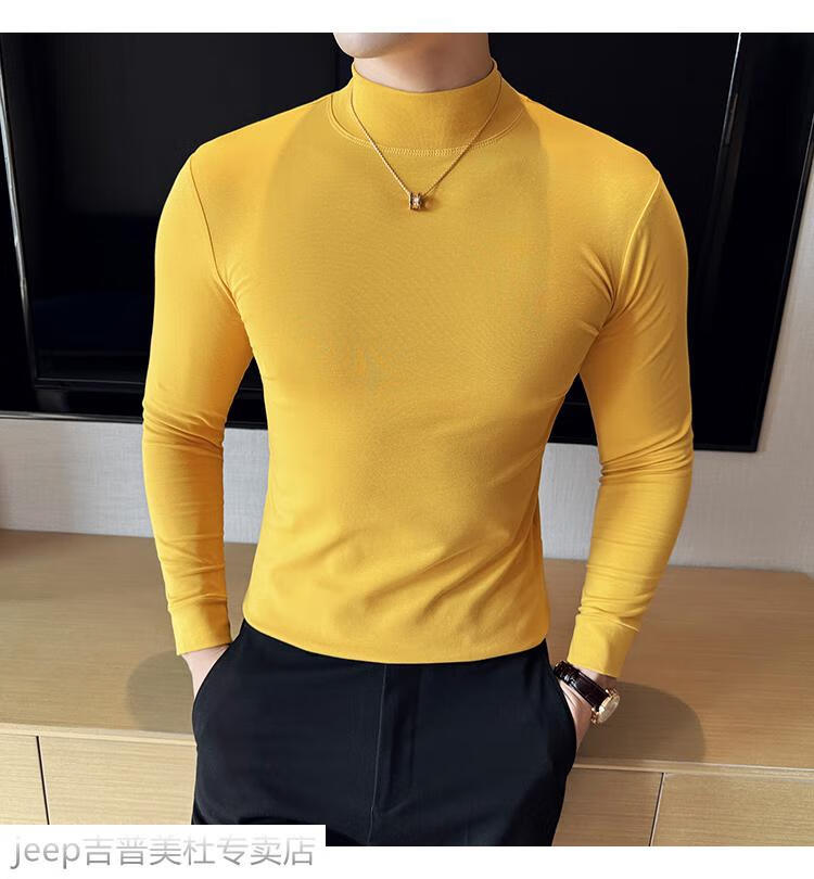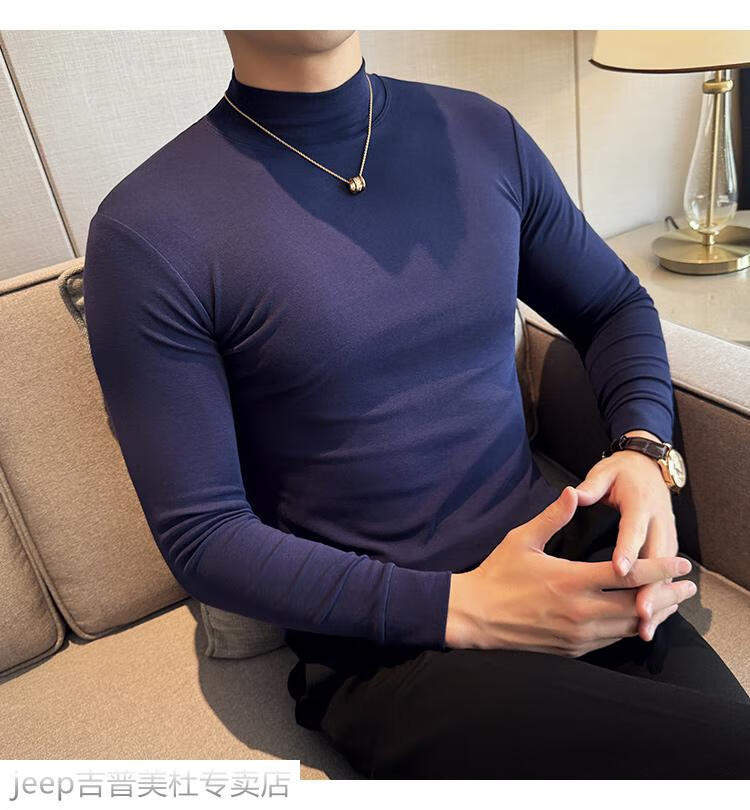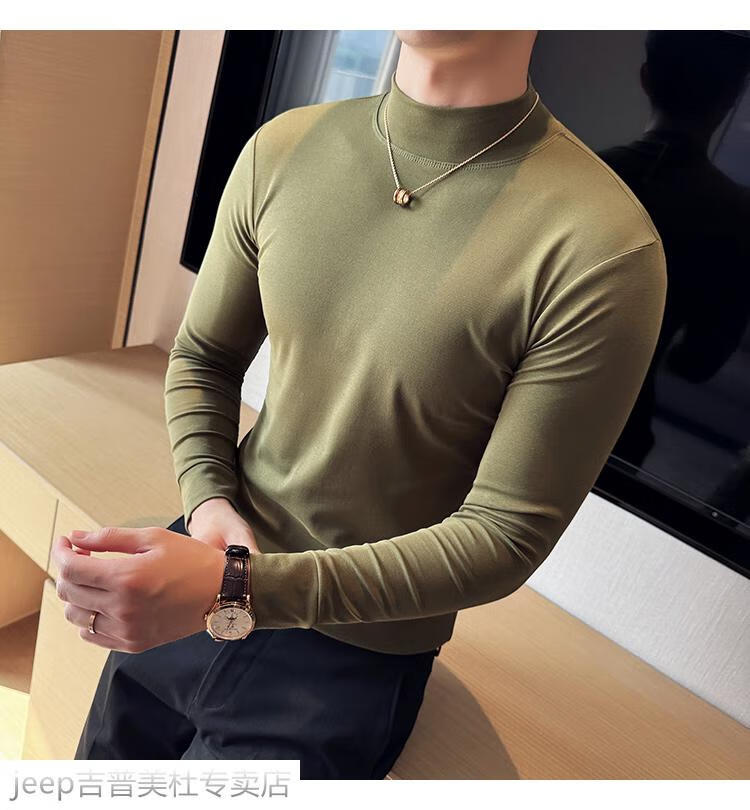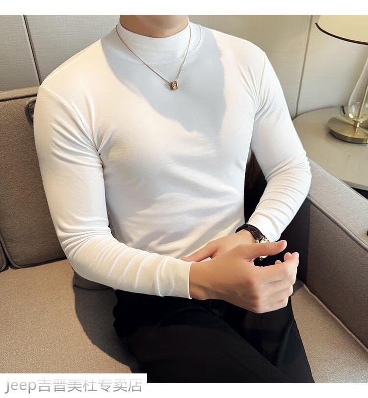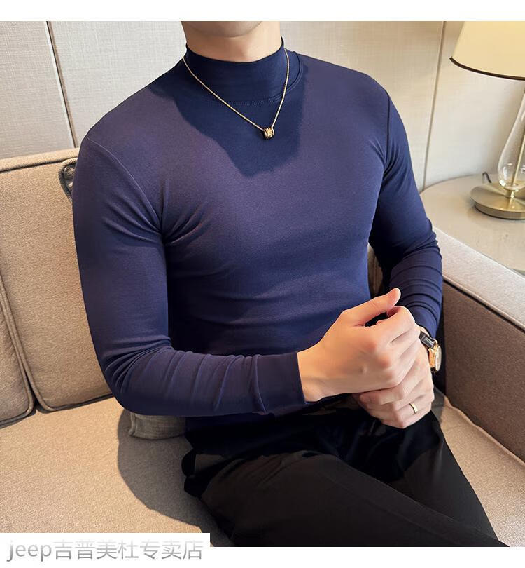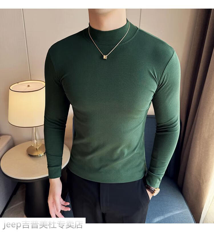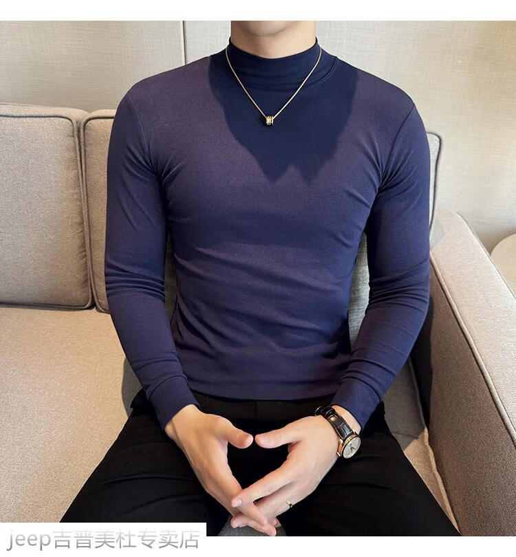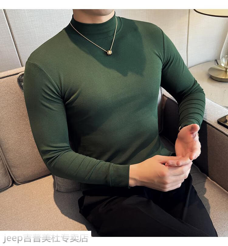 JEEP SPIRIT Jeep half-high collar long-sleeved bottoming shirt men's spring and autumn tight-fitting versatile solid color stretch Korean style slim-fitting mid-collar top black XL (130-145Jin Jin equals 0.5kg)