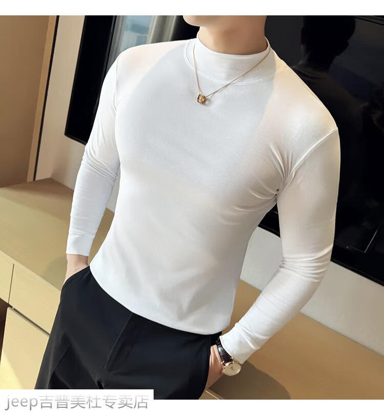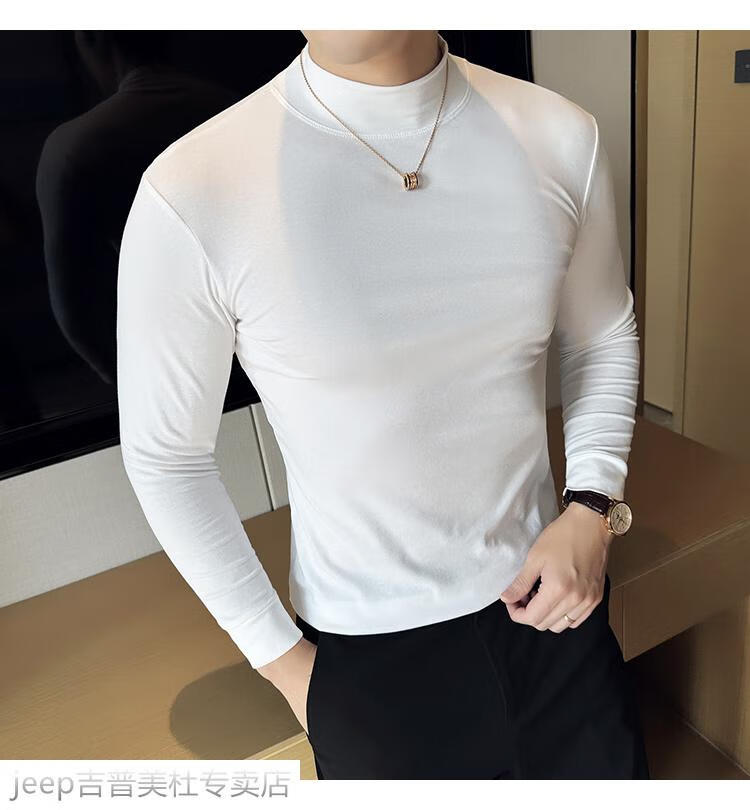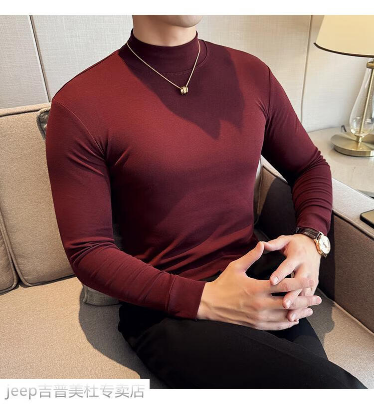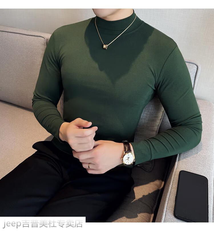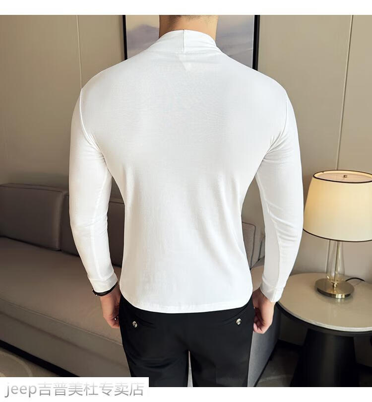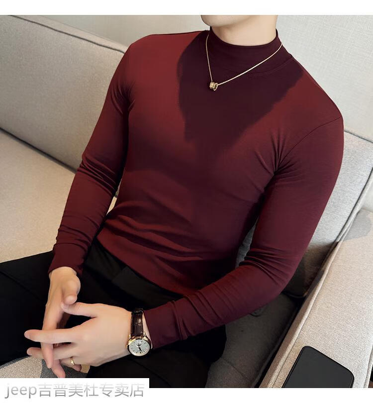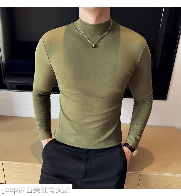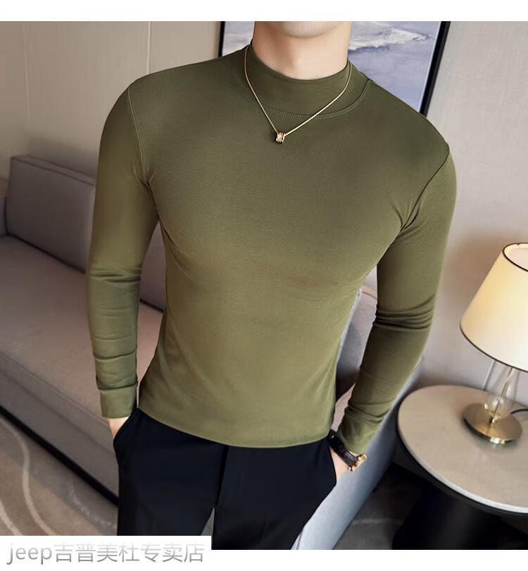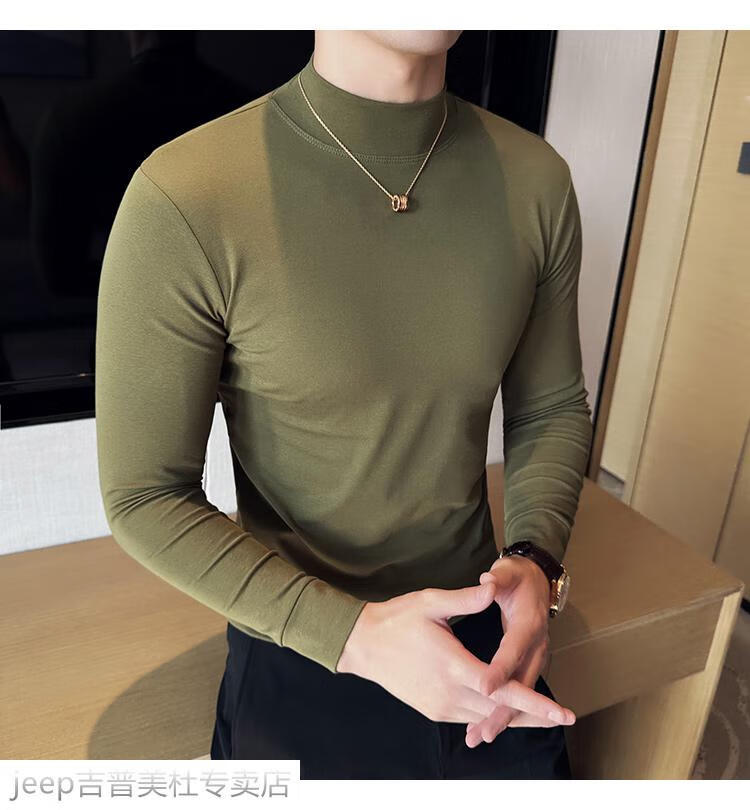 JEEP SPIRIT Jeep half-high collar long-sleeved bottoming shirt men's spring and autumn tight-fitting versatile solid color stretch Korean style slim-fitting mid-collar top black XL (130-145Jin Jin equals 0.5kg)