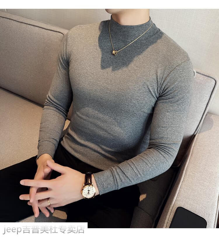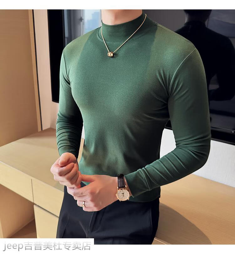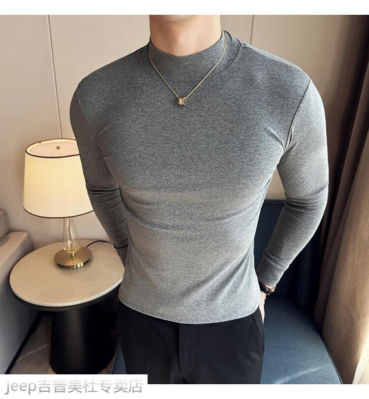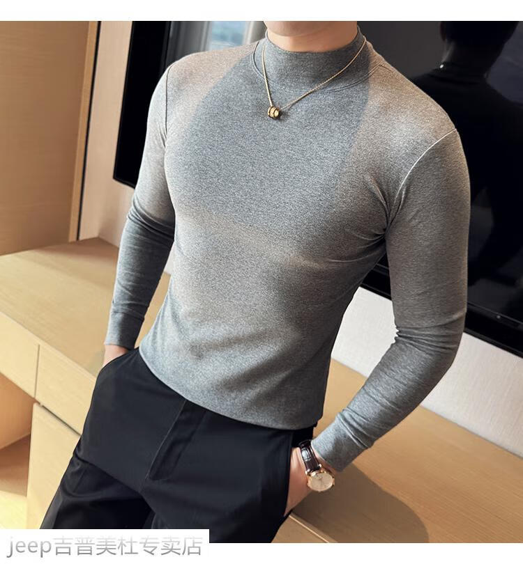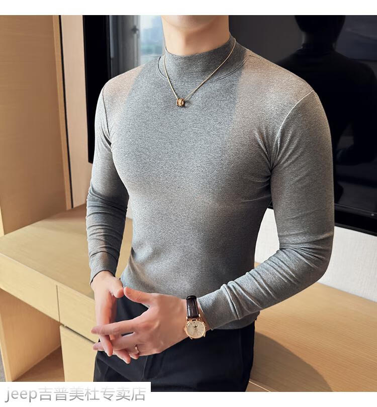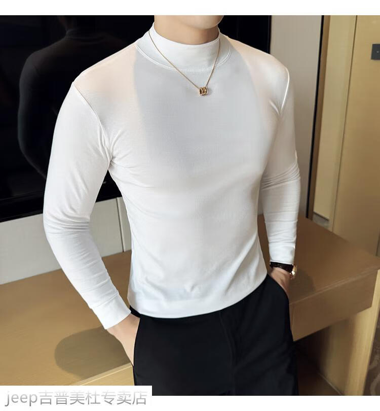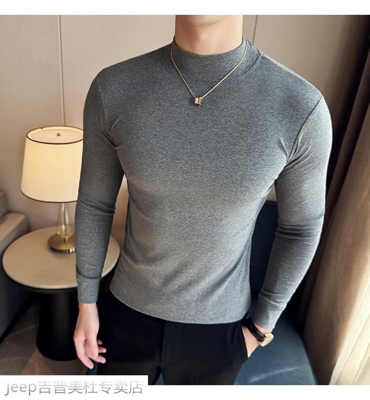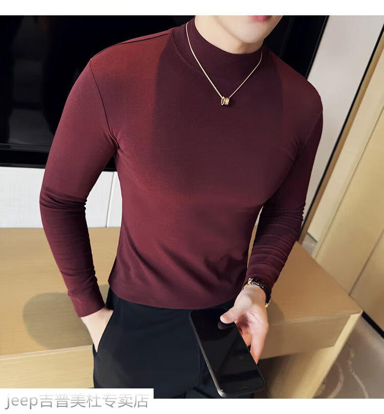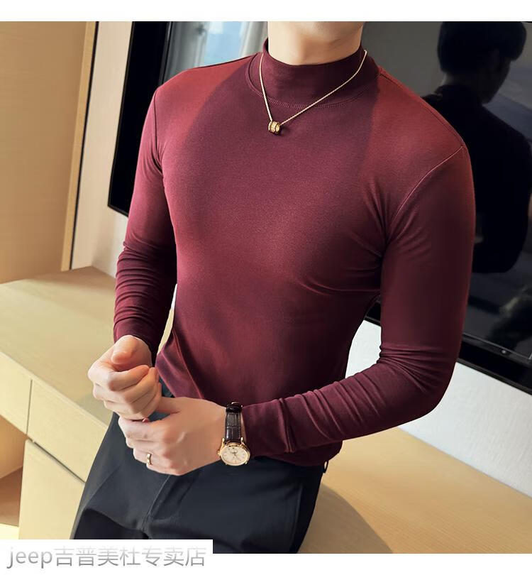 JEEP SPIRIT Jeep half-high collar long-sleeved bottoming shirt men's spring and autumn tight-fitting versatile solid color stretch Korean style slim-fitting mid-collar top black XL (130-145Jin Jin equals 0.5kg)