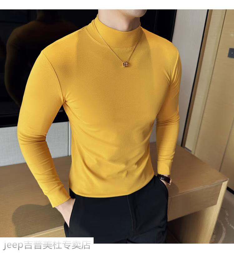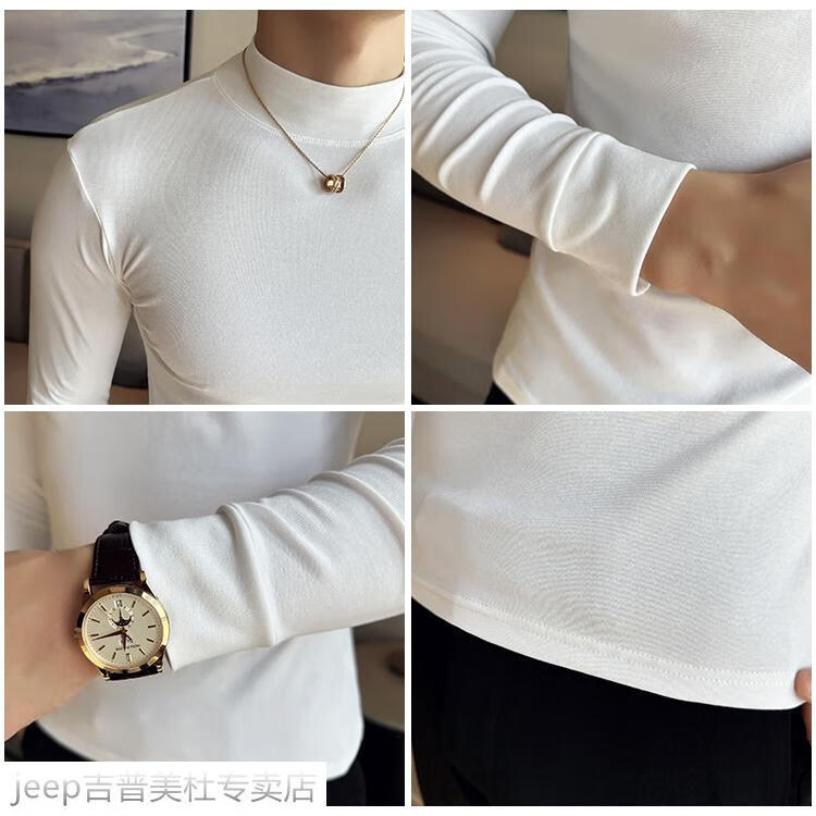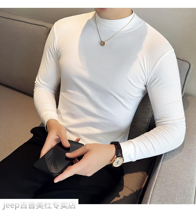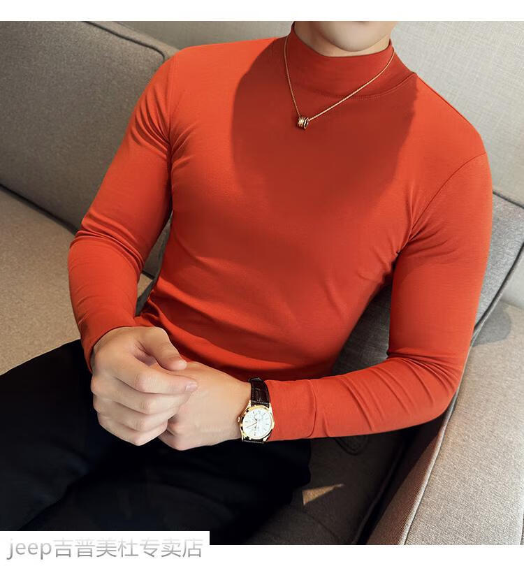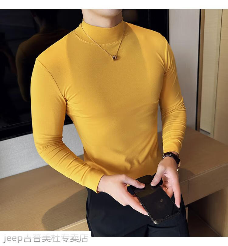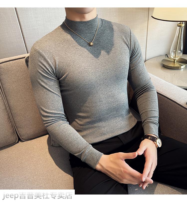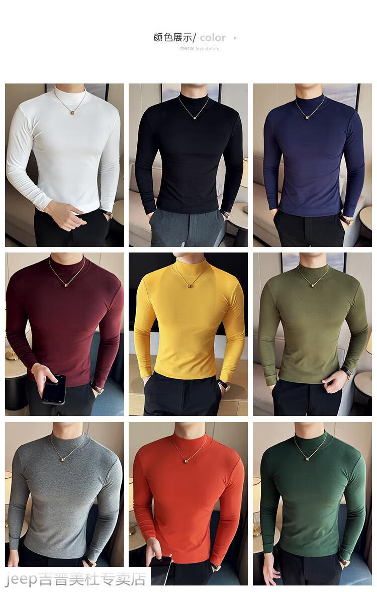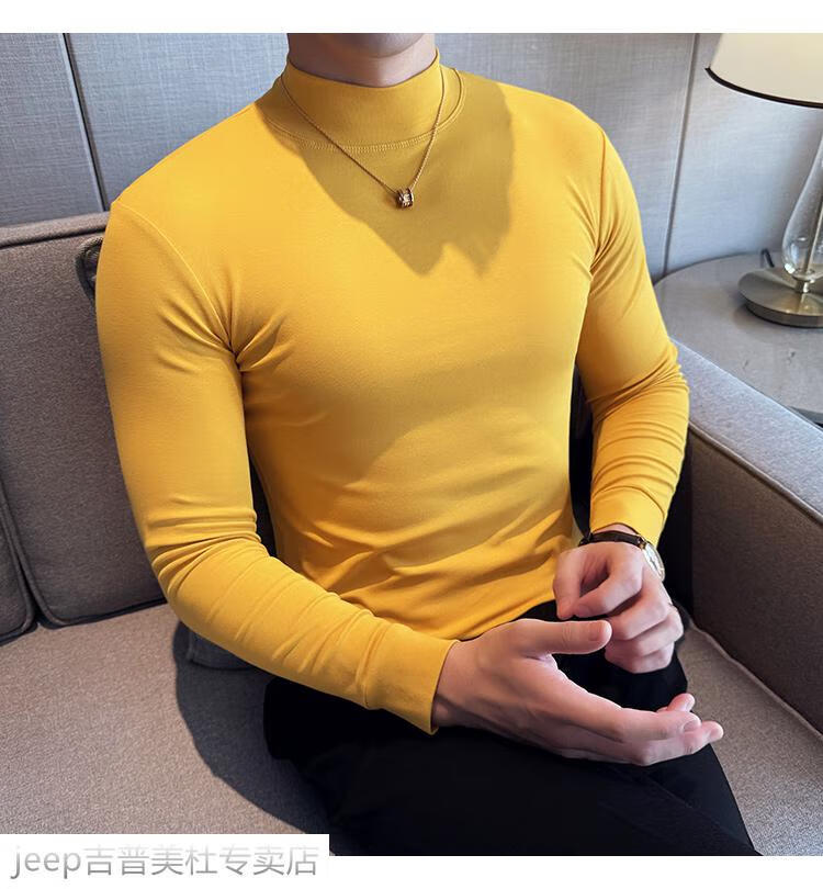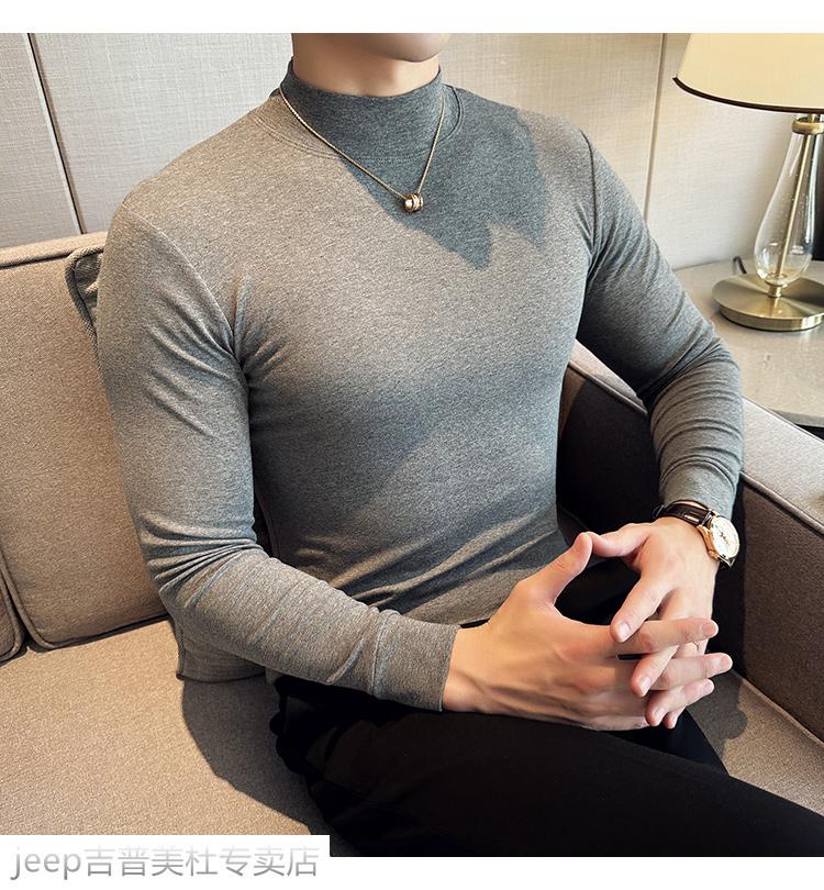 JEEP SPIRIT Jeep half-high collar long-sleeved bottoming shirt men's spring and autumn tight-fitting versatile solid color stretch Korean style slim-fitting mid-collar top black XL (130-145Jin Jin equals 0.5kg)