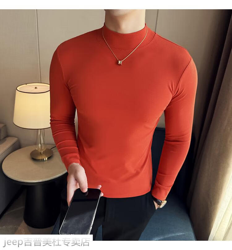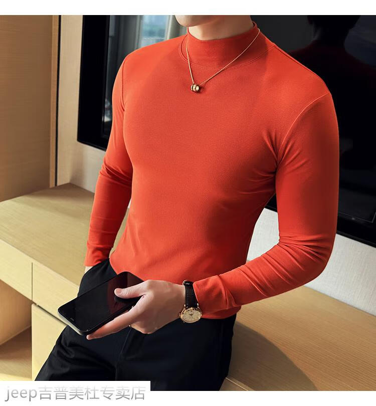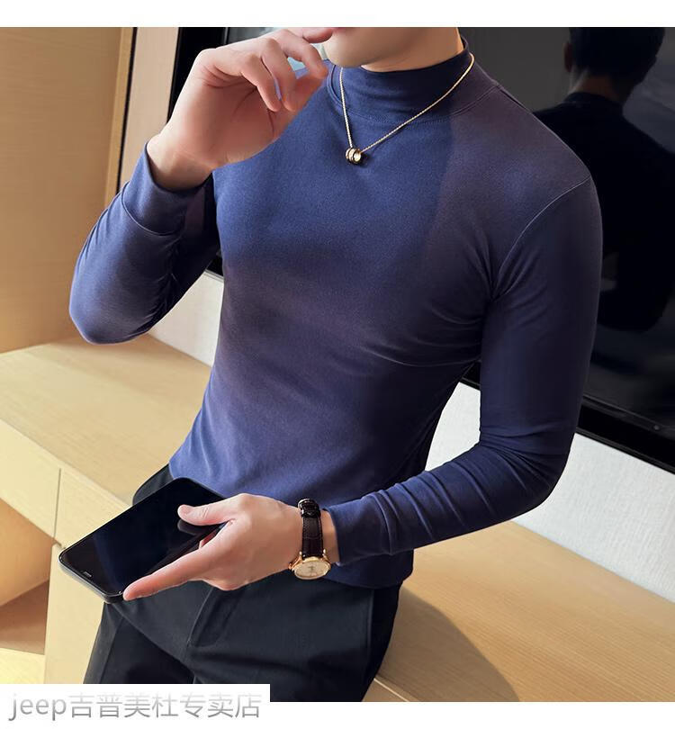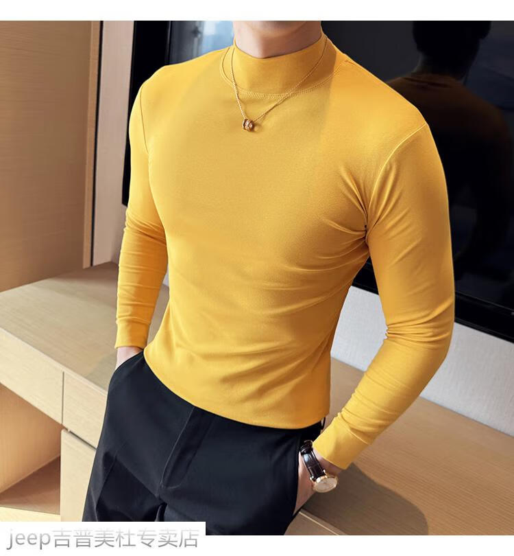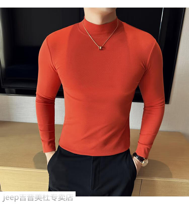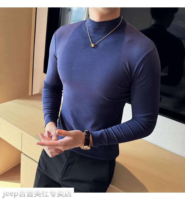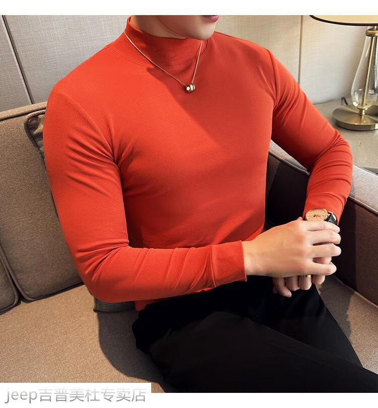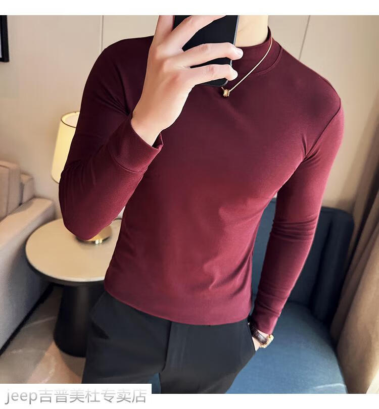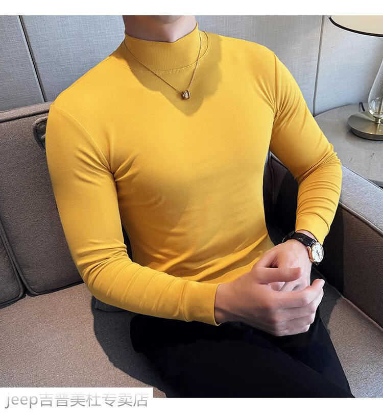 JEEP SPIRIT Jeep half-high collar long-sleeved bottoming shirt men's spring and autumn tight-fitting versatile solid color stretch Korean style slim-fitting mid-collar top black XL (130-145Jin Jin equals 0.5kg)