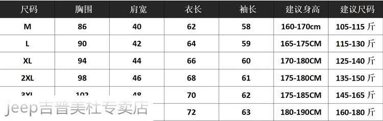China (cm) 160-165/84-86 165-170 / 88-90 167-172 / 92-96 168-173 / 98-102 170-176 / 106-110