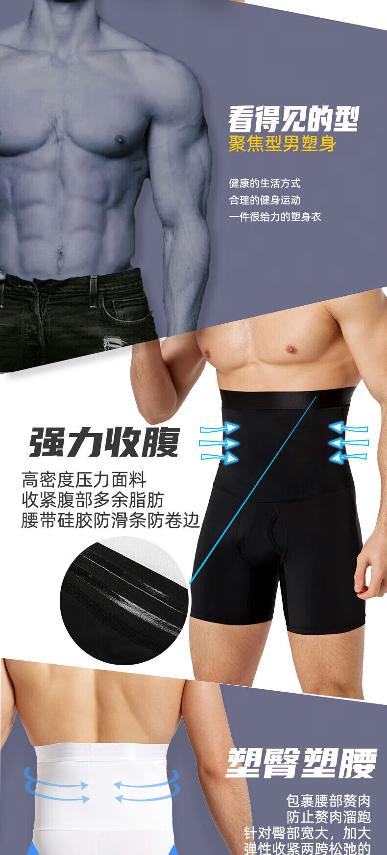 Ayub tummy control pants men's fitness and sports breathable meat-hiding artifact high-waist body shaping pants slimming waist pants tummy control pants black L 140-180Jin Jin is equal to 0.5 kg
