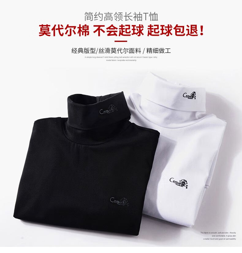 ROMON Modal autumn and winter new long-sleeved T-shirt men's turtleneck bottoming shirt pure cotton inner with velvet thickened underwear top dark gray 4XL (180-200Jin Jin equals 0.5kg slim fit)