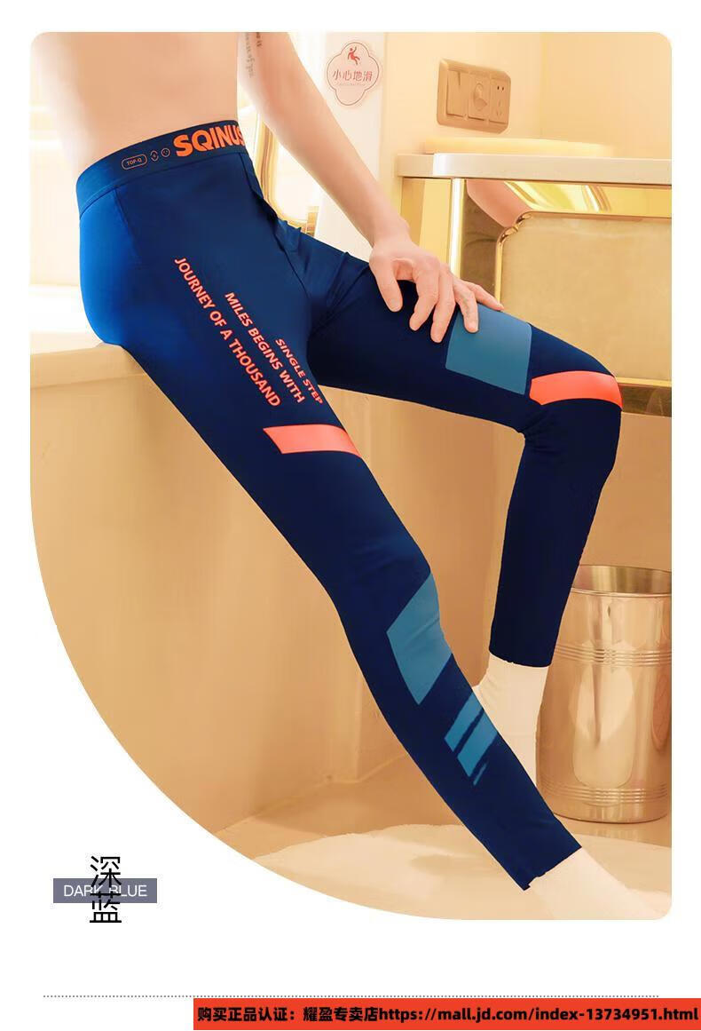 Modal's new glossy men's Barbie pants, men's shark pants, long johns, leggings, high-elastic slim sports warm line pants, 1 pair - dark blue M, suitable for 80 to 100 Jin Jin equals 0.5 kg
