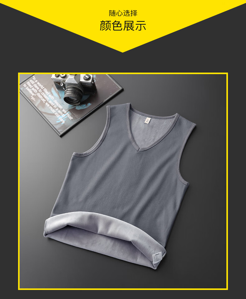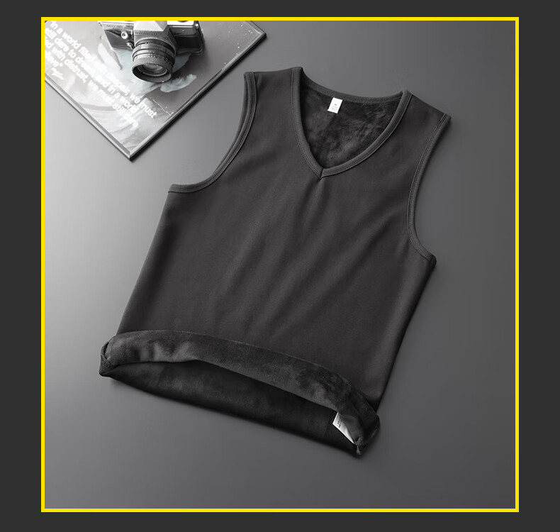 Kennedy Warm Vest Men's Velvet Men's Slim Autumn and Winter Sleeveless Sleeveless T-shirt Vest Wear Tight Bottoming Vest Dark Gray - Velvet Vest 170cm-180cm 3XL